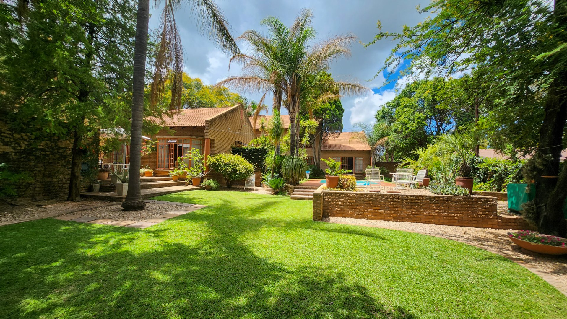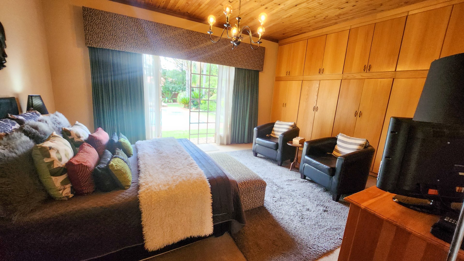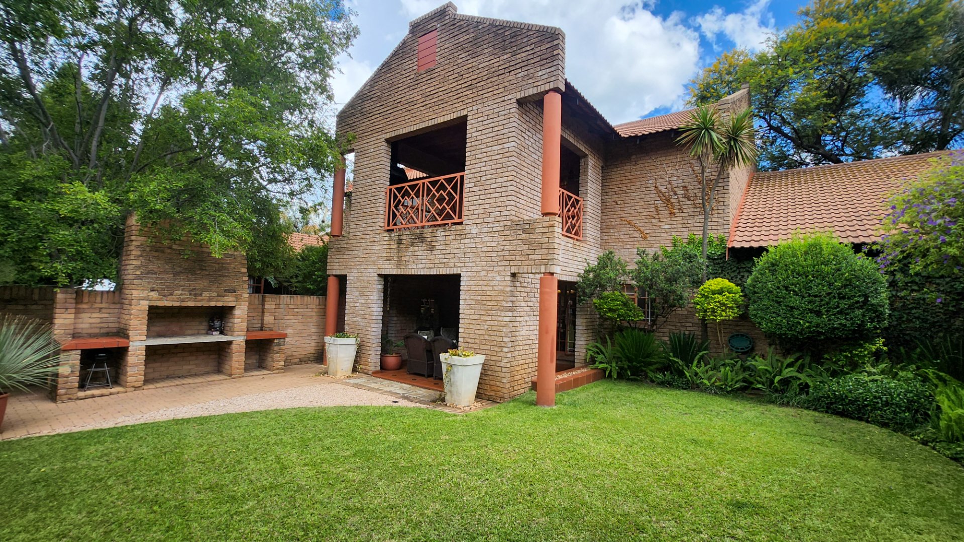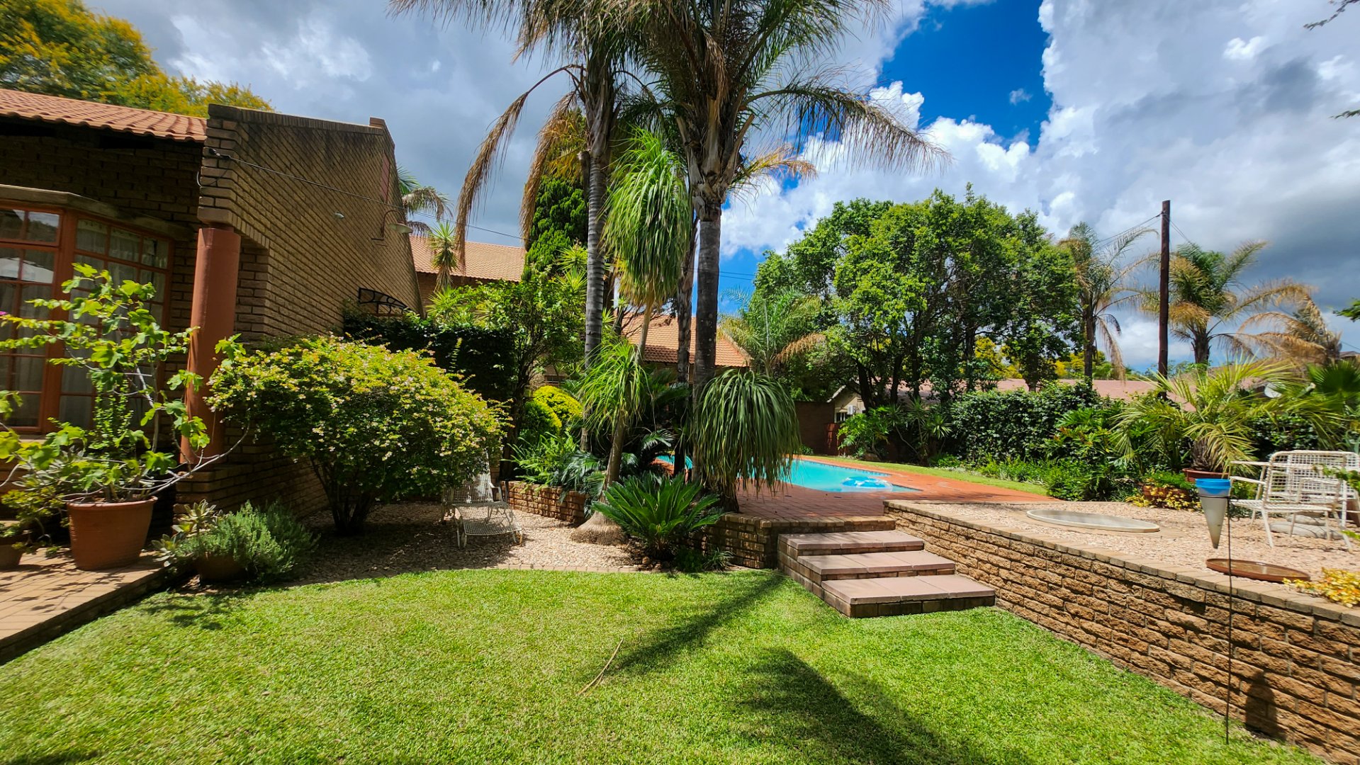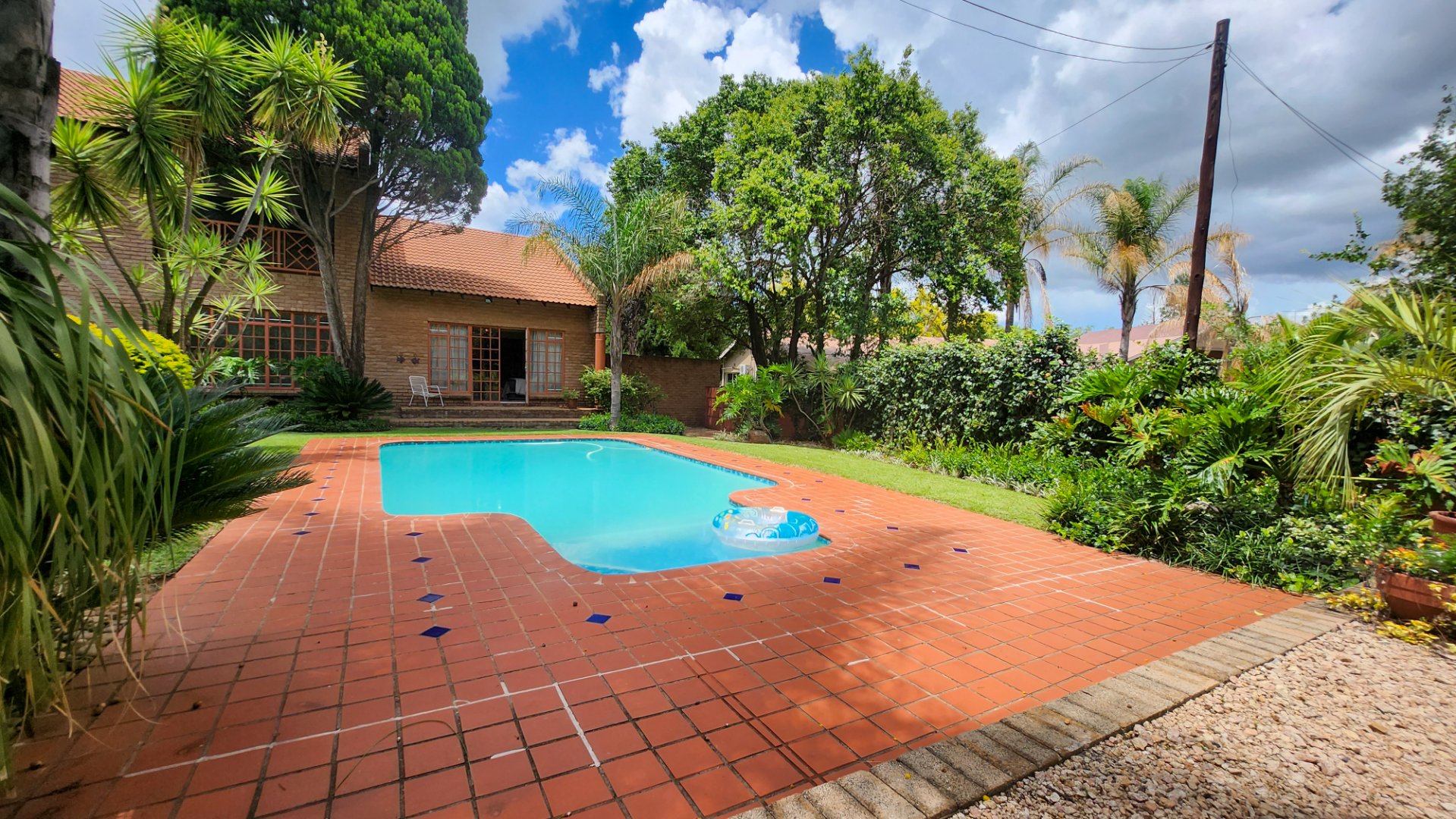 The home is designed for both everyday living and entertaining, with built-in braais and multiple balconies that overlook a lush, landscaped garden. The sparkling swimming pool is the highlight of the outdoor space, creating a private oasis for family fun or tranquil downtime. With four garages, there is ample parking and storage, catering to both convenience and security.