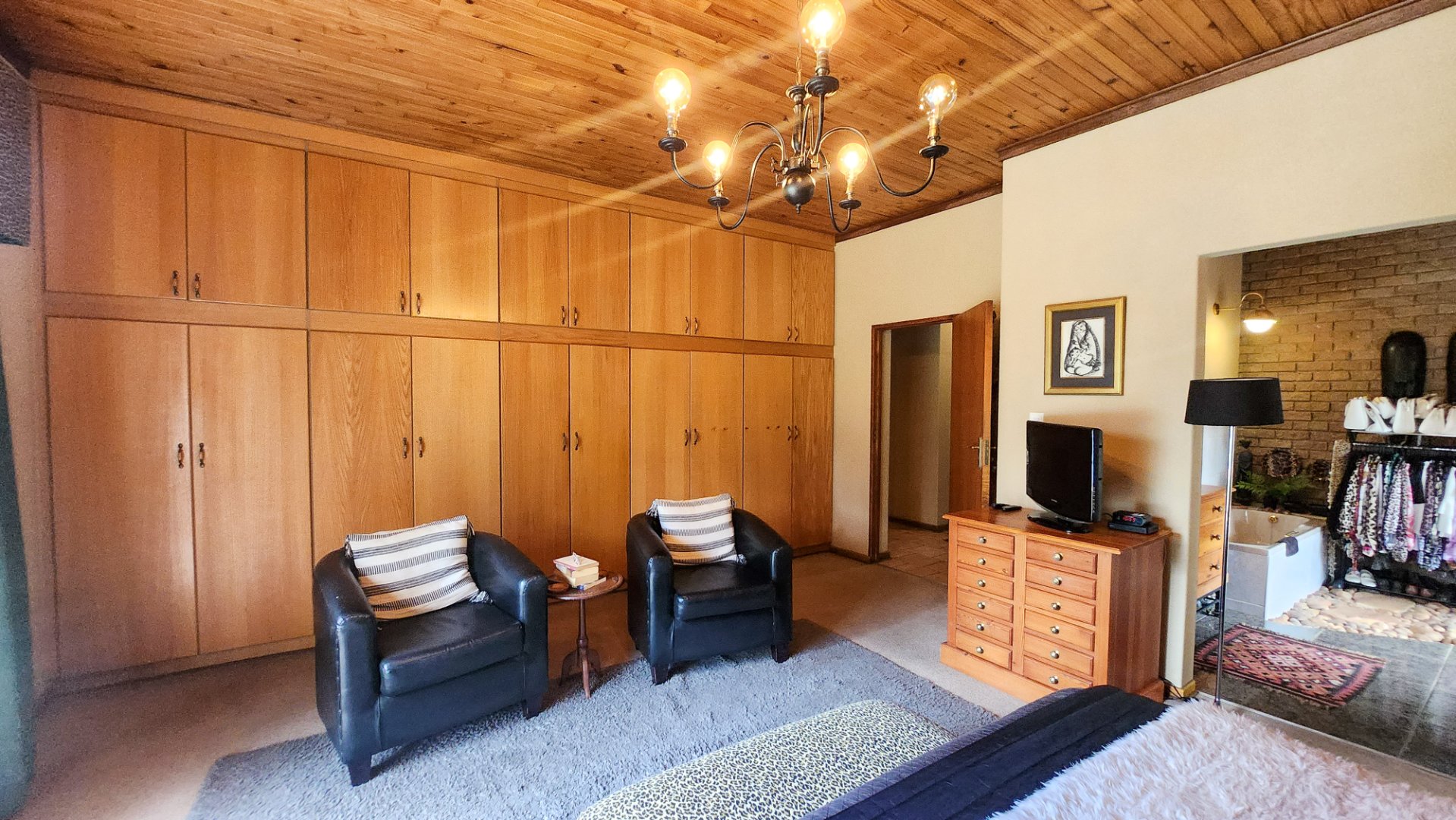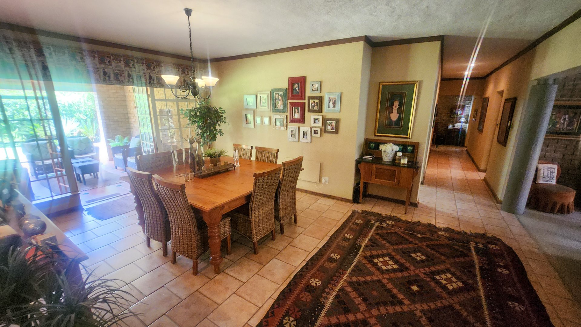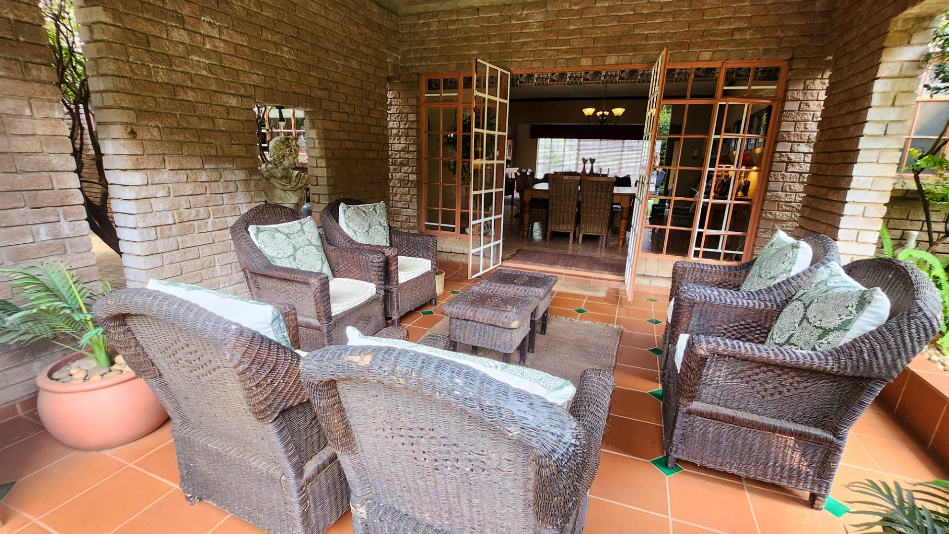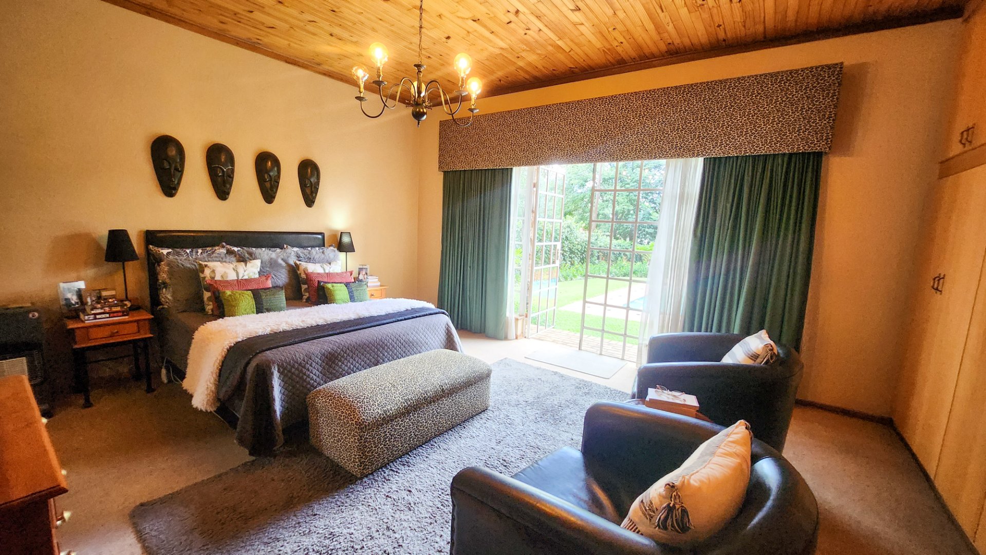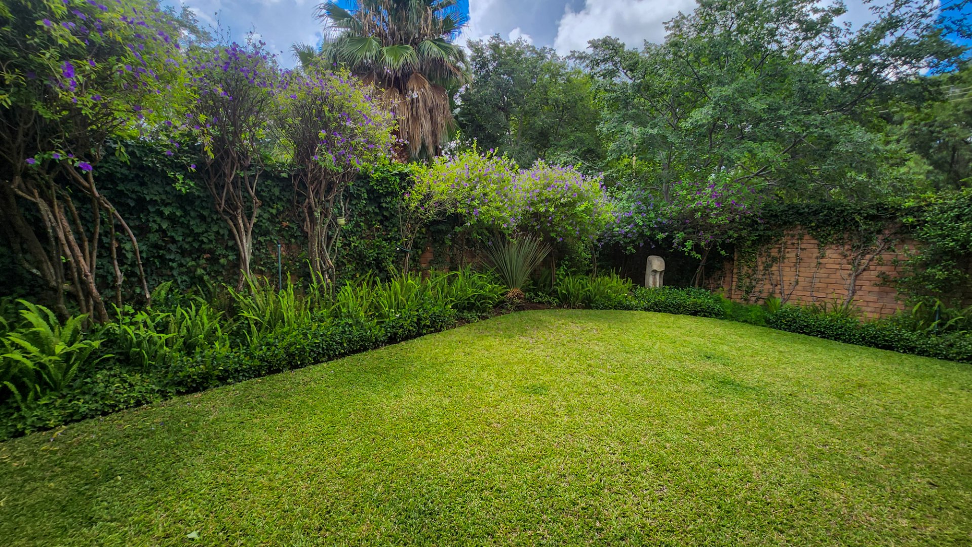 The home is designed for both everyday living and entertaining, with built-in braais and multiple balconies that overlook a lush, landscaped garden. The sparkling swimming pool is the highlight of the outdoor space, creating a private oasis for family fun or tranquil downtime. With four garages, there is ample parking and storage, catering to both convenience and security.