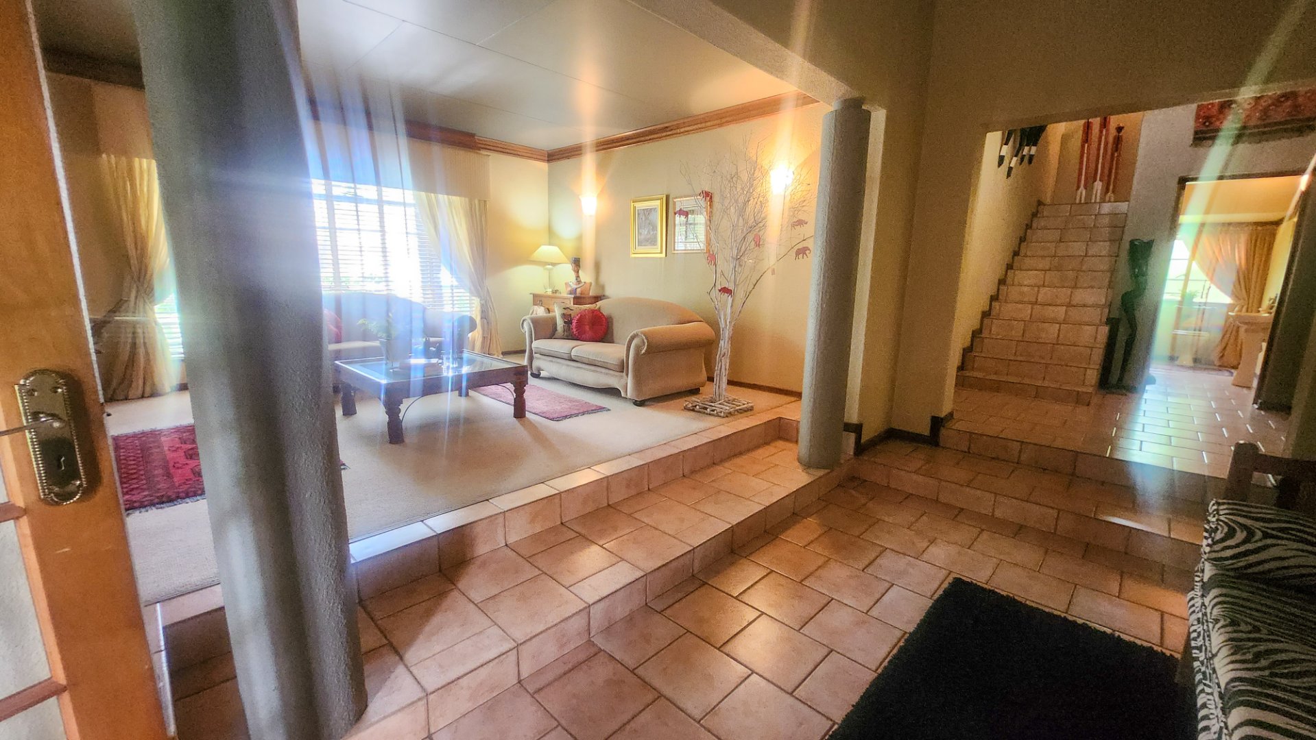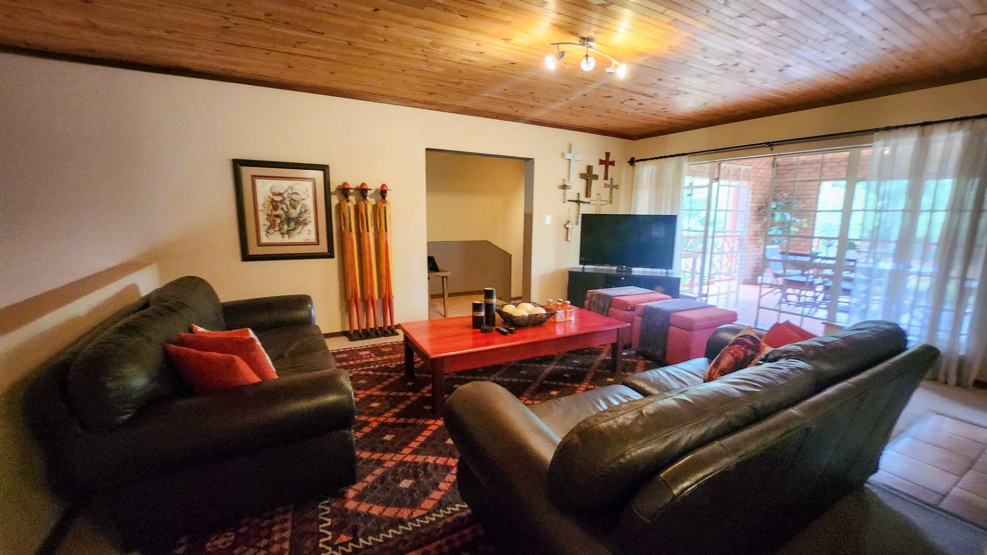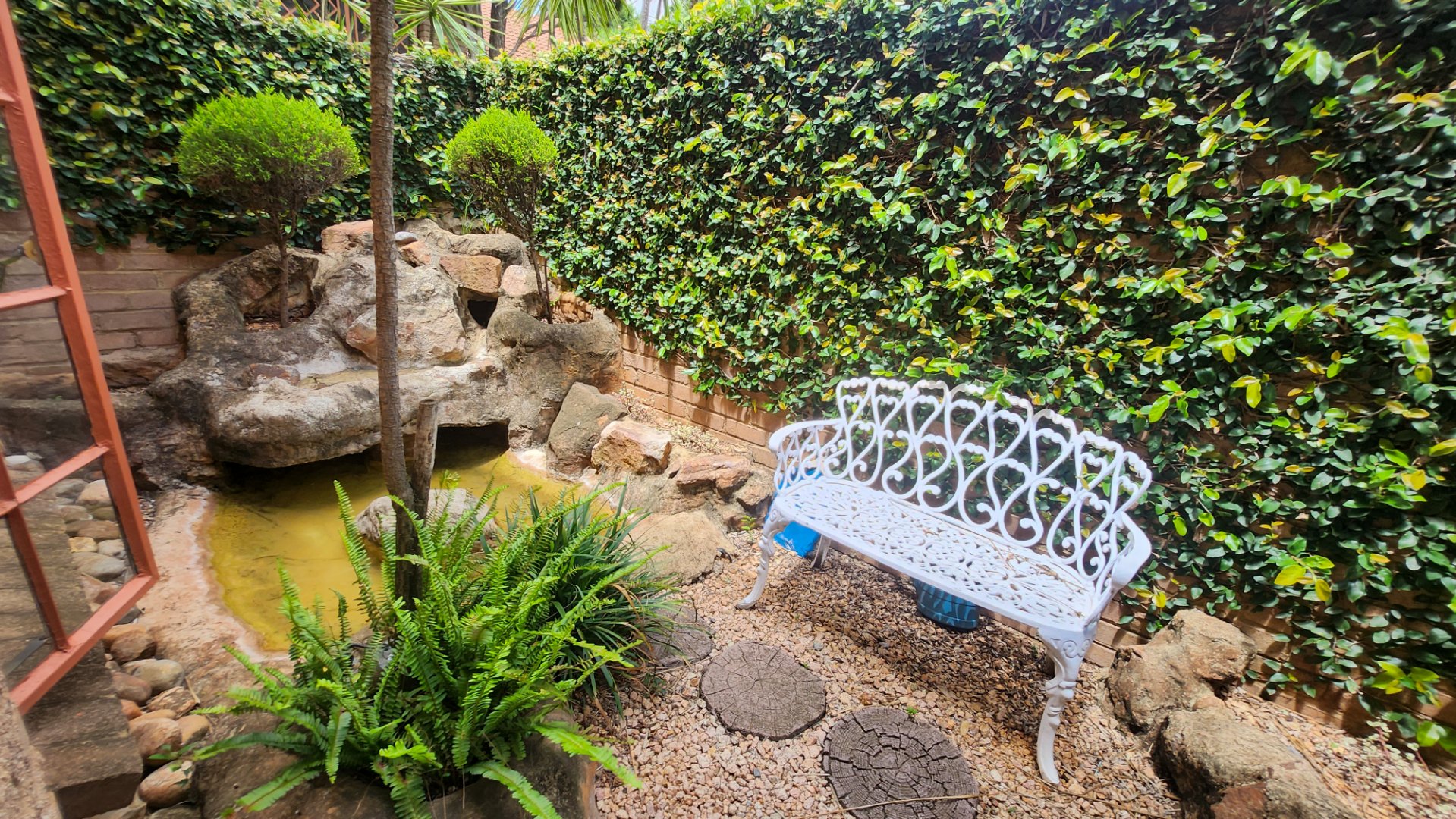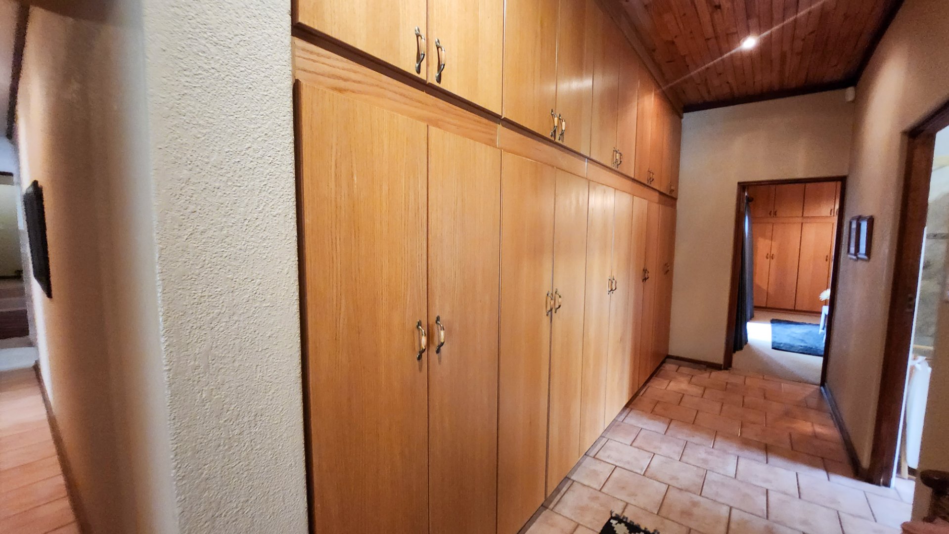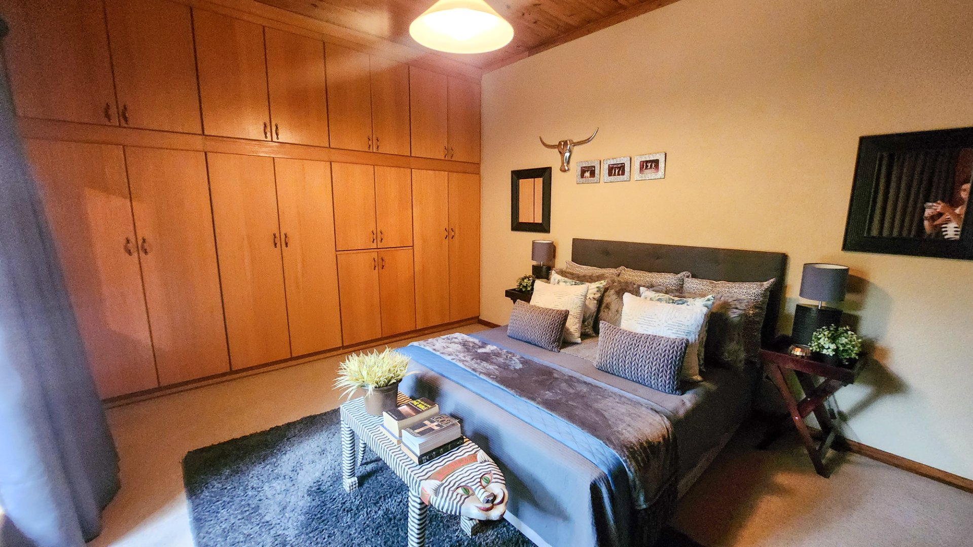 The home is designed for both everyday living and entertaining, with built-in braais and multiple balconies that overlook a lush, landscaped garden. The sparkling swimming pool is the highlight of the outdoor space, creating a private oasis for family fun or tranquil downtime. With four garages, there is ample parking and storage, catering to both convenience and security.