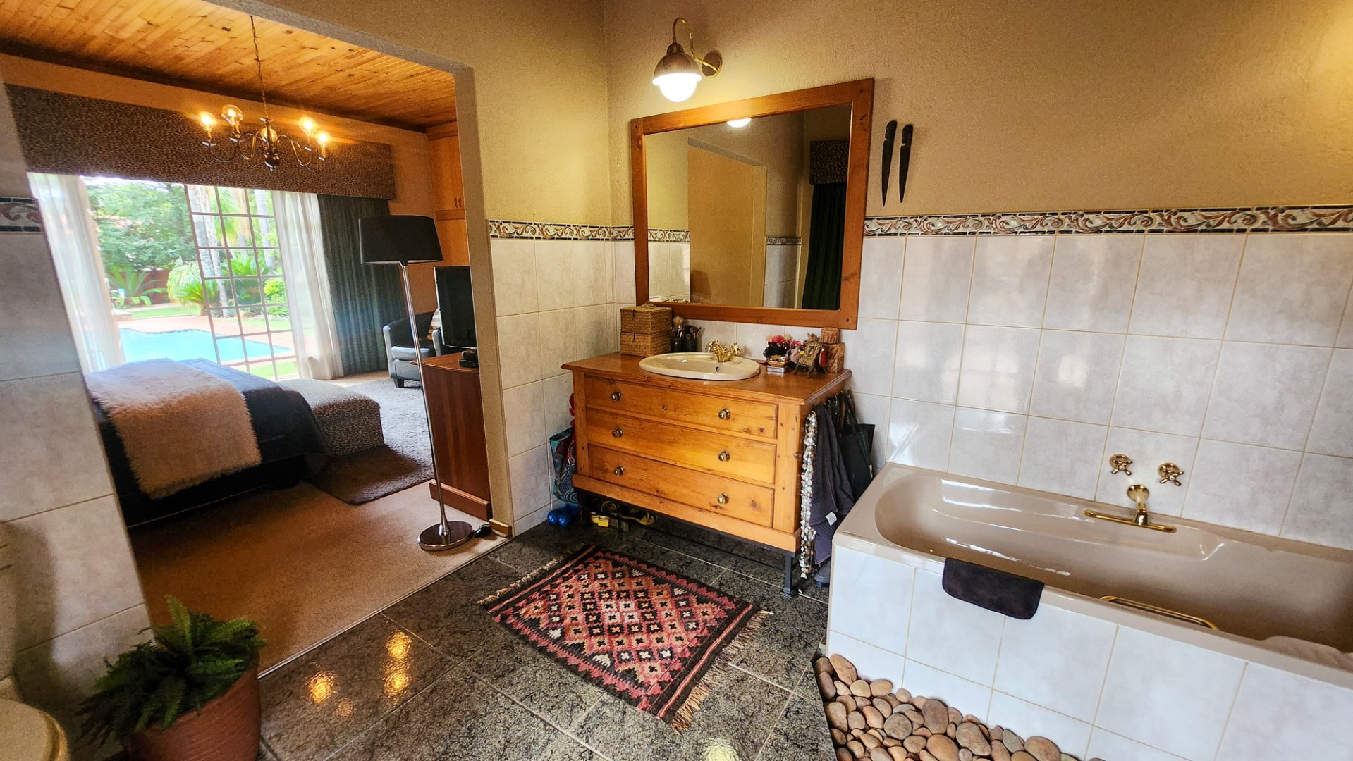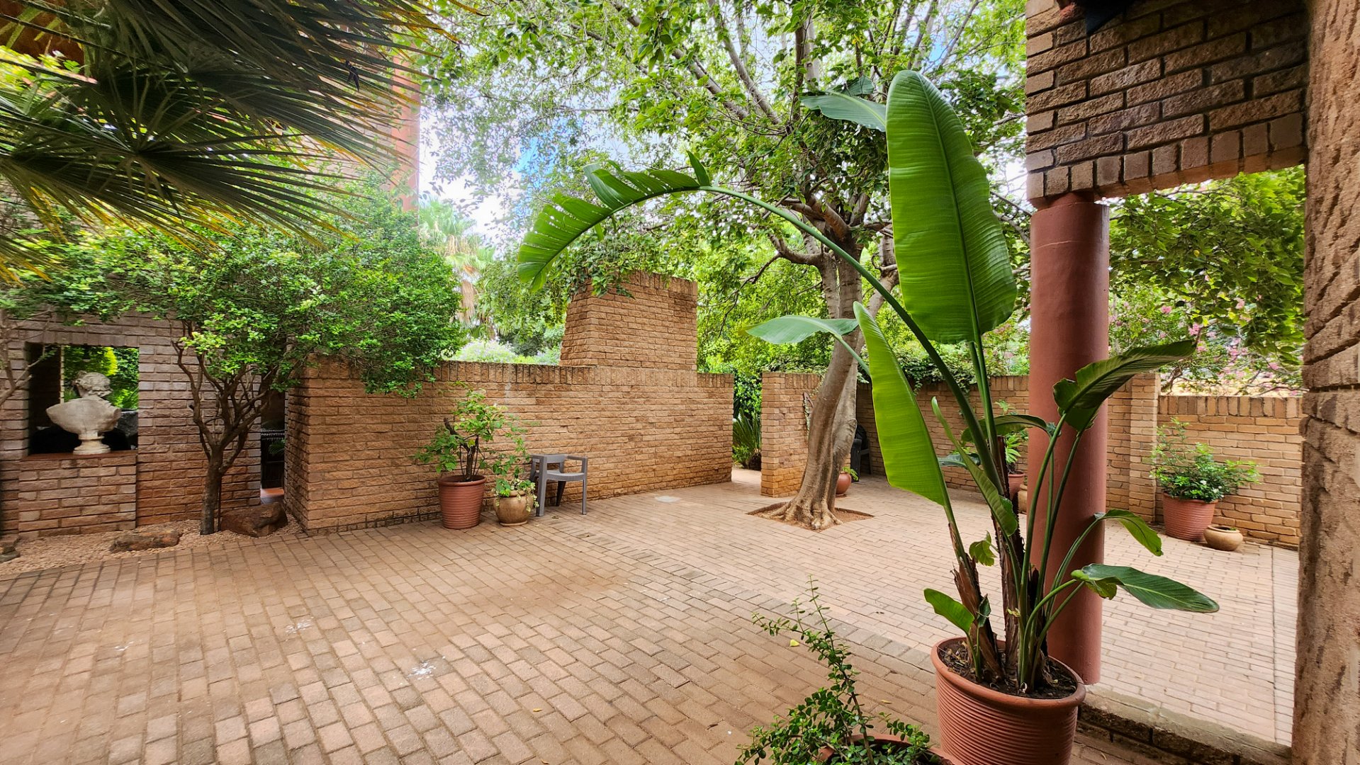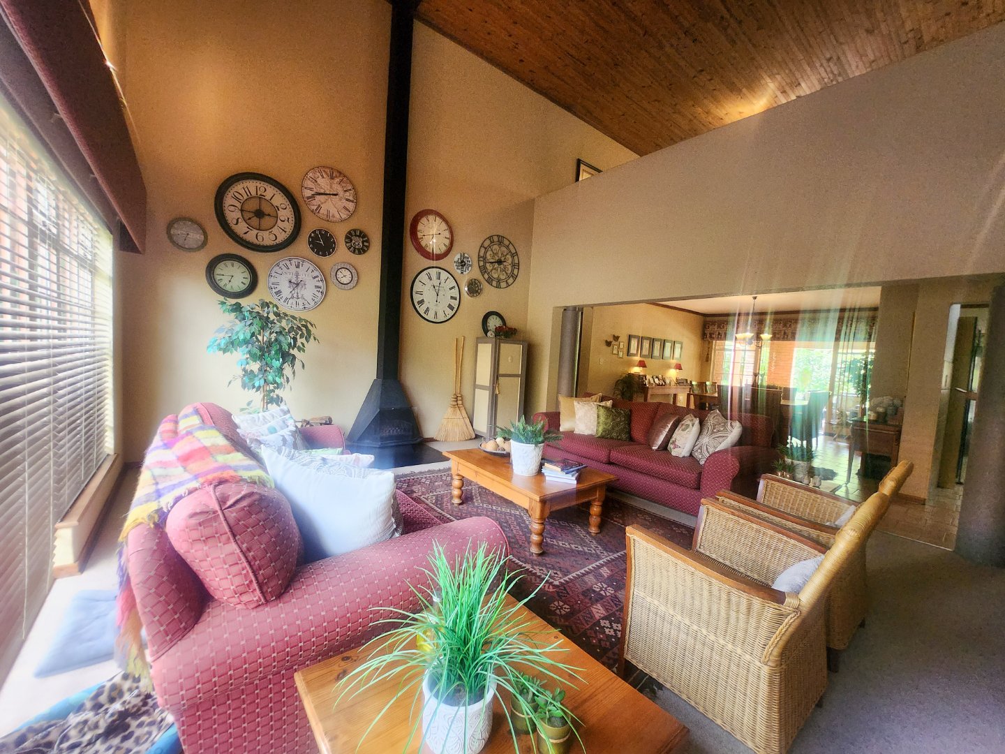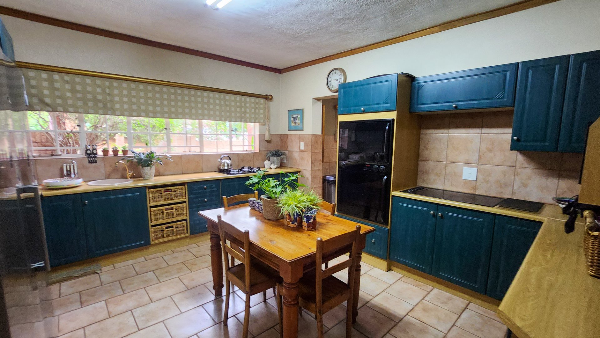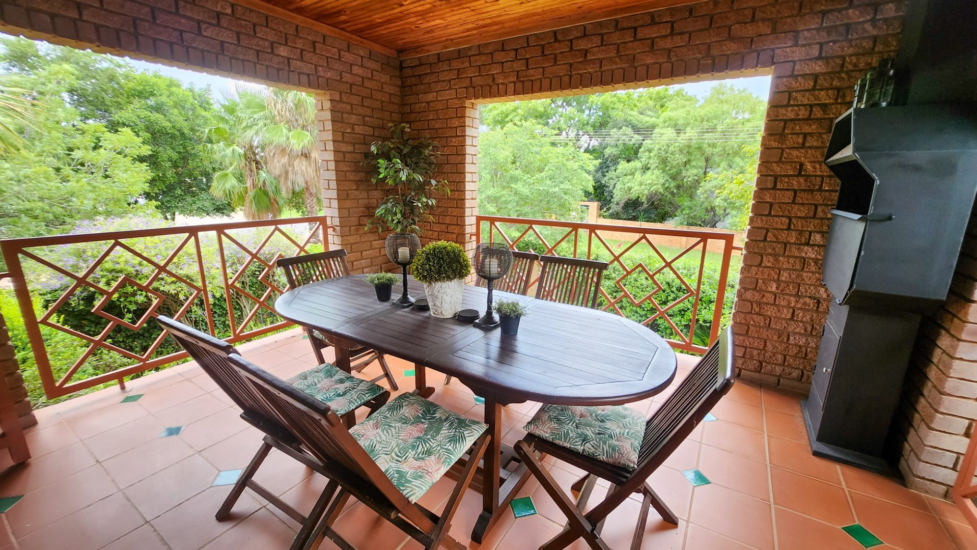 The home is designed for both everyday living and entertaining, with built-in braais and multiple balconies that overlook a lush, landscaped garden. The sparkling swimming pool is the highlight of the outdoor space, creating a private oasis for family fun or tranquil downtime. With four garages, there is ample parking and storage, catering to both convenience and security.