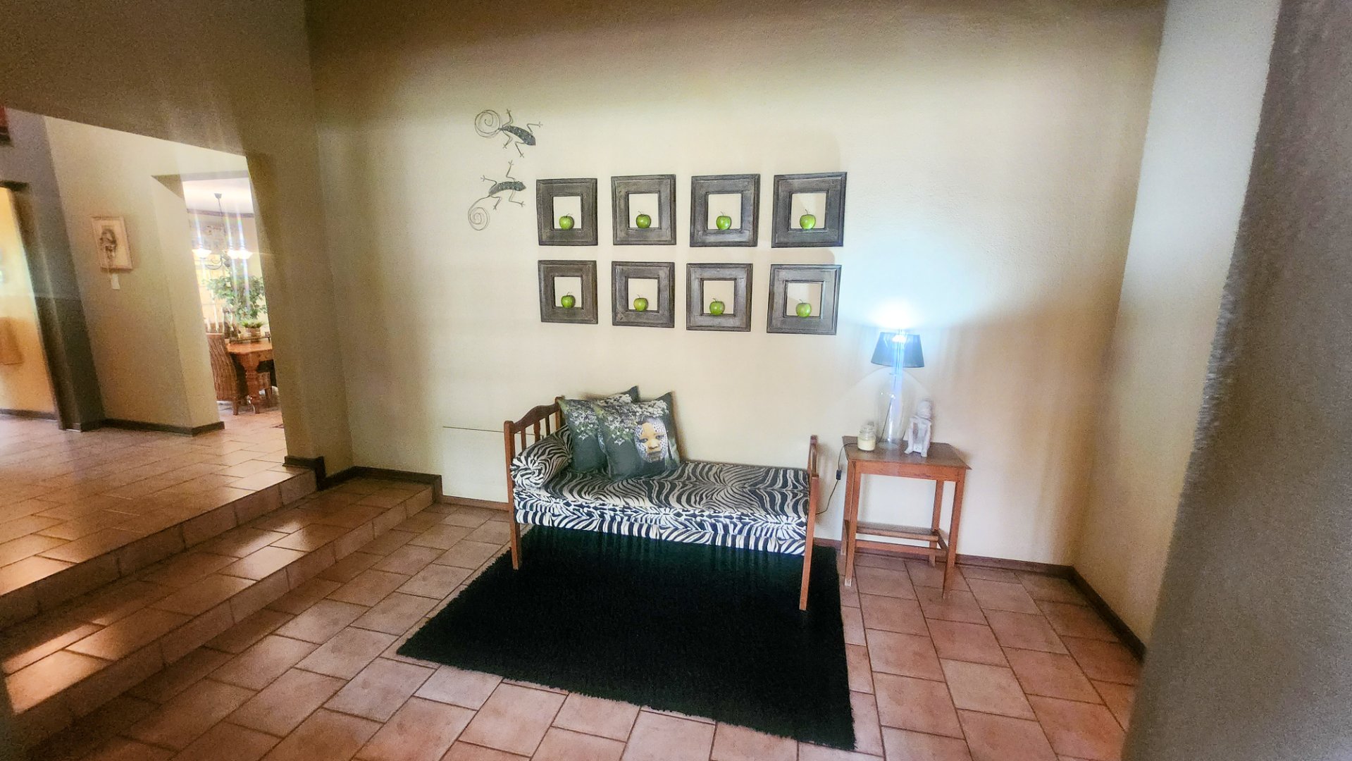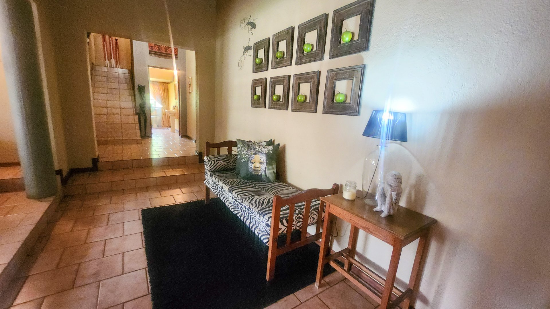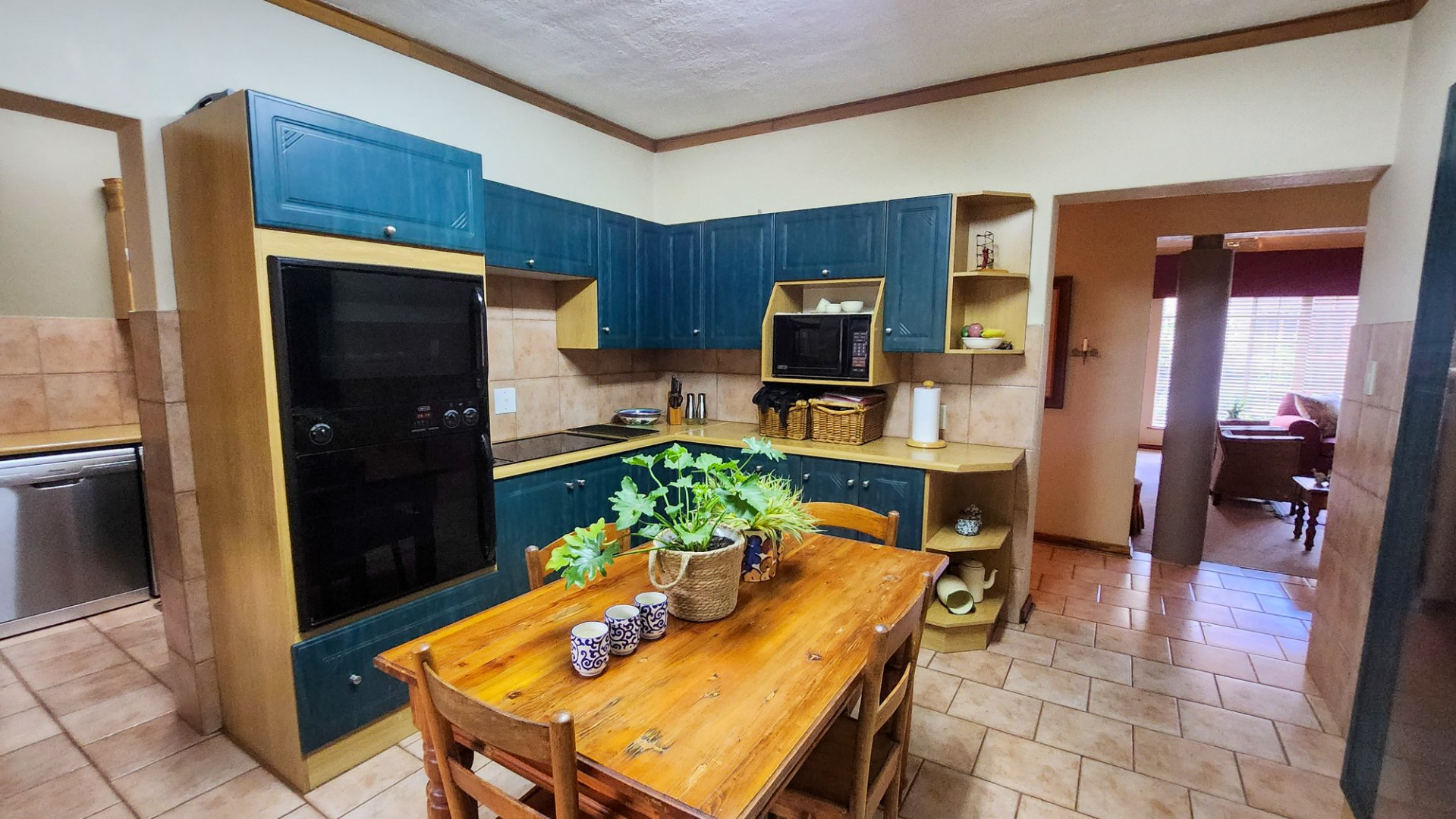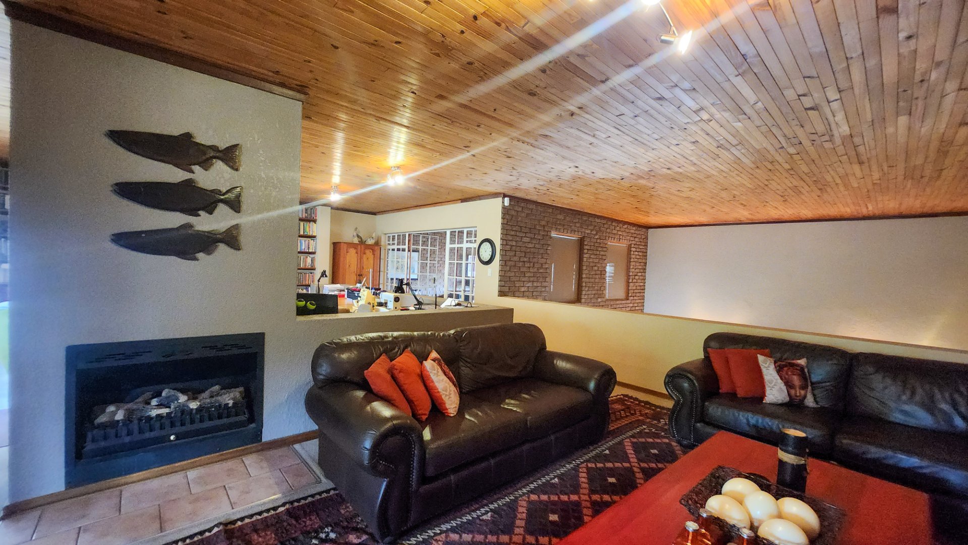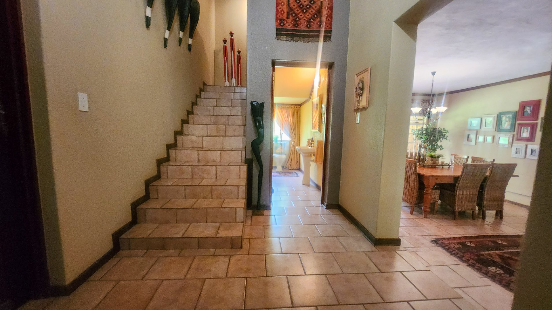 The home is designed for both everyday living and entertaining, with built-in braais and multiple balconies that overlook a lush, landscaped garden. The sparkling swimming pool is the highlight of the outdoor space, creating a private oasis for family fun or tranquil downtime. With four garages, there is ample parking and storage, catering to both convenience and security.