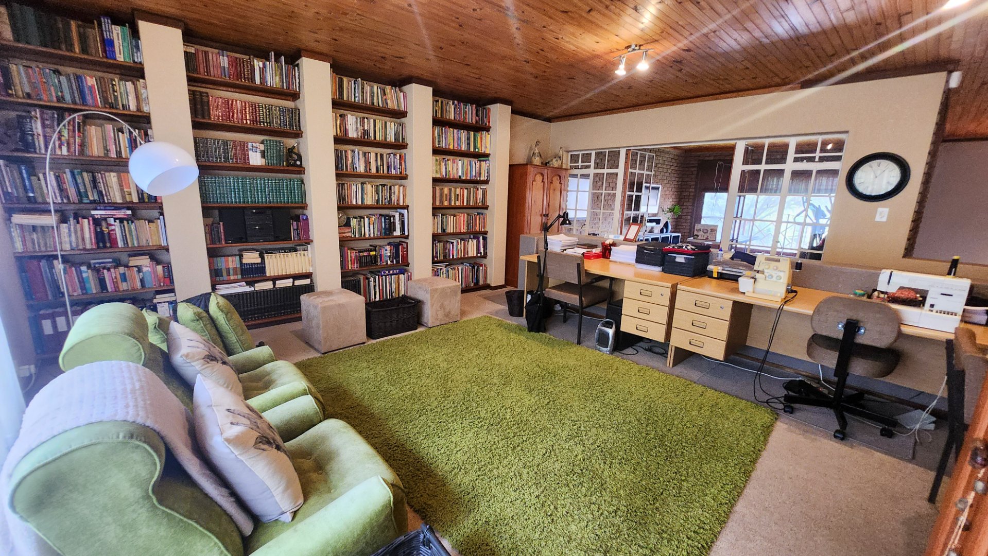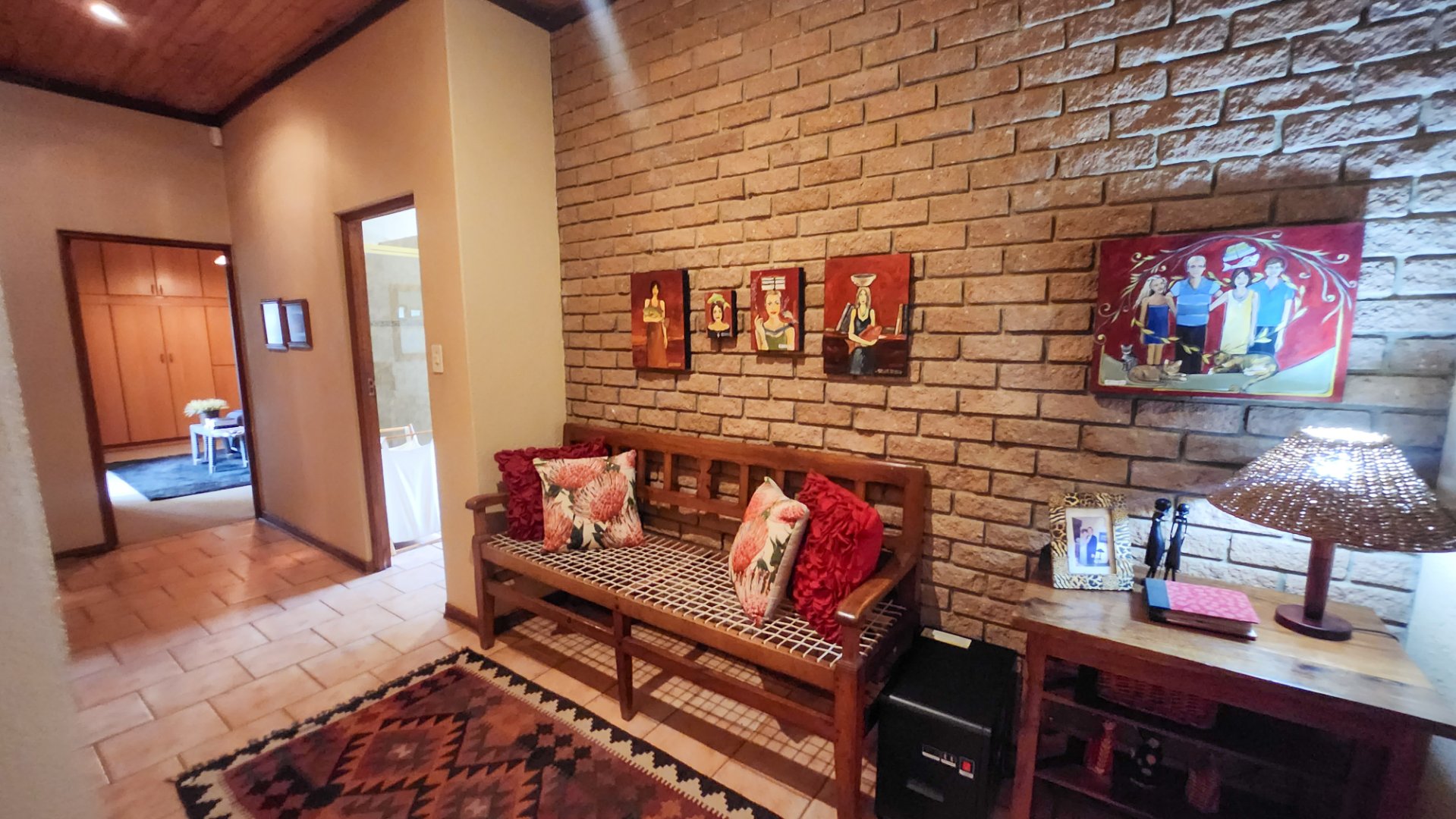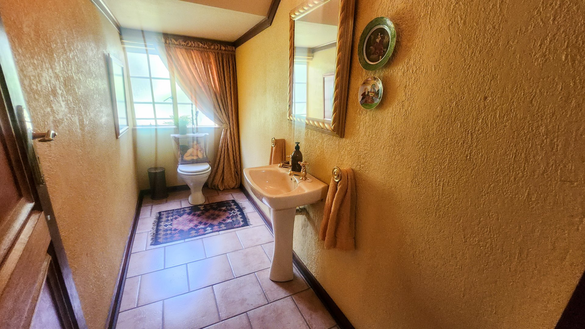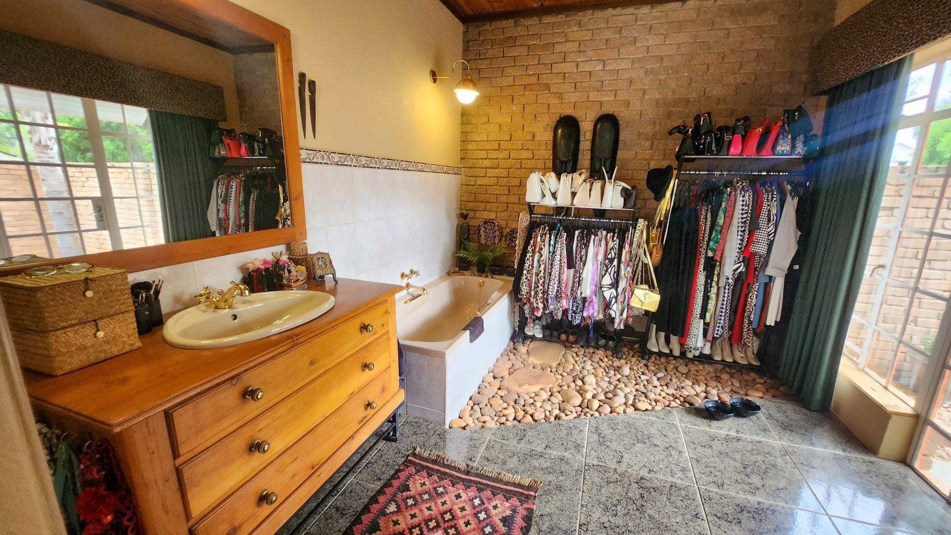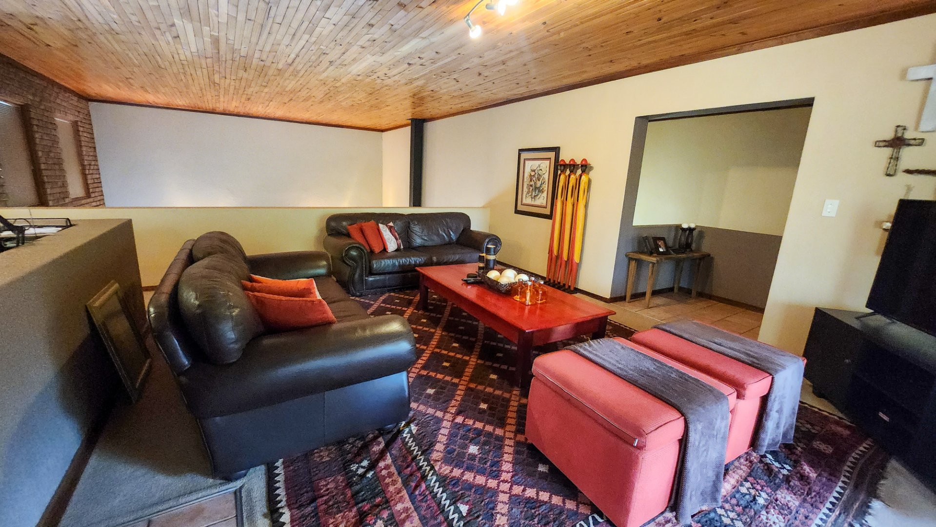 The home is designed for both everyday living and entertaining, with built-in braais and multiple balconies that overlook a lush, landscaped garden. The sparkling swimming pool is the highlight of the outdoor space, creating a private oasis for family fun or tranquil downtime. With four garages, there is ample parking and storage, catering to both convenience and security.