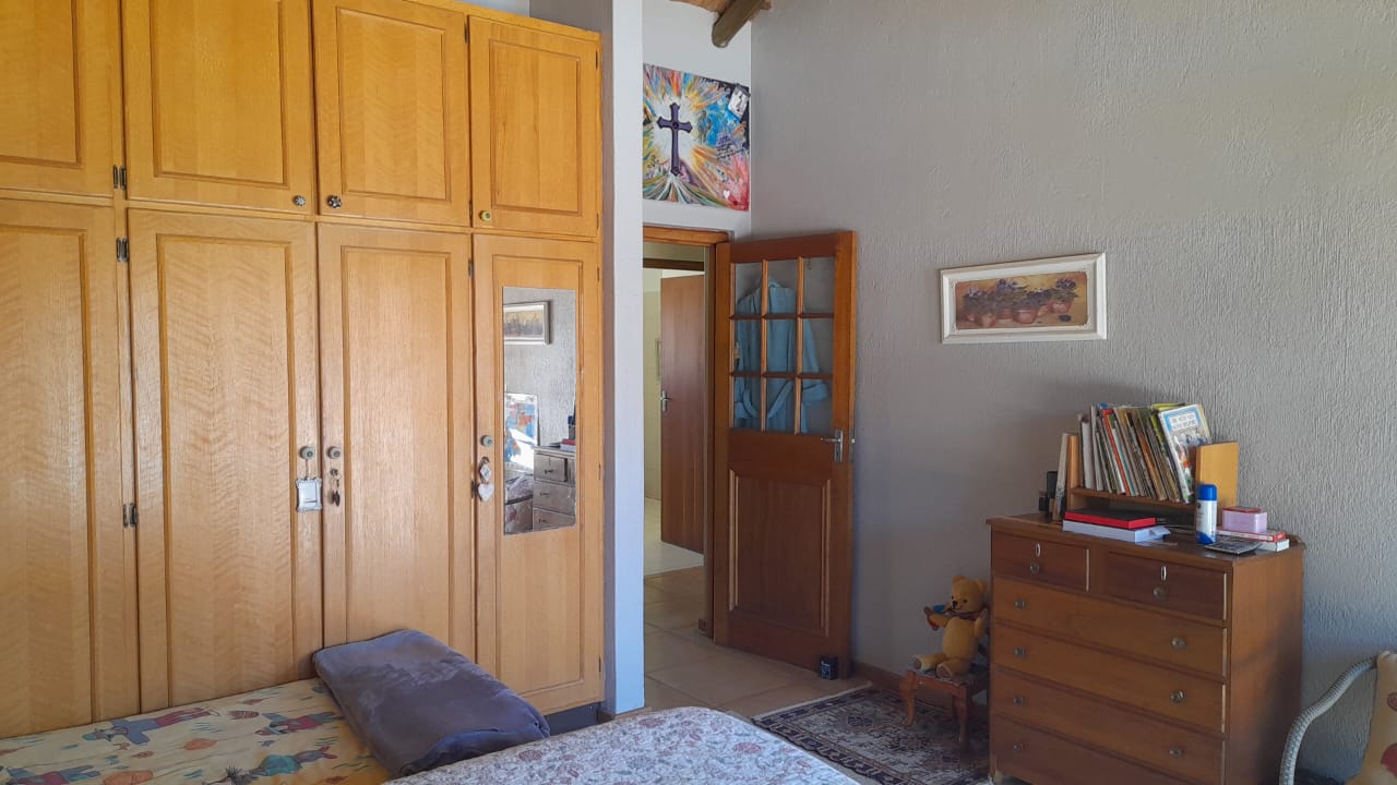 Upon entering the home, you are welcomed by a spacious open-plan living and dining room, complete with a built-in bar and underfloor heating for added comfort. Wooden doors from the living area open up to a stunning entertainment area, featuring a built-in braai and offering a clear view of the sparkling swimming pool, making it the ideal space for hosting family and friends year-round.