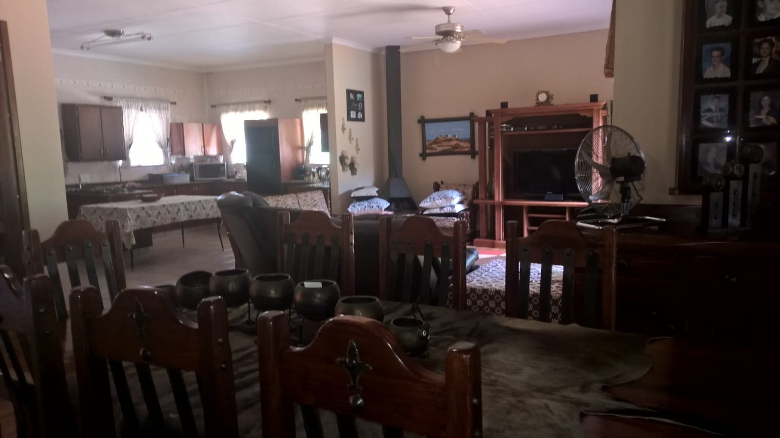A shaded carport accommodates four vehicles, and a domestic bathroom is conveniently located outside. Security is a top priority, with an alarm system and security beams surrounding the house.