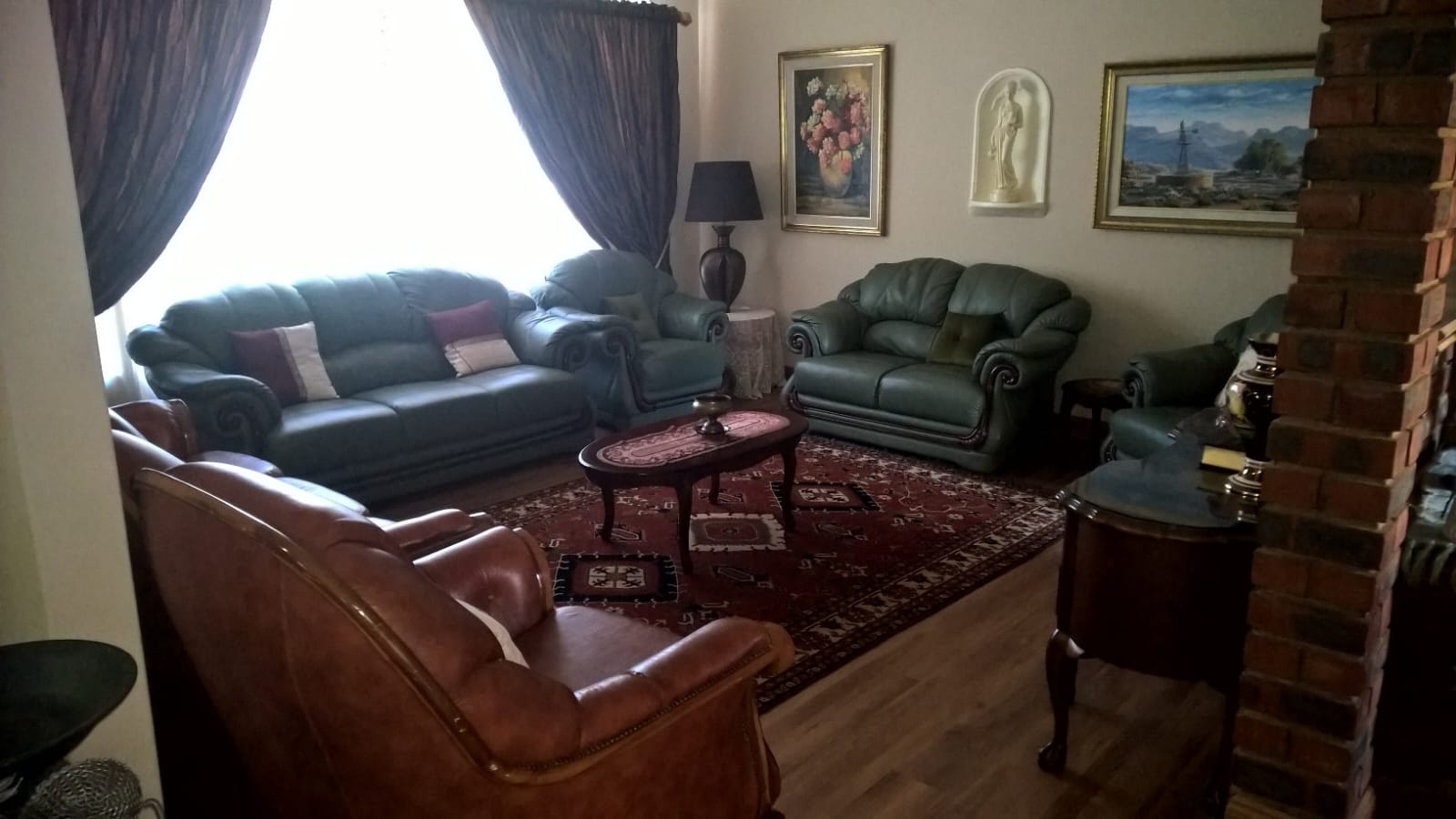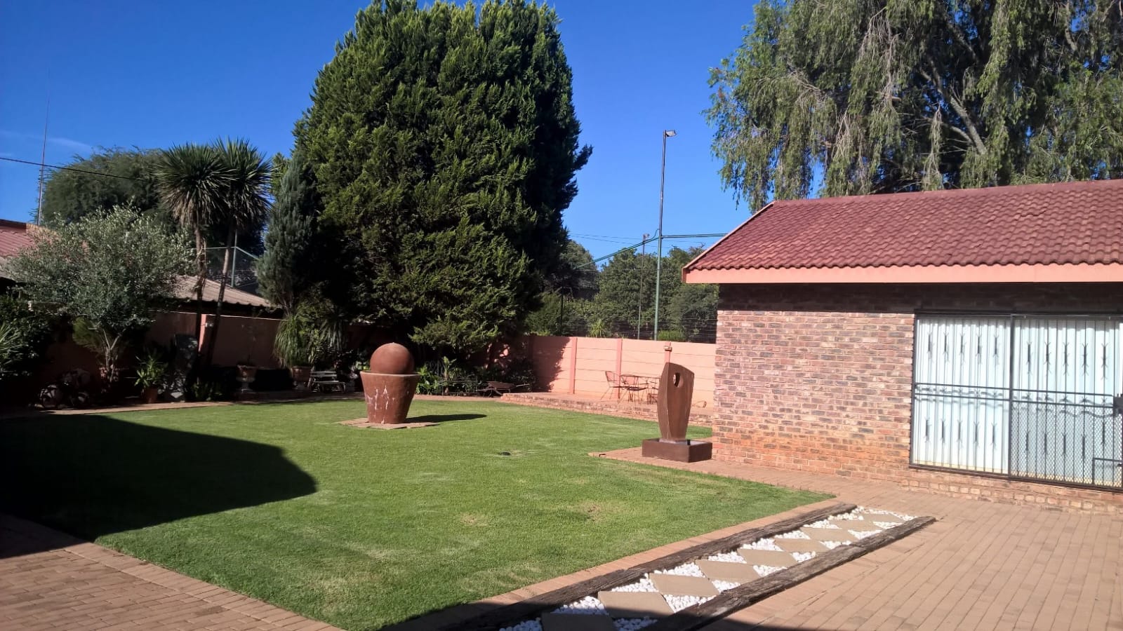 Two self-contained flats offer additional flexibility. The first flat includes one bedroom with an en-suite bathroom and an open-plan kitchen, dining, and living area, making it ideal for rental income or a home office. The second flat features two bedrooms, both with en-suite bathrooms, an open-plan kitchen, dining, and living area, and its own private lapa.