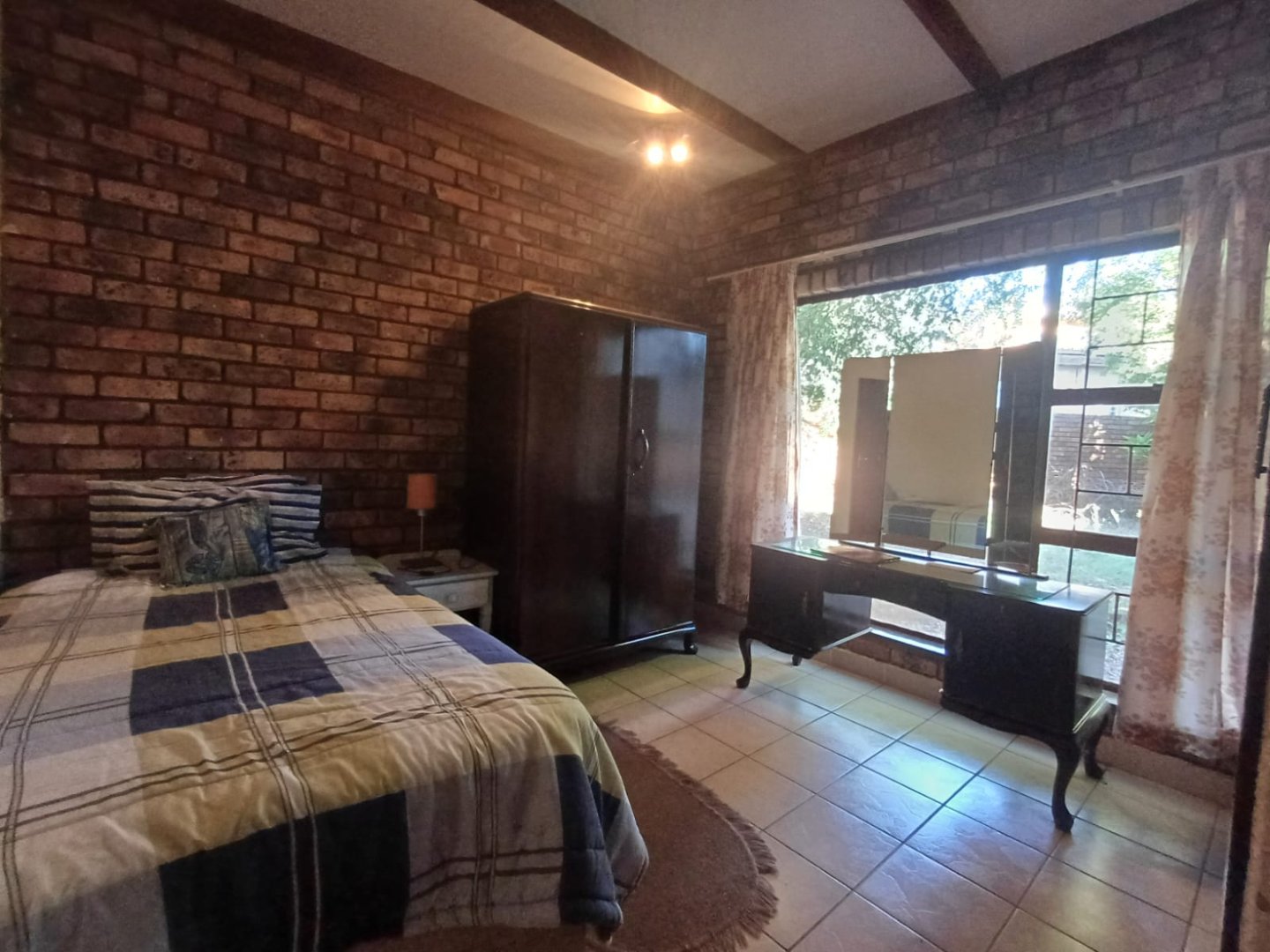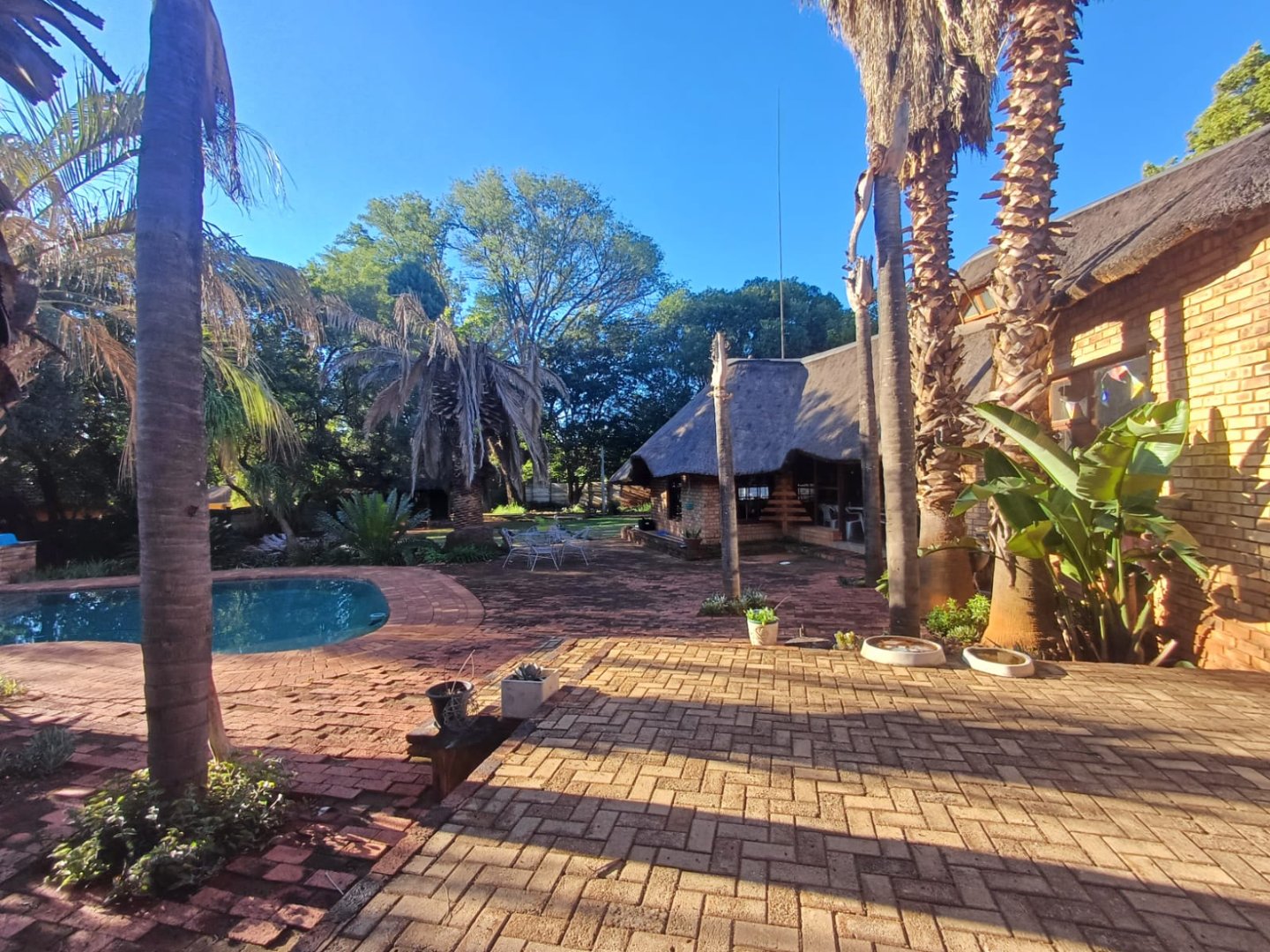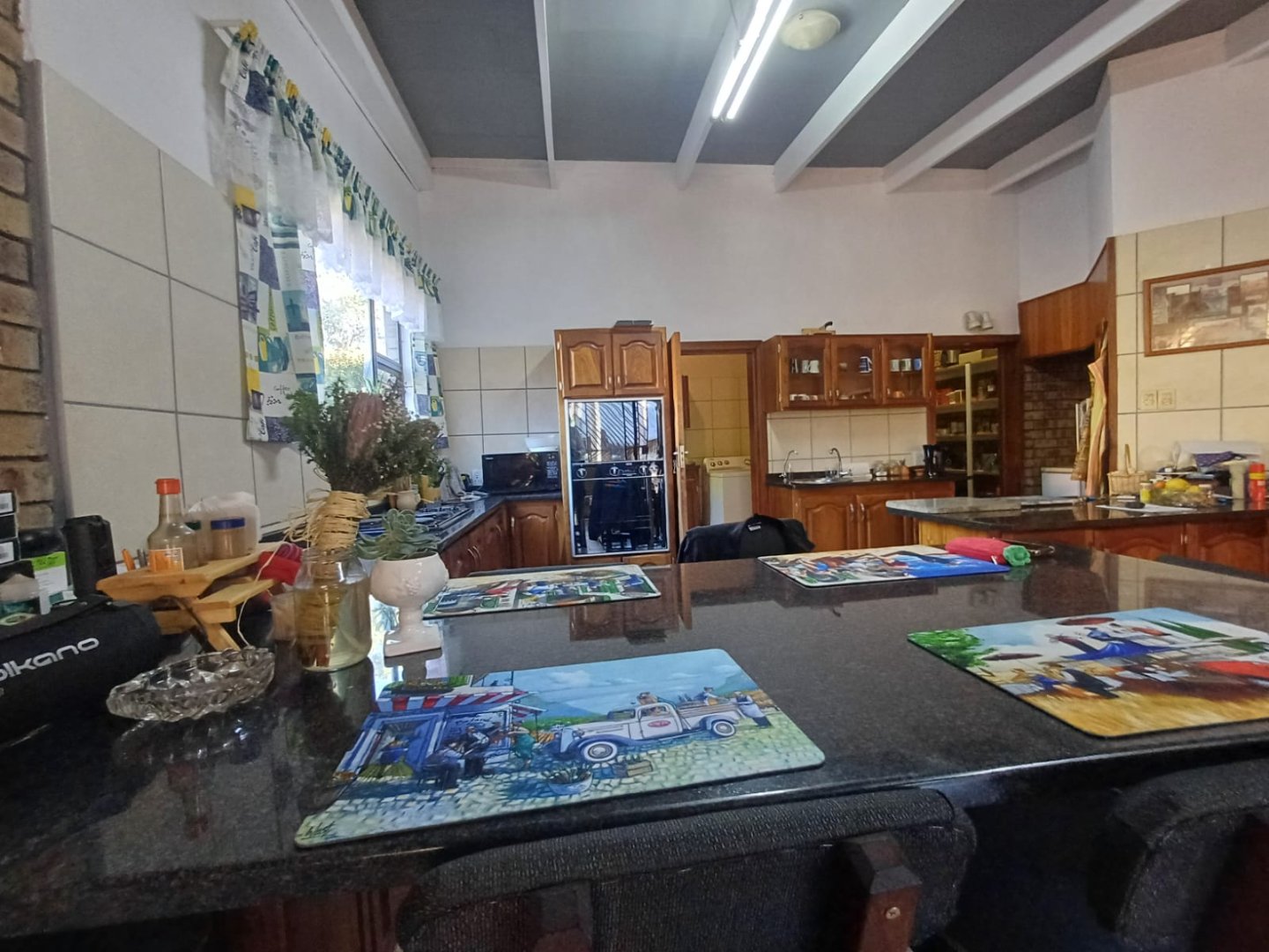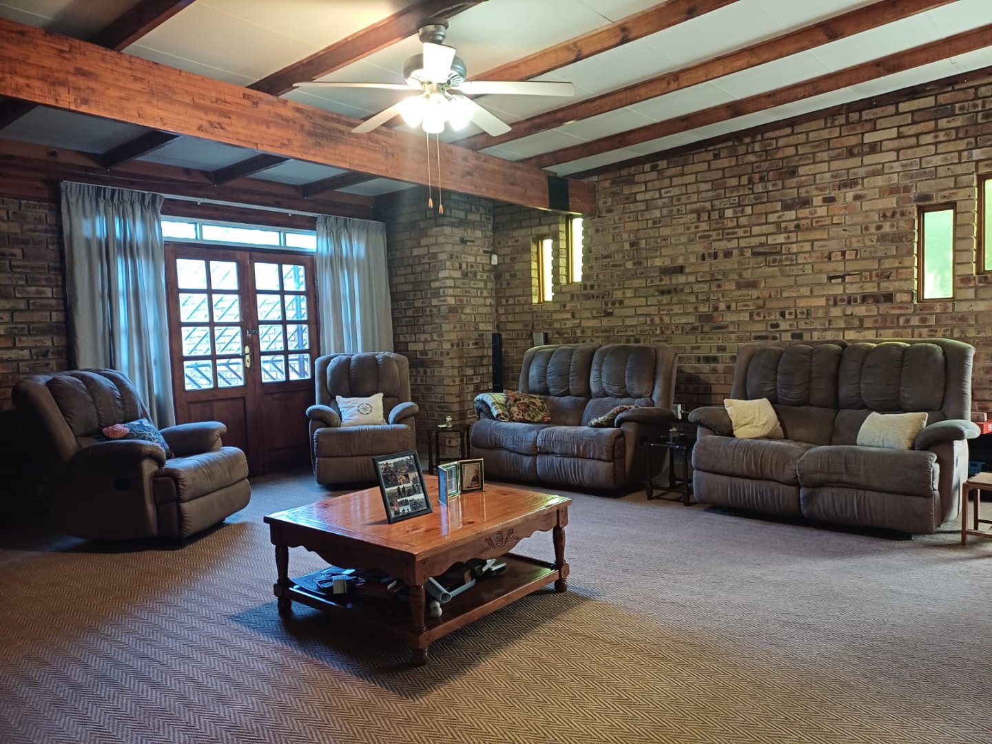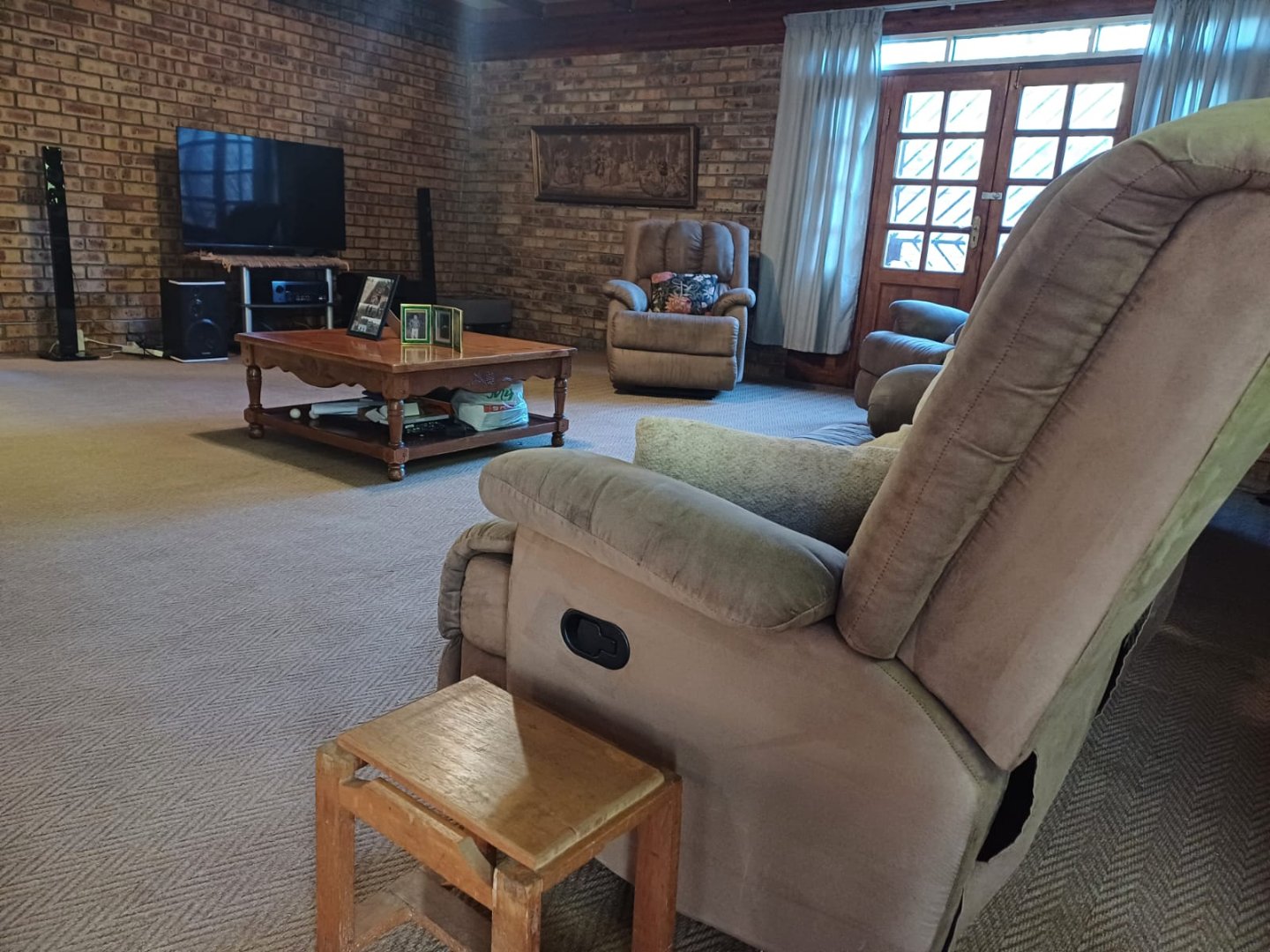The heart of this home is undoubtedly the expansive entertainment lapa. With tiled floors, a built-in braai and a cozy fireplace, it offers the perfect venue for year-round gatherings. Sliding doors open out to a sparkling swimming pool and lush garden, creating an effortless indoor-outdoor lifestyle.