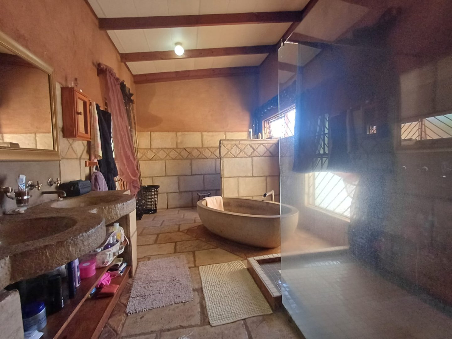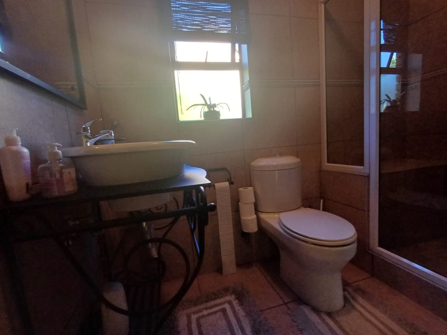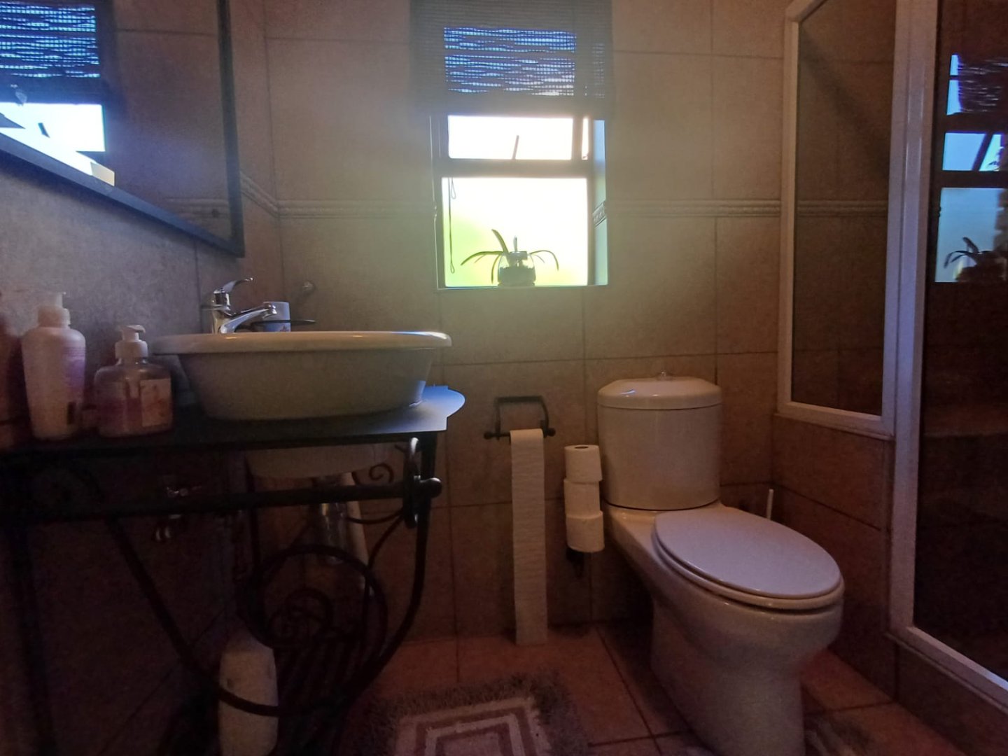 The home offers four spacious bedrooms, all fitted with built-in cupboards and ceiling fans. The three bathrooms are tastefully finished, including a main en-suite bathroom with a bath, toilet and basin.
