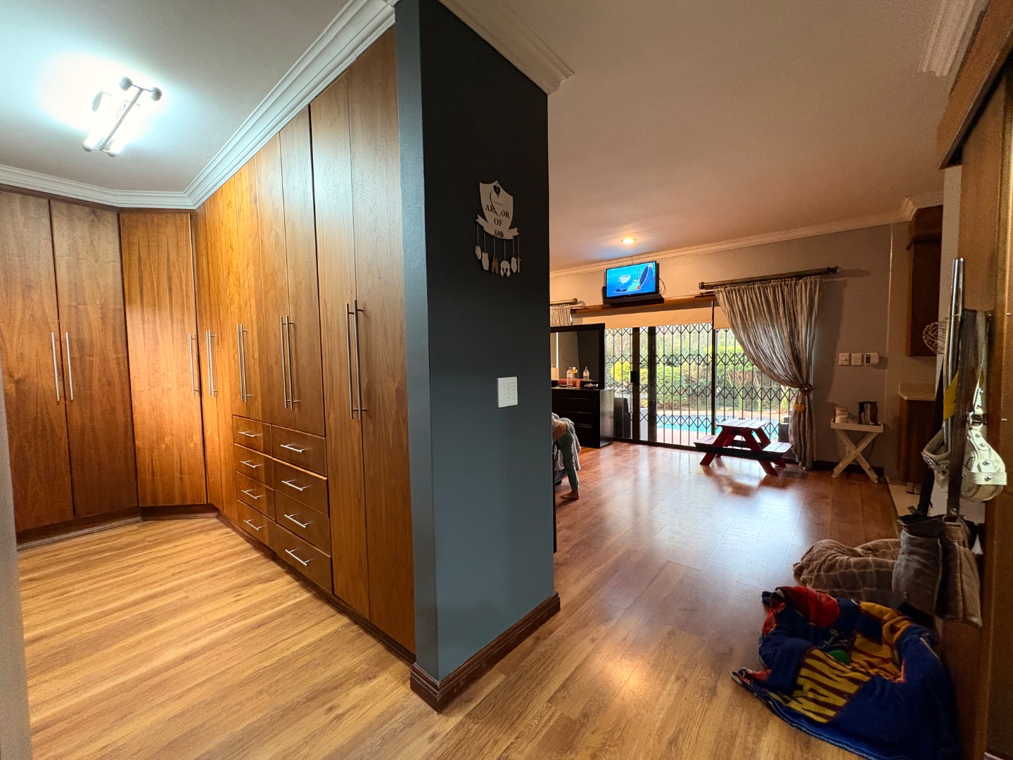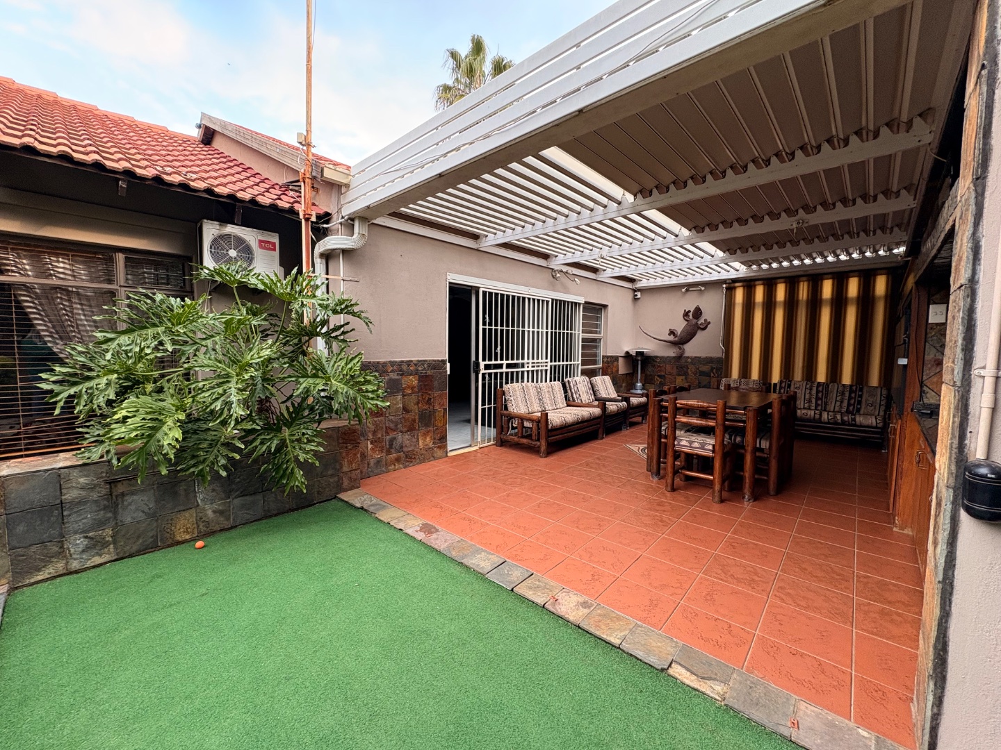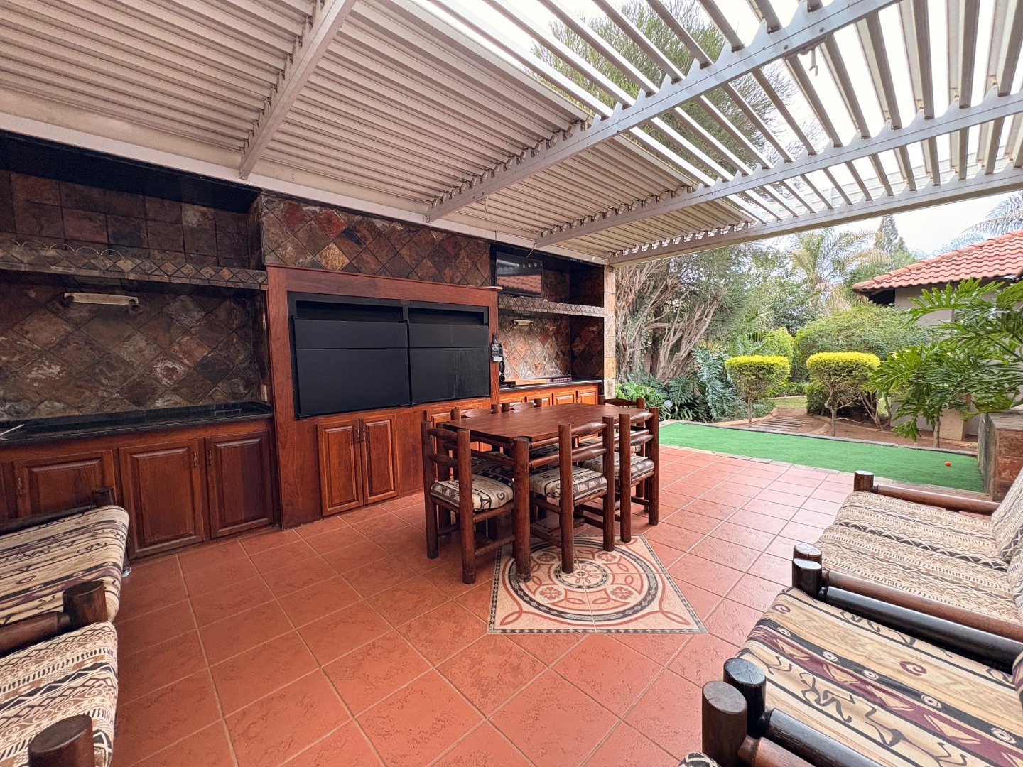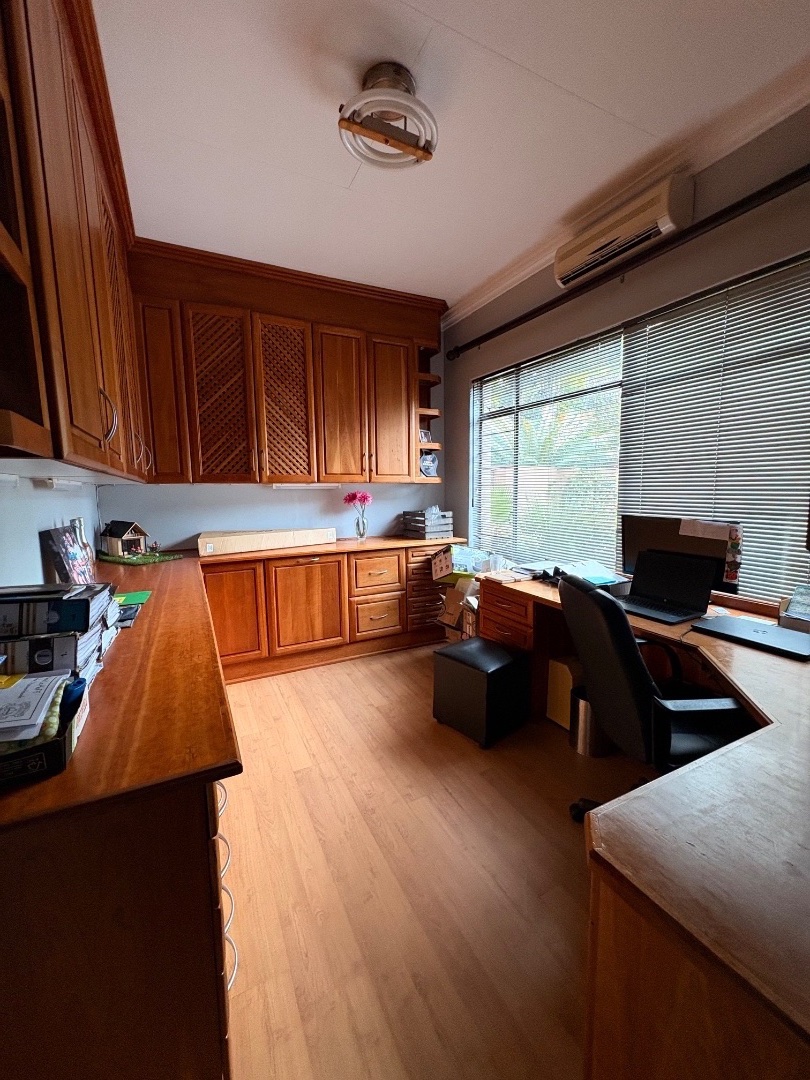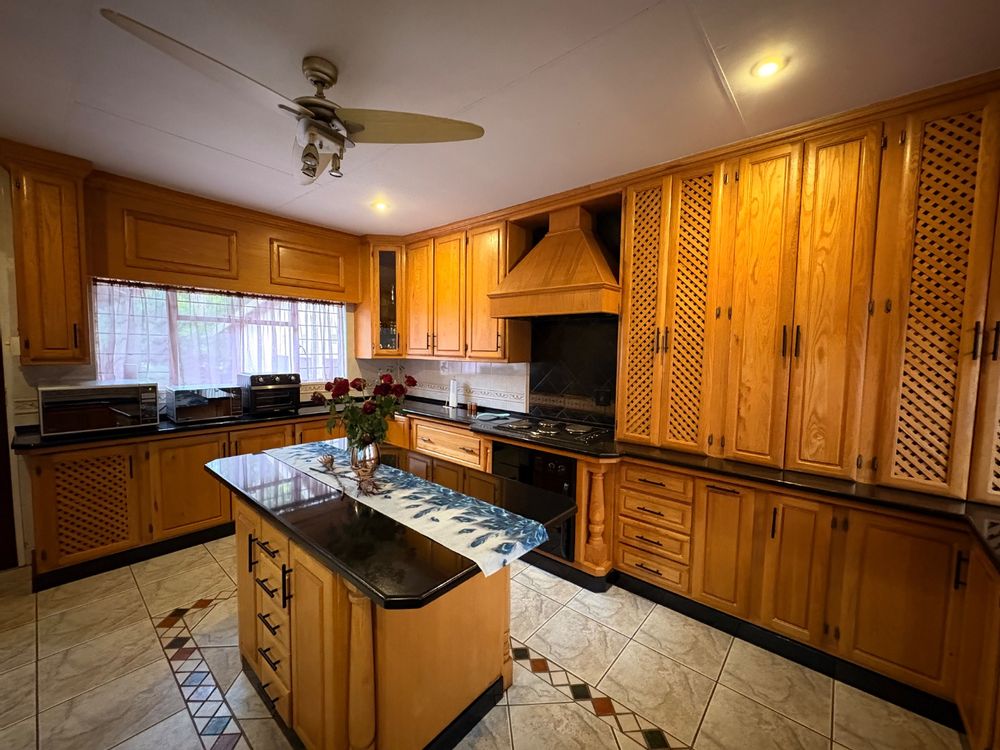 An entertainer’s paradise awaits with a built-in braai under roof, all set in a lush, green garden with a sparkling pool as the centrepiece. Additional features include a flatlet, irrigation system, prepaid electricity, and a camera system for added security.