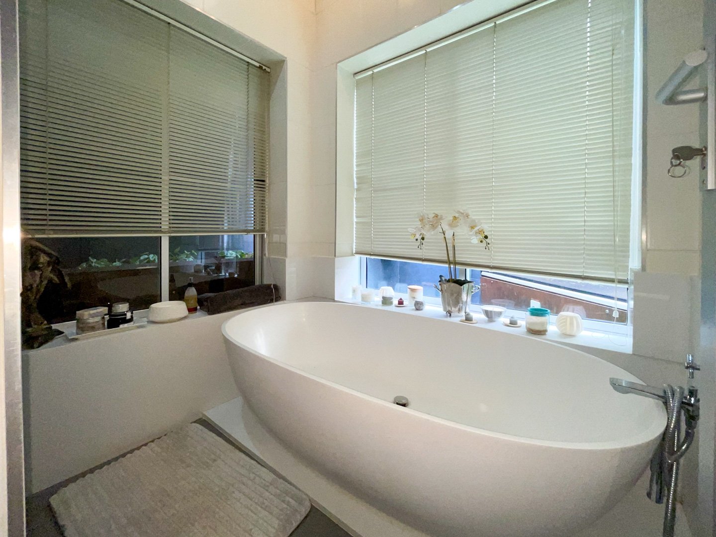 The modern bathroom, designed to provide a true spa-like experience, is equally impressive. With high-end finishes that exudes elegance and includes a spacious freestanding bathtub, offering an ideal sanctuary to start and end each day.