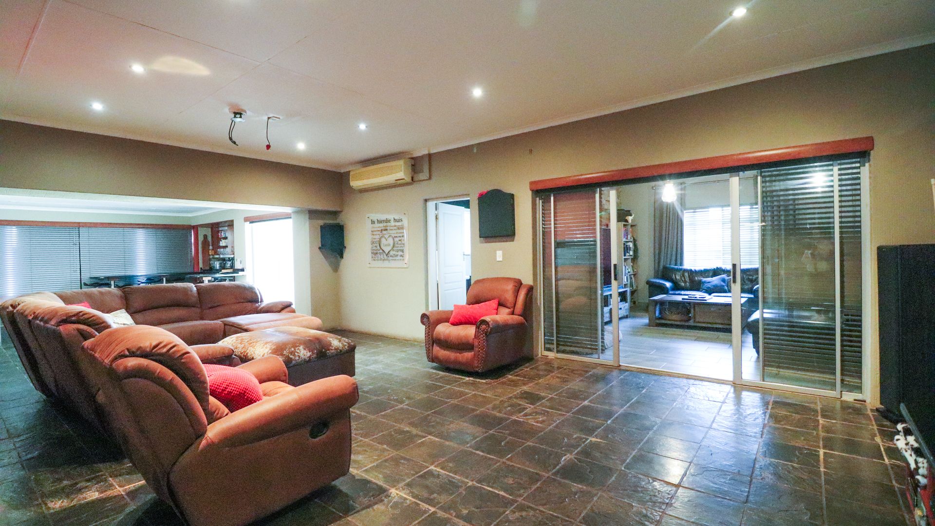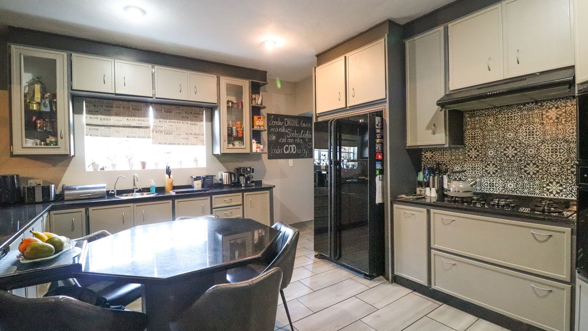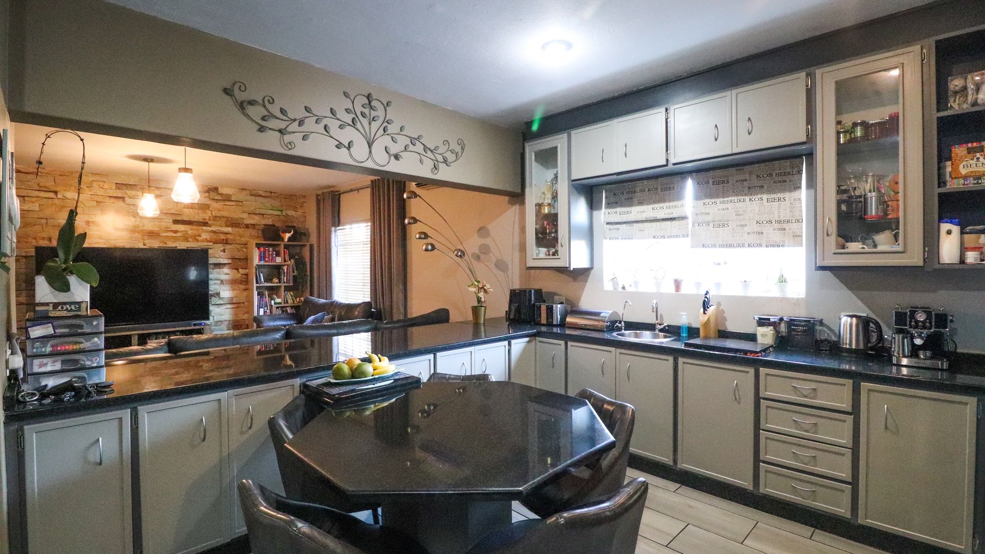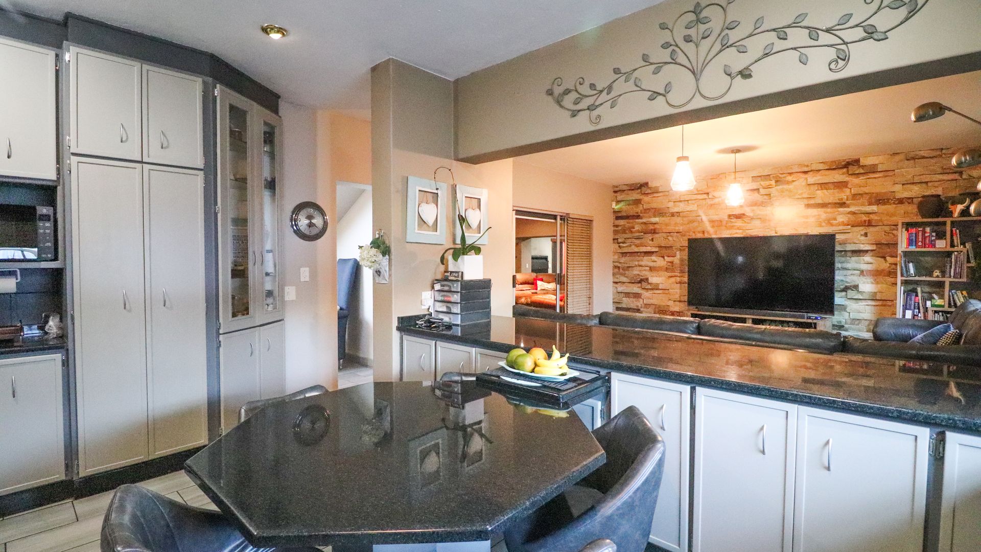 Open plan kitchen, lovely braai area and enclosed patio.