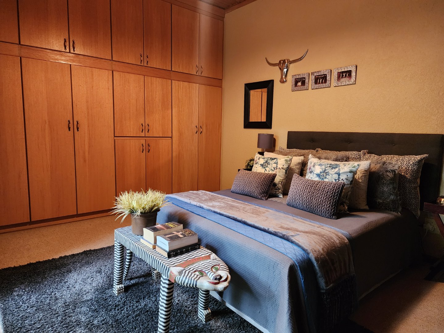 *Bedrooms: 3 spacious bedrooms with wall-to-wall built-in cupboards; two open directly to the garden.
