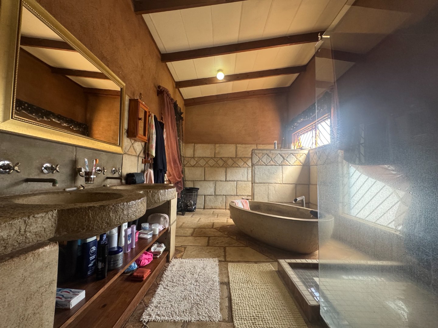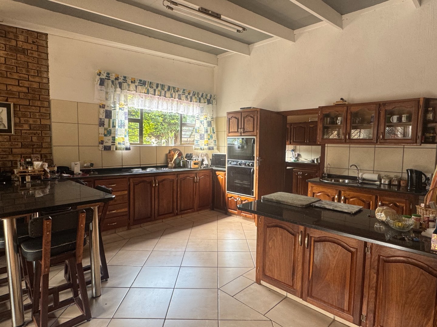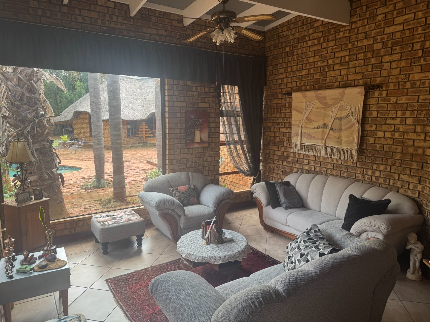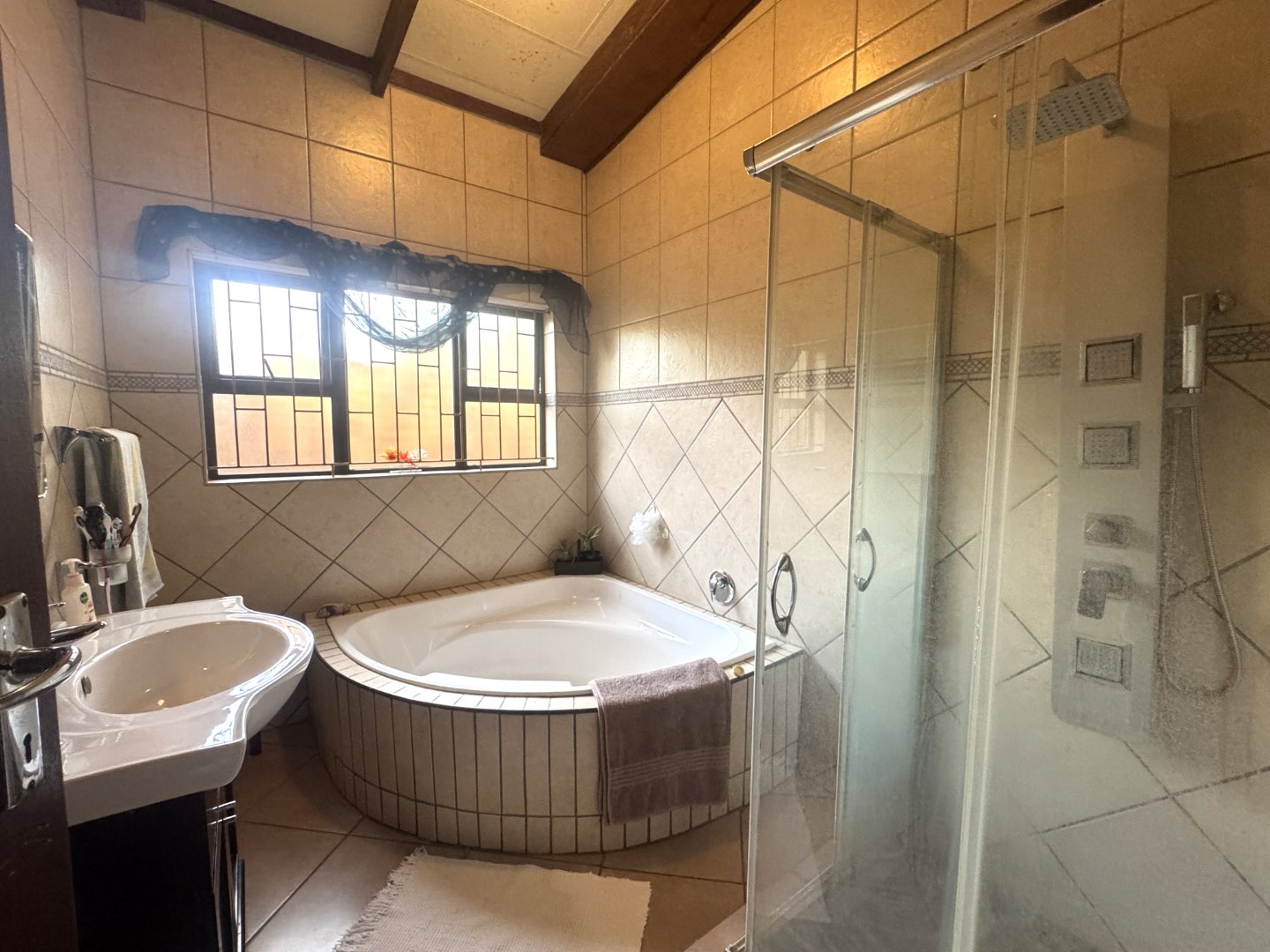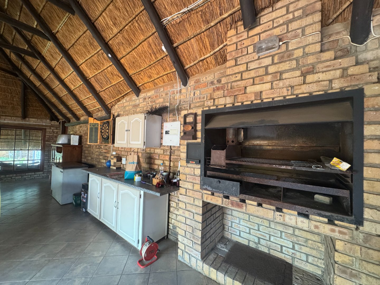 The heart of the home is the entertainment area, thoughtfully designed for both intimate gatherings and grand celebrations. A spacious lapa, complete with built-in braai and fire-place, overlooks a crystal-clear swimming pool, creating a resort-like ambiance.