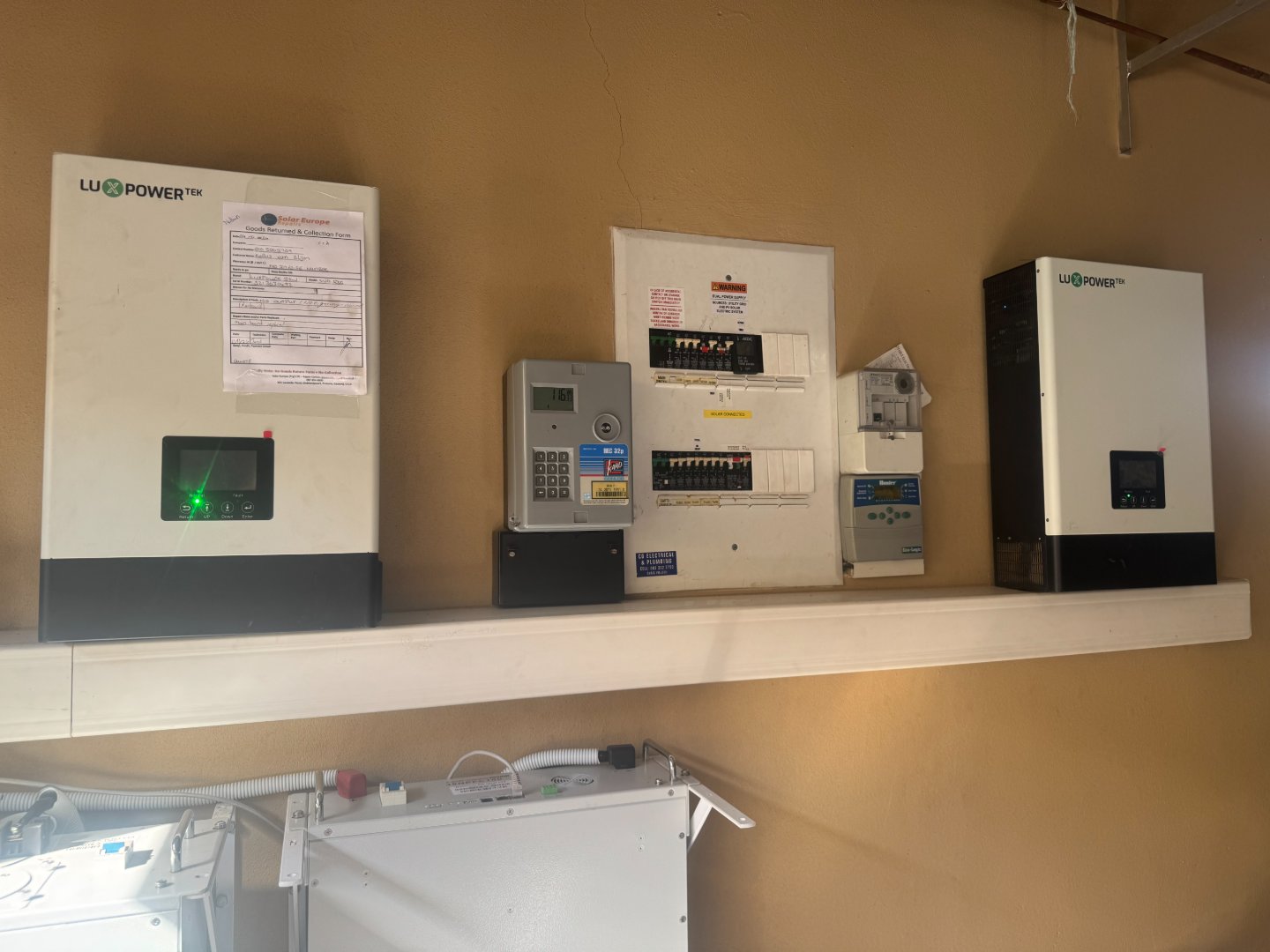 - Inverter system (2 x 5 KvA) and 15 solar panels