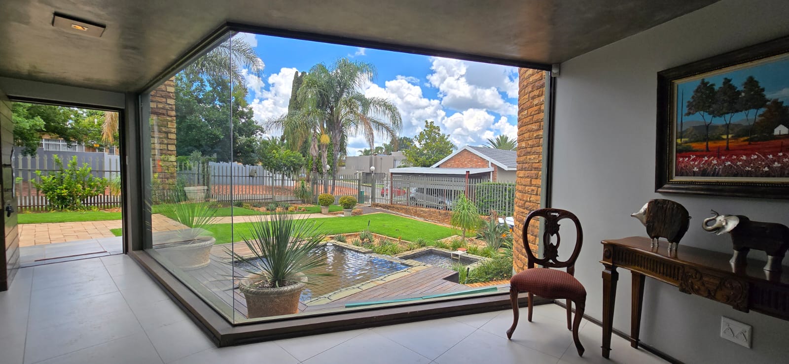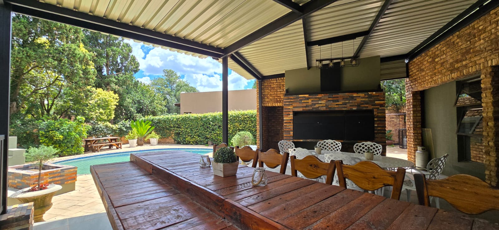 The comfortable informal living area is open plan. entertainment area with a built-in-braai area, overlooking an appealing, landscaped garden and inviting pool.