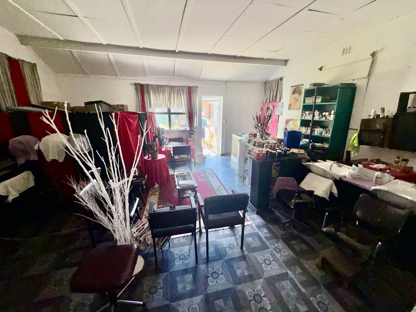 In addition to the residential accommodation, the property boasts a salon with approved business rights, offering immediate commercial income possibilities. A further highlight is the on-site water business, supported by a borehole, ensuring a reliable and cost-effective water supply.