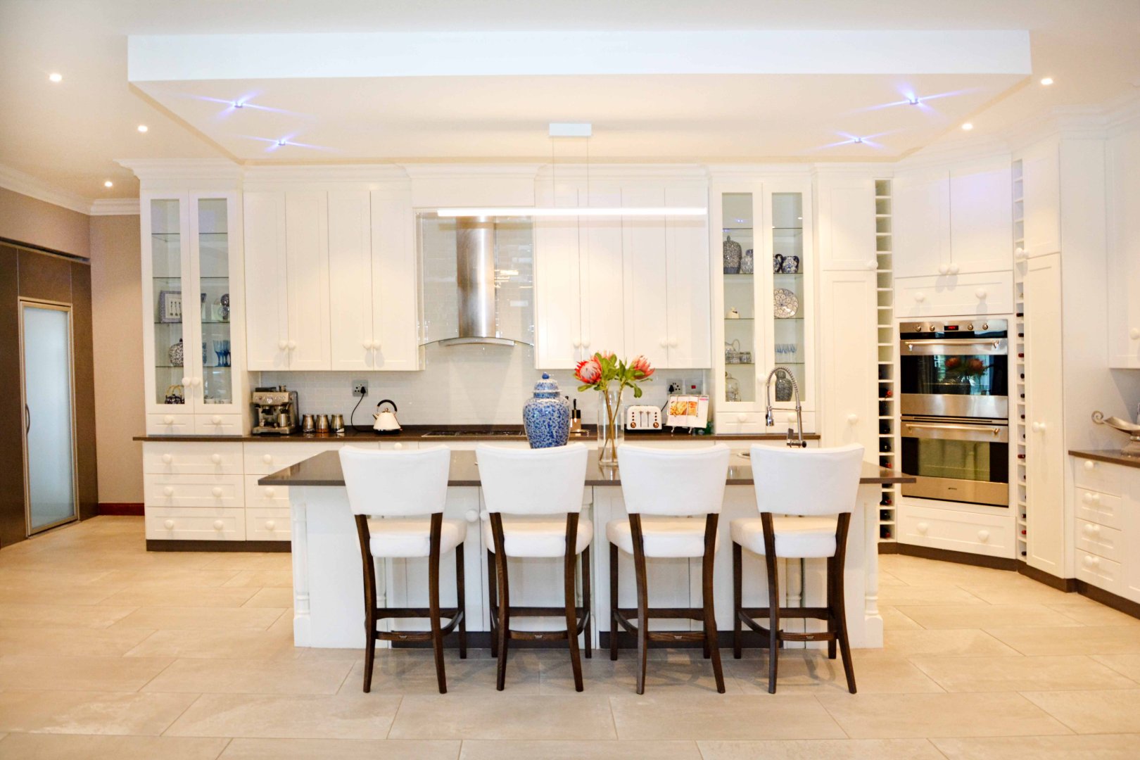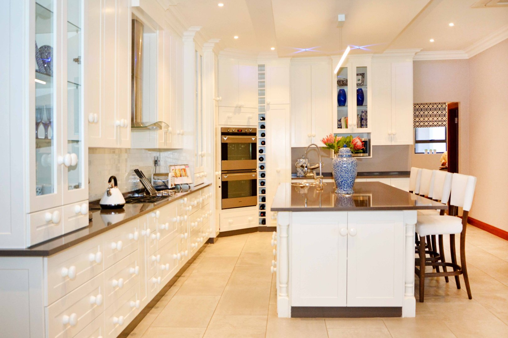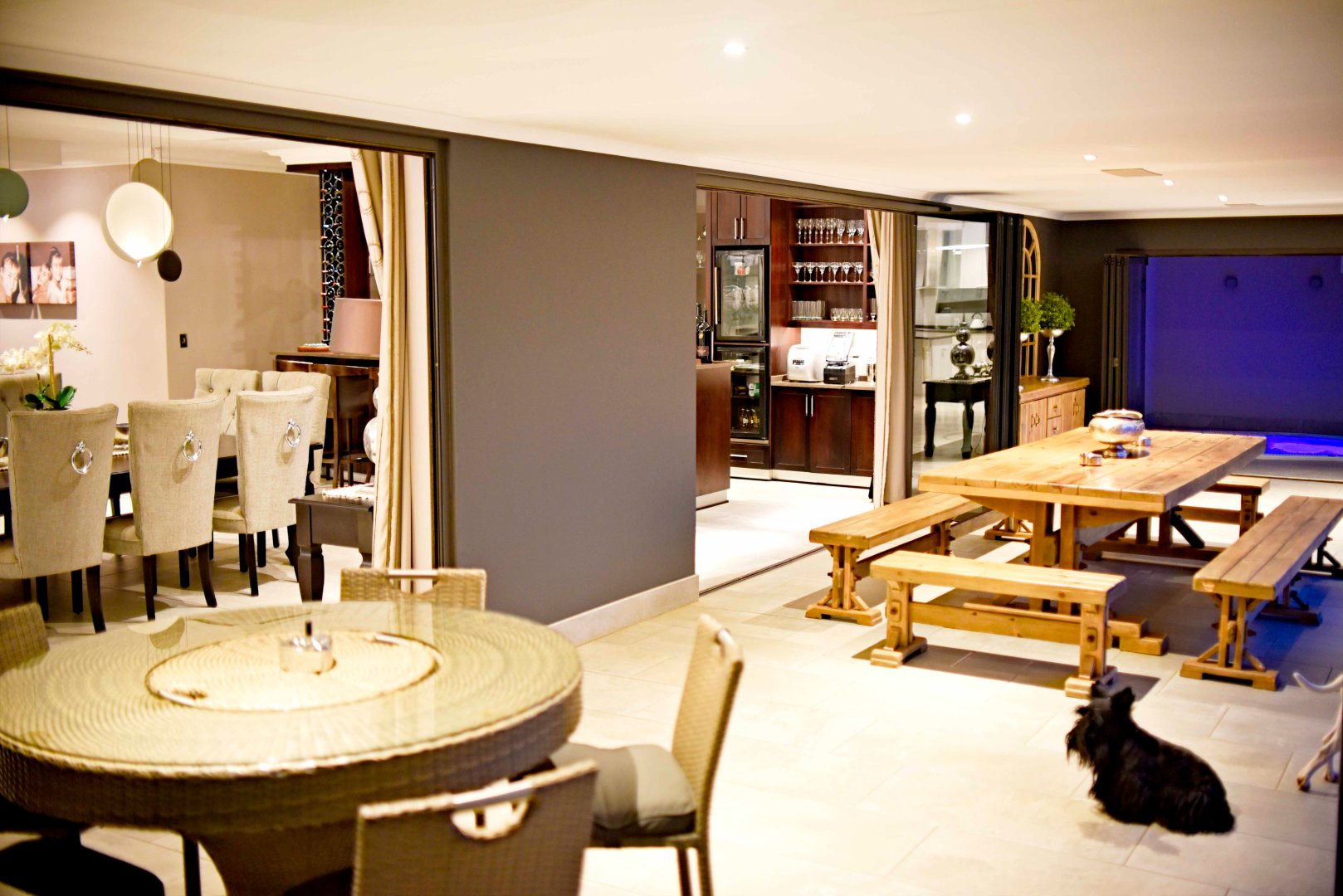 Welcome to an extraordinary opportunity to own a one-of-a-kind lifestyle farm in one of the most sought-after suburbs. This meticulously designed 4-bedroom masterpiece offers luxury living at its finest, blending sophisticated architecture with exceptional functionality across every space. Each spacious bedroom features a full en-suite bathroom, while the open-plan layout flows seamlessly through the grand TV lounge, formal dining area, and a designer kitchen complete with granite countertops, walk-in fridge, wooden bar, and top-quality finishes throughout. A fully equipped scullery and laundry room add to the home’s effortless elegance.