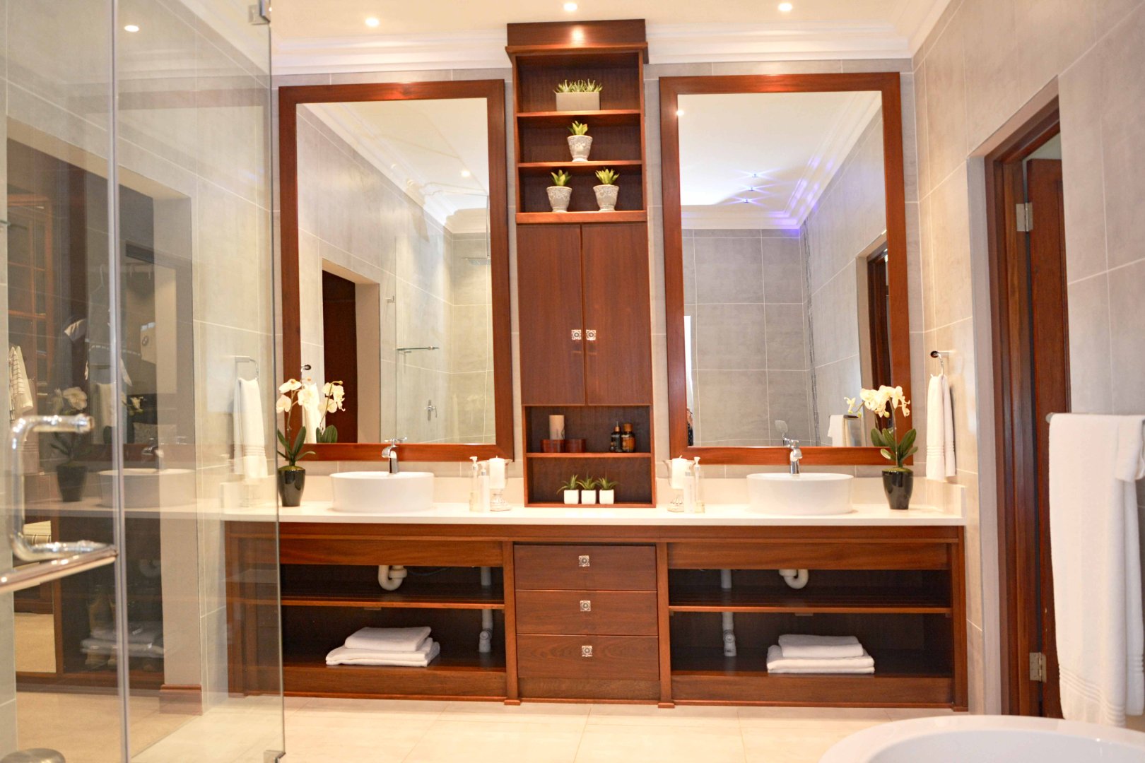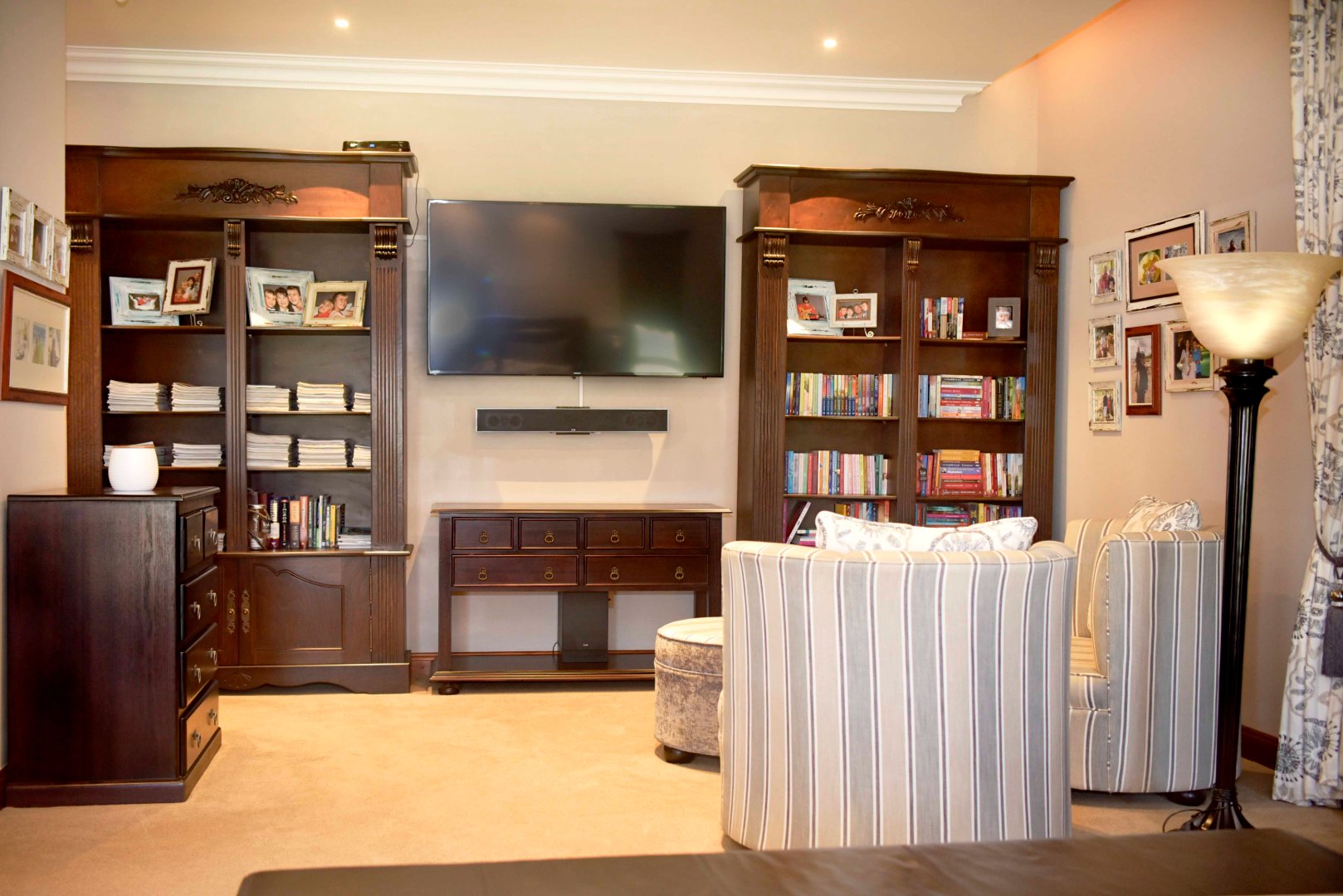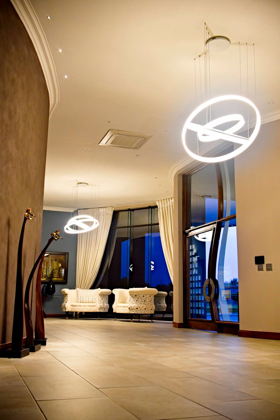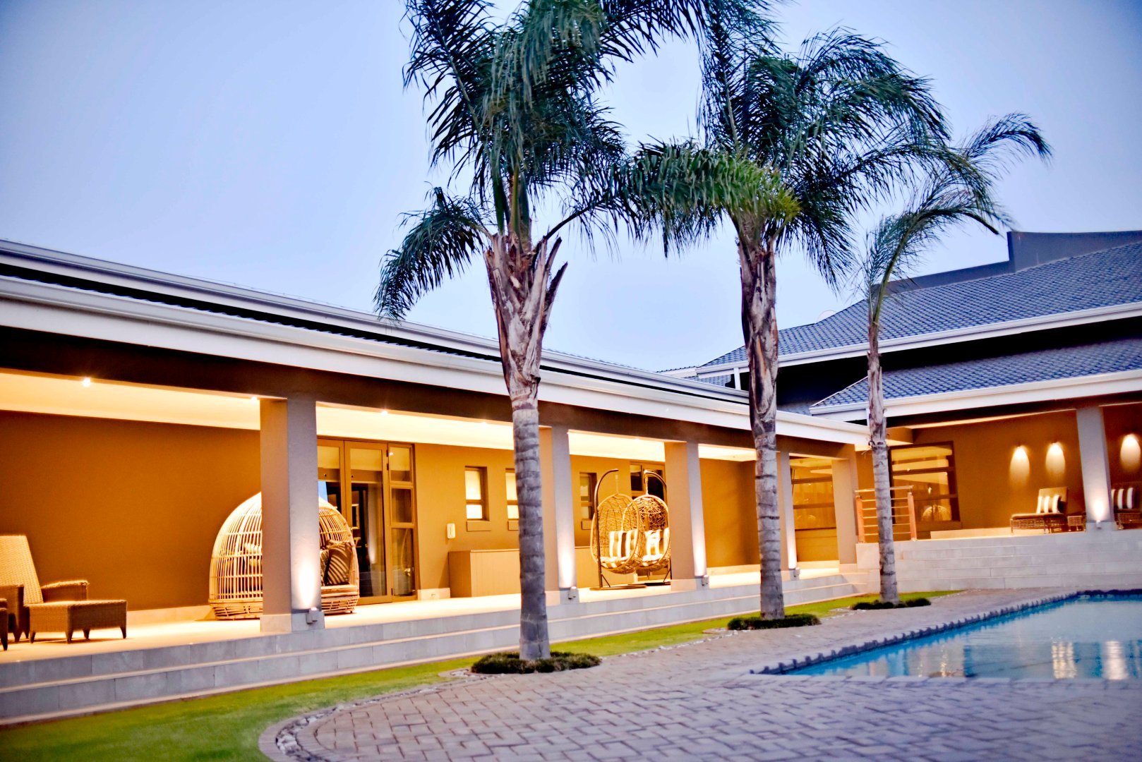 Entertainment is effortless with three covered verandas, a sparkling swimming pool, and an exceptional outdoor entertainment area — all air-conditioned and tastefully tiled. Additional highlights include a fully air-conditioned home, private gym, boma, walk-in safe, and dedicated storage rooms, including a walk-in cooler. The property is powered by a solar system with 74 x 330W panels, a 55kW backup generator, and is secured by an advanced alarm system and CCTV surveillance.