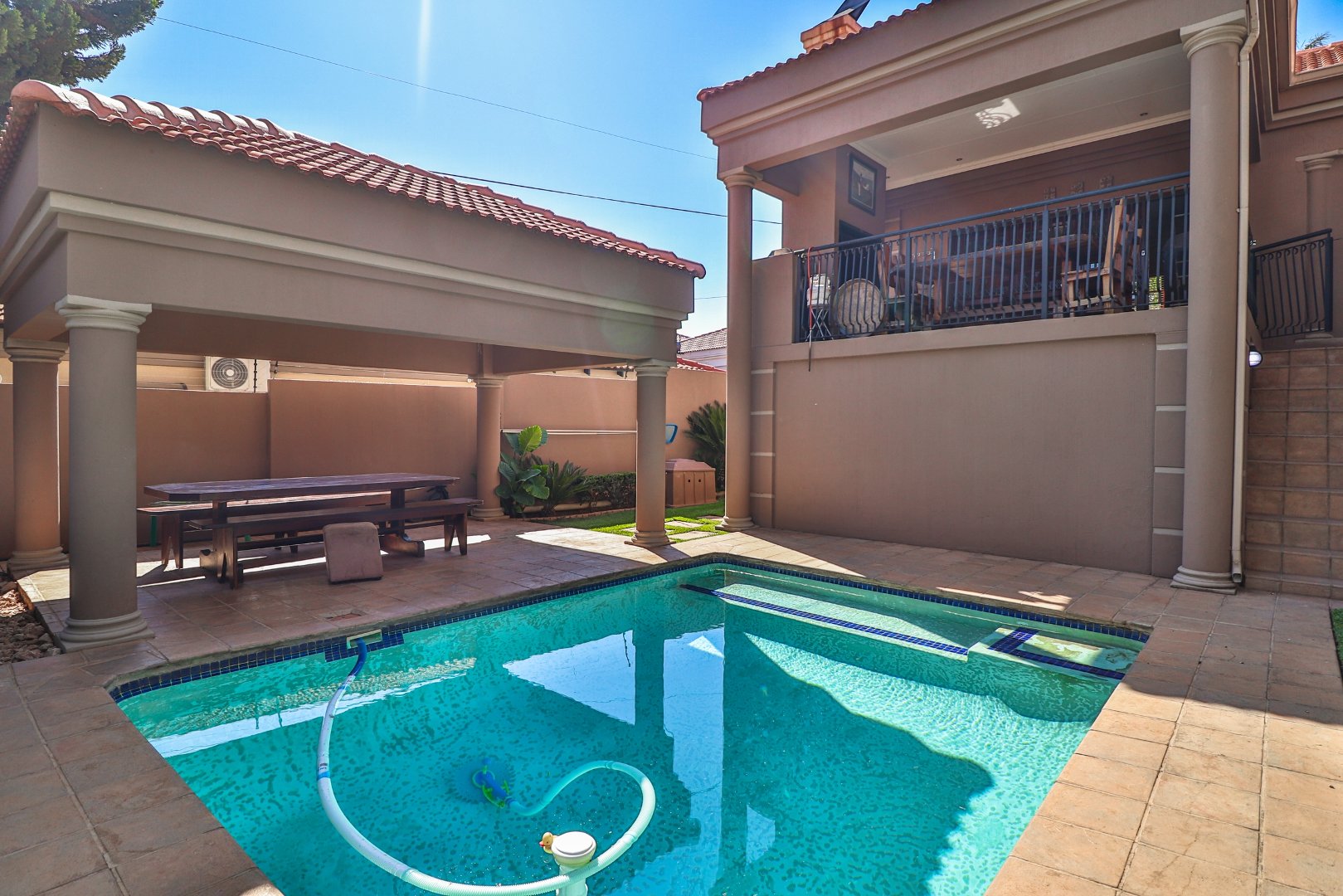Step outside to discover your own private oasis. The sparkling heated pool invites you to indulge in leisurely swims year-round, while the built-in braai on the outside patio is perfect for hosting unforgettable gatherings with friends and family.