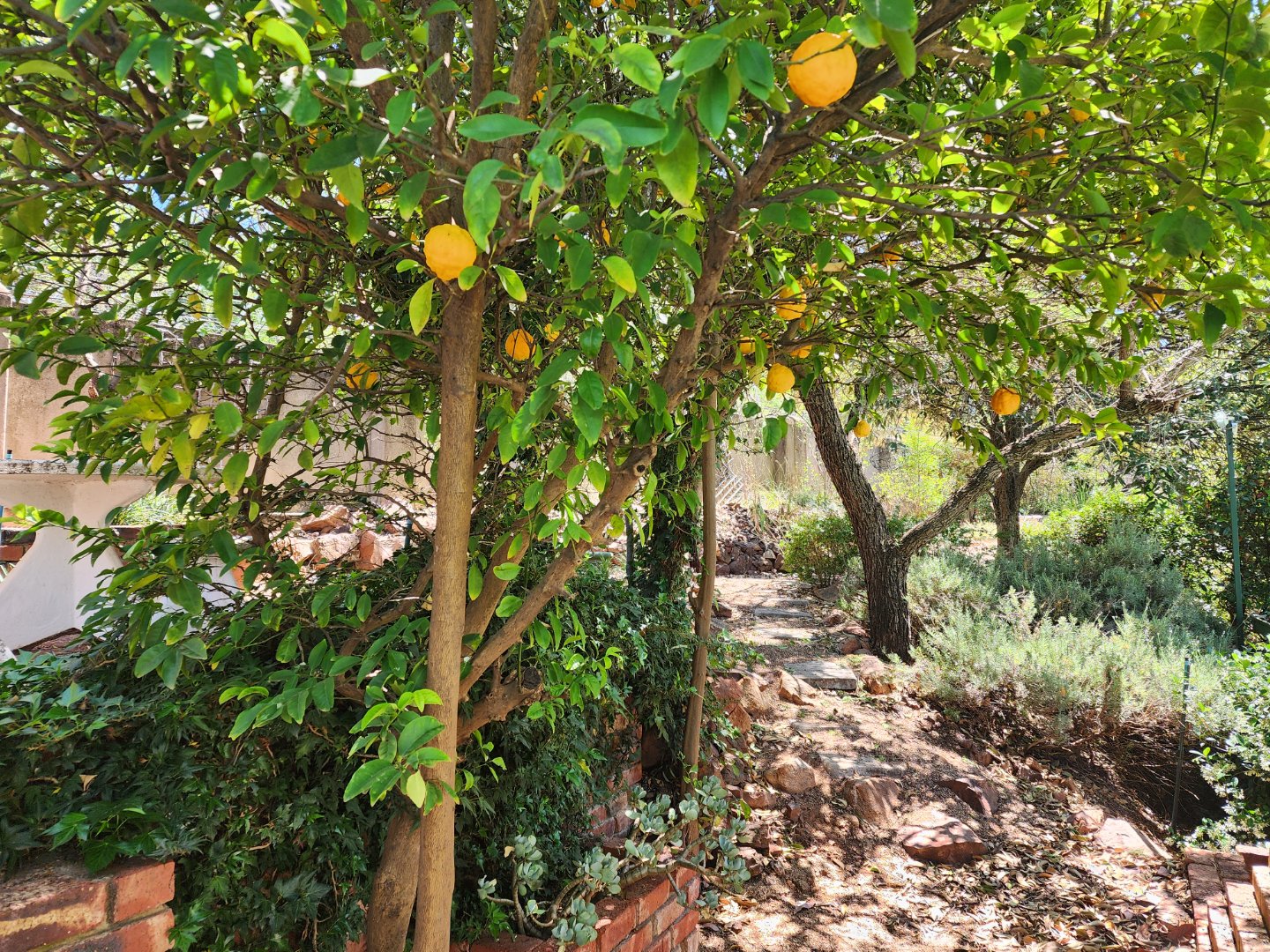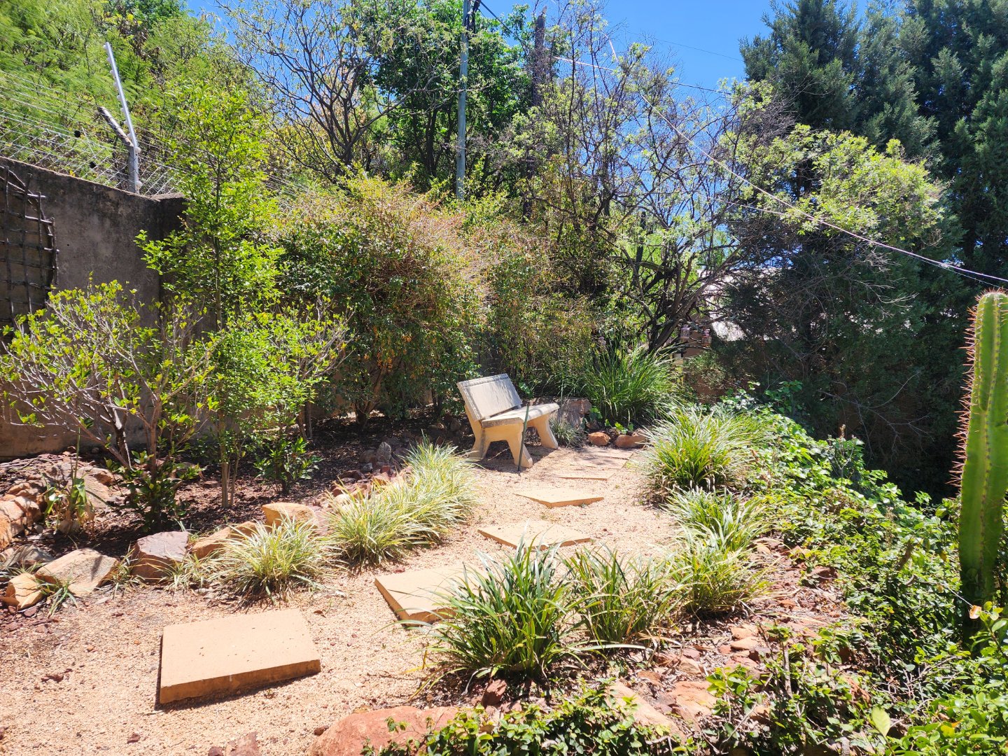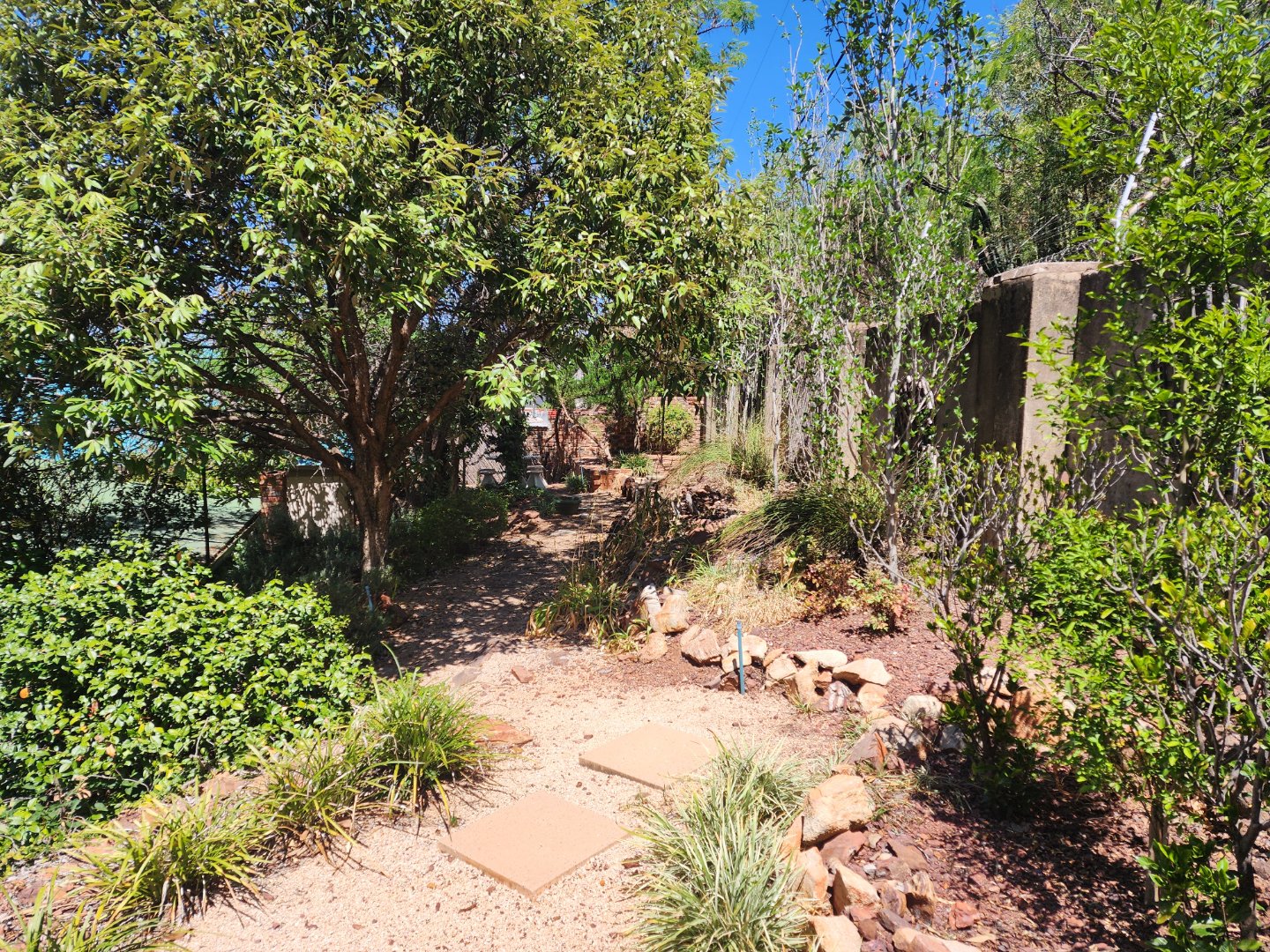 Well-kept, low-maintenance garden with irrigation system