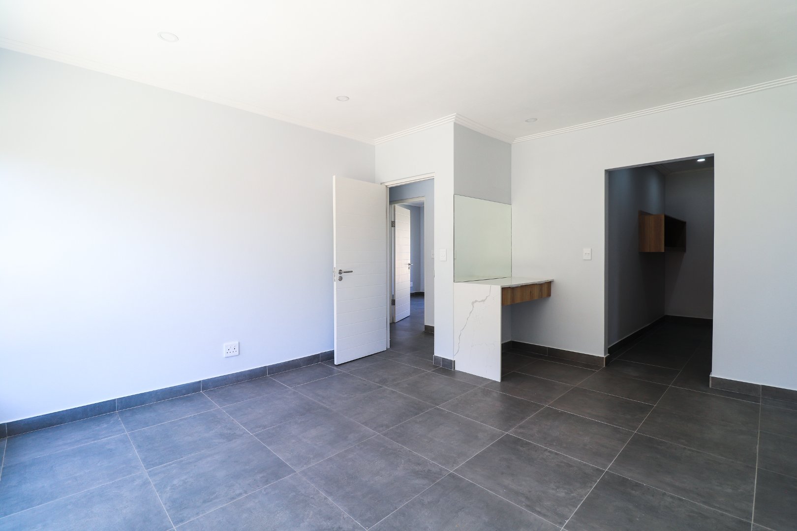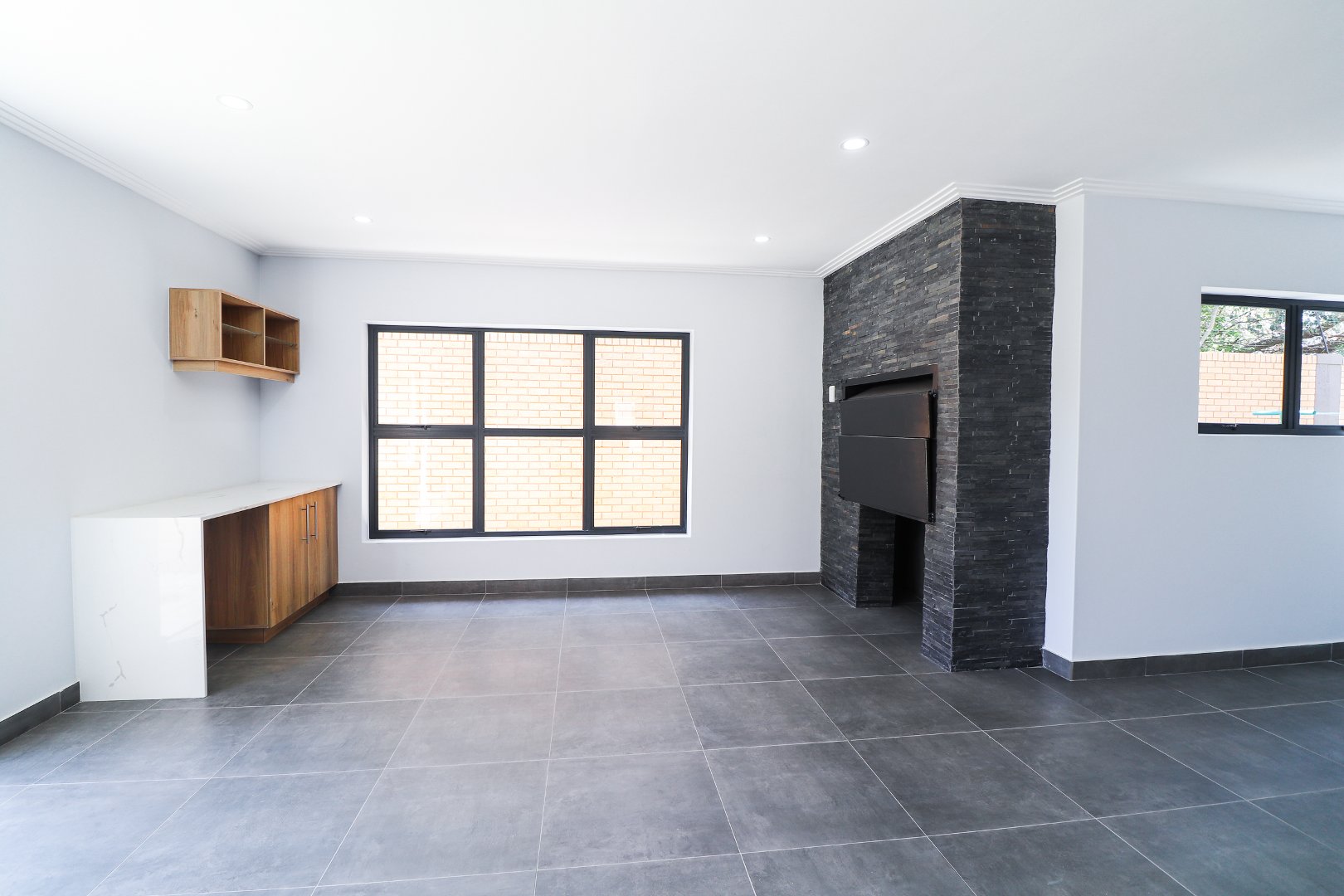 One of the standout features of this townhouse is the indoor braai area, allowing for year-round barbecuing and social gatherings. A sliding door provides convenient access from the indoor braai area to the garden, creating a seamless connection between indoor and outdoor spaces.