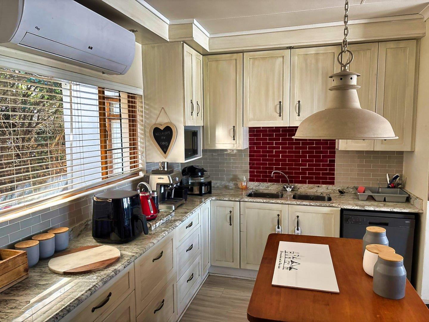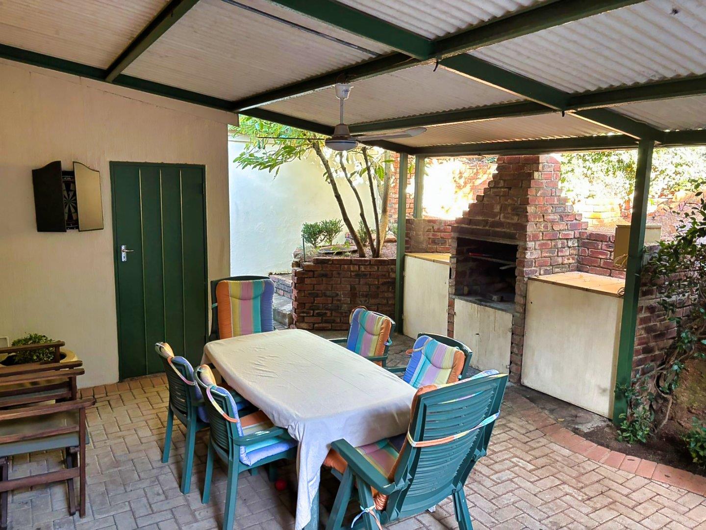 Step outside to the covered entertainment area with a built-in braai, and take advantage of the inverter with solar geyser, sun panels, air conditioning, and a well-kept private garden complete with a Wendy hut for garden equipment. Additional highlights include two garages with electric doors, irrigation, and a low levy of only R506/month.