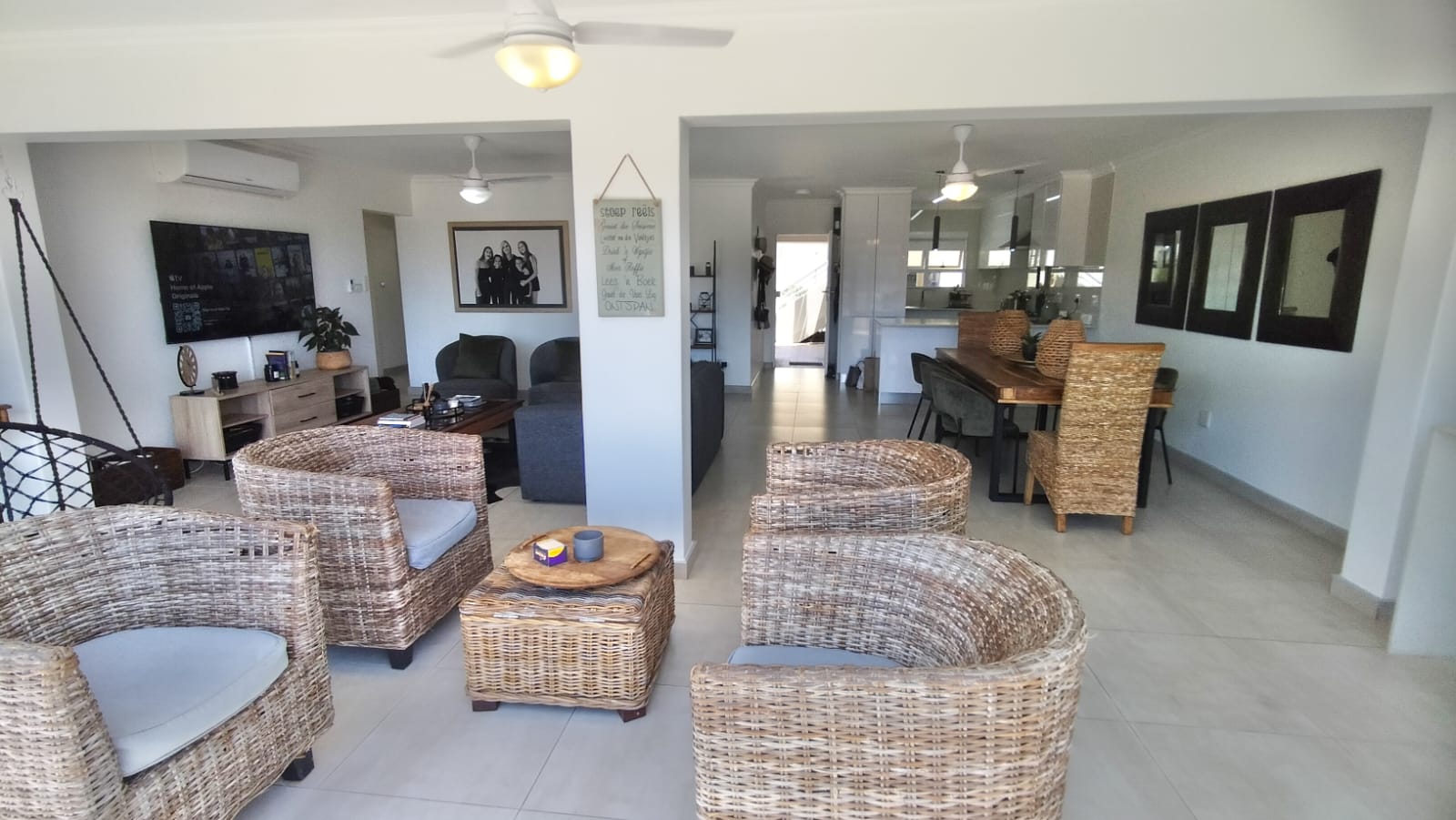 This contemporary residence features a modern kitchen equipped with a gas hob, seamlessly integrated into an open-plan, air-conditioned living and dining area. A glass-enclosed balcony enhances the space, extending to an outdoor balcony area where you can soak in the lovely valley views and panoramic sights of Thompson's Beach through to Sheffield.