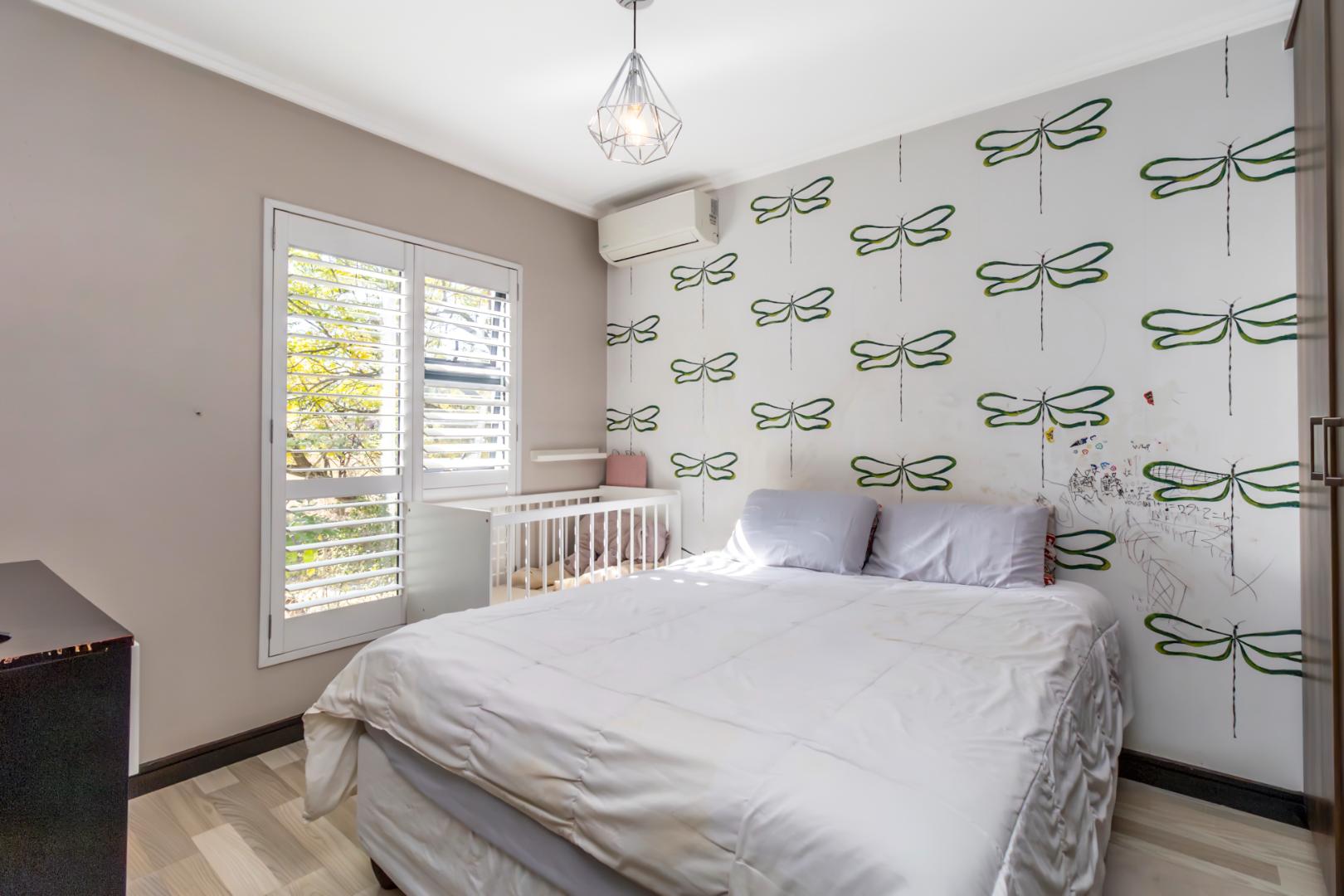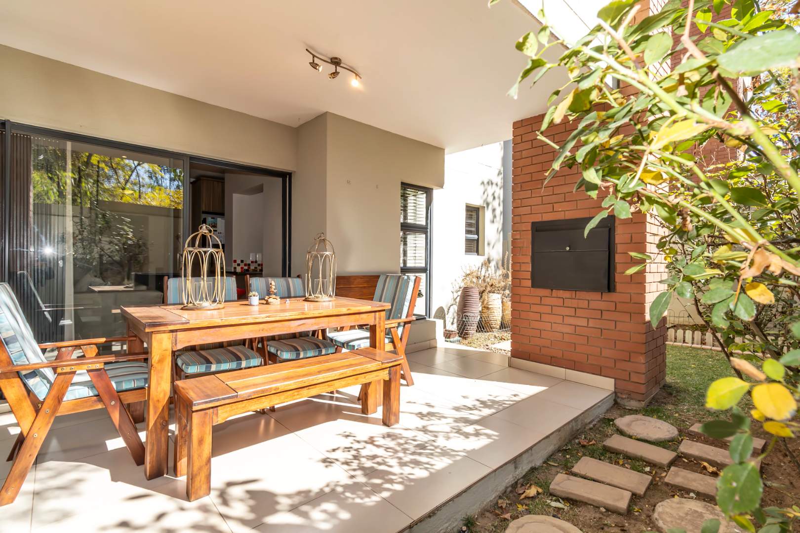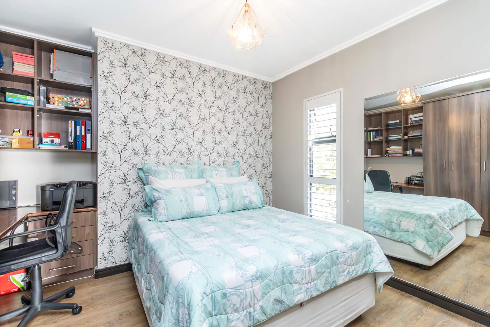 The lounge leads out into the covered patio and large private garden. The warming feature of the gas fireplace ensures cosy winter evenings shared with family. The open plan kitchen is beautifully designed with ample cupboard space and plumbed water for the double door fridge. Scullery included.