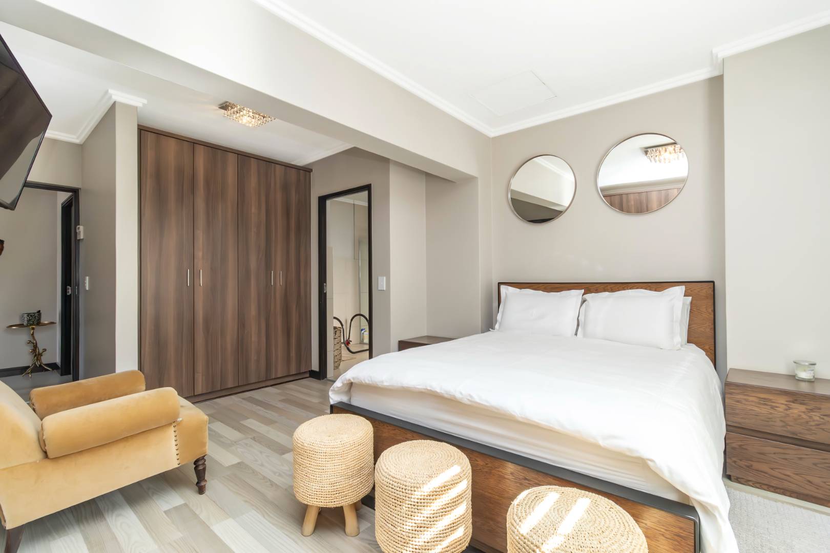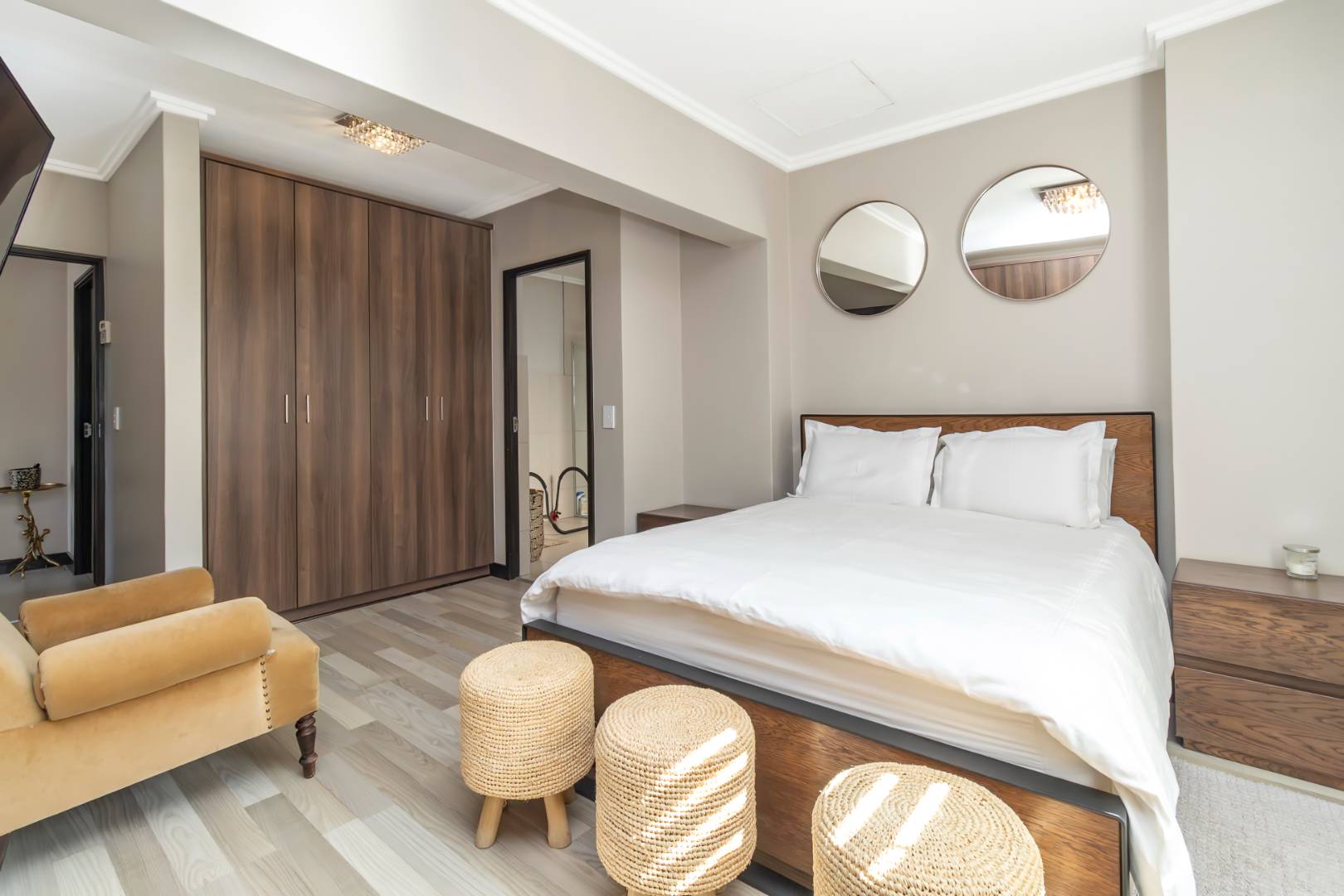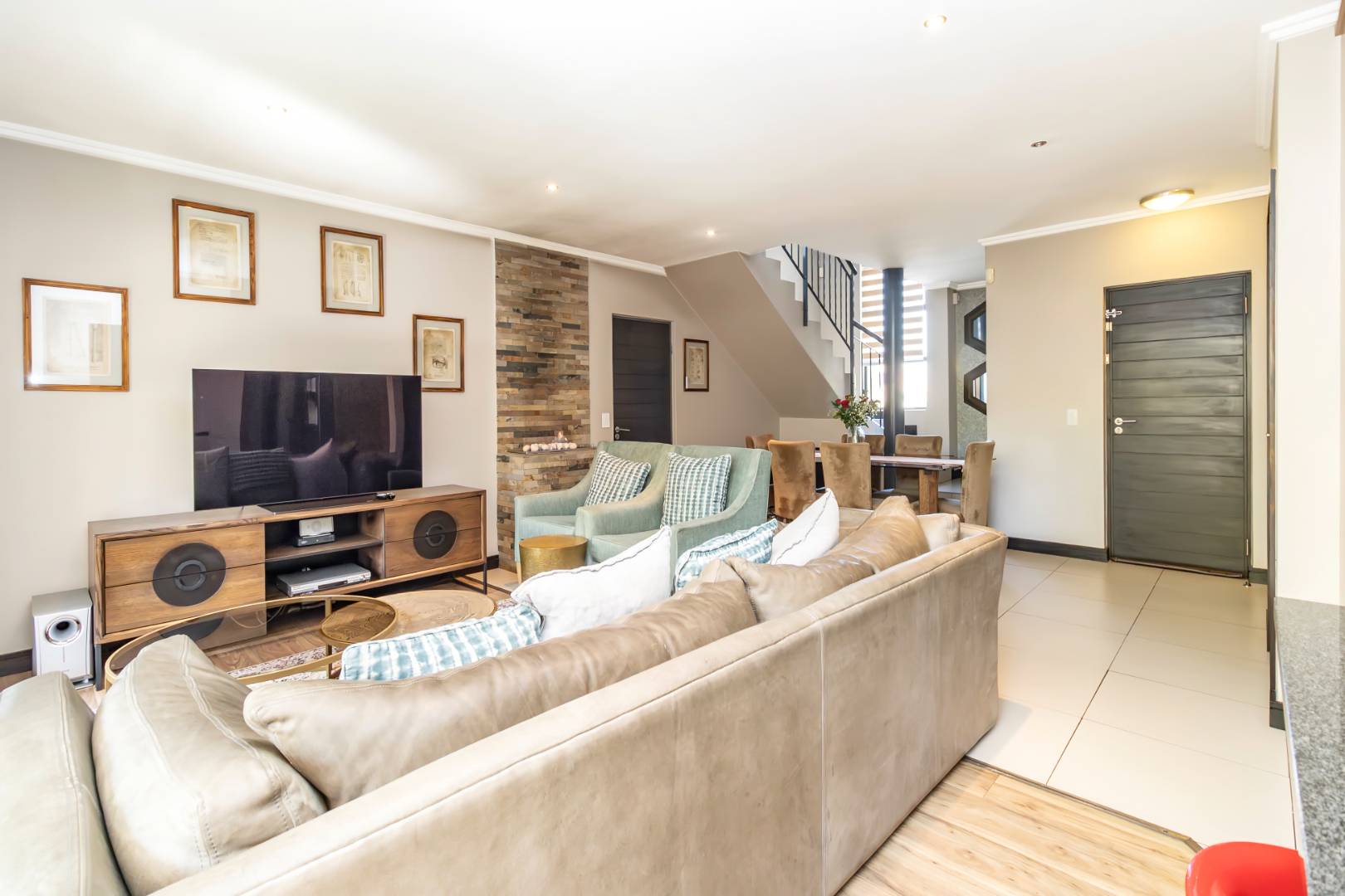 The lounge leads out into the covered patio and large private garden. The warming feature of the gas fireplace ensures cosy winter evenings shared with family. The open plan kitchen is beautifully designed with ample cupboard space and plumbed water for the double door fridge. Scullery included.