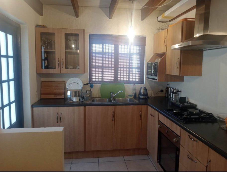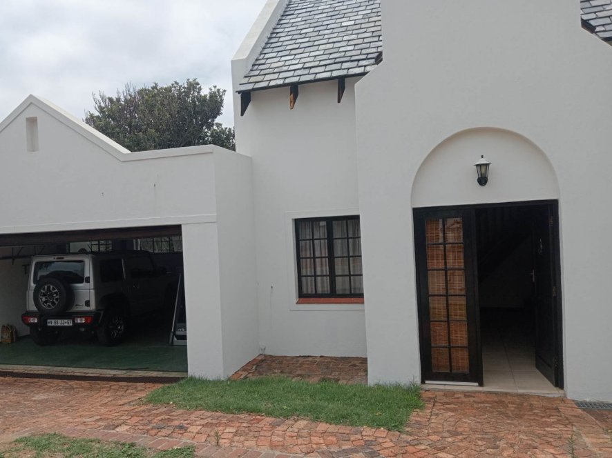 This very quaint, full title ,Cape Dutch Style Cluster, 2 bed 2 modern bathrooms, double automated garage with workshop, solid saligma wooden beams in, lounge and dining room, with fireplace, upstairs loft with aircon, is ideal for a third bedroom or pyjama,/TV lounge or kiddies play room, with optional solid oak TV Cabinet for sale, modern kitchen with new gas hob, and new oven, ample space for appliances for dish washer, washing machine and fridge, ample storage space, and linen cupboard, outside patio, private garden with wendy house with tools inclusive, is situated in the very secure and popular estate of The Vineyard, Willaway in Kyalami, The Estate is ideally positioned between the Kyalami Prep School, and Kyalami Creche, both in very close proximity and walking distance, This is a children and pet friendly estate, very secure and well managed, with double secured entrance. This estate is situated just off Allandale Road, in close proximity to The Mall of Africa, Waterfall Hospital, Schools, University and Colleges, and Major Roads. All offers are welcome. There are 50 cluster units in the estate.