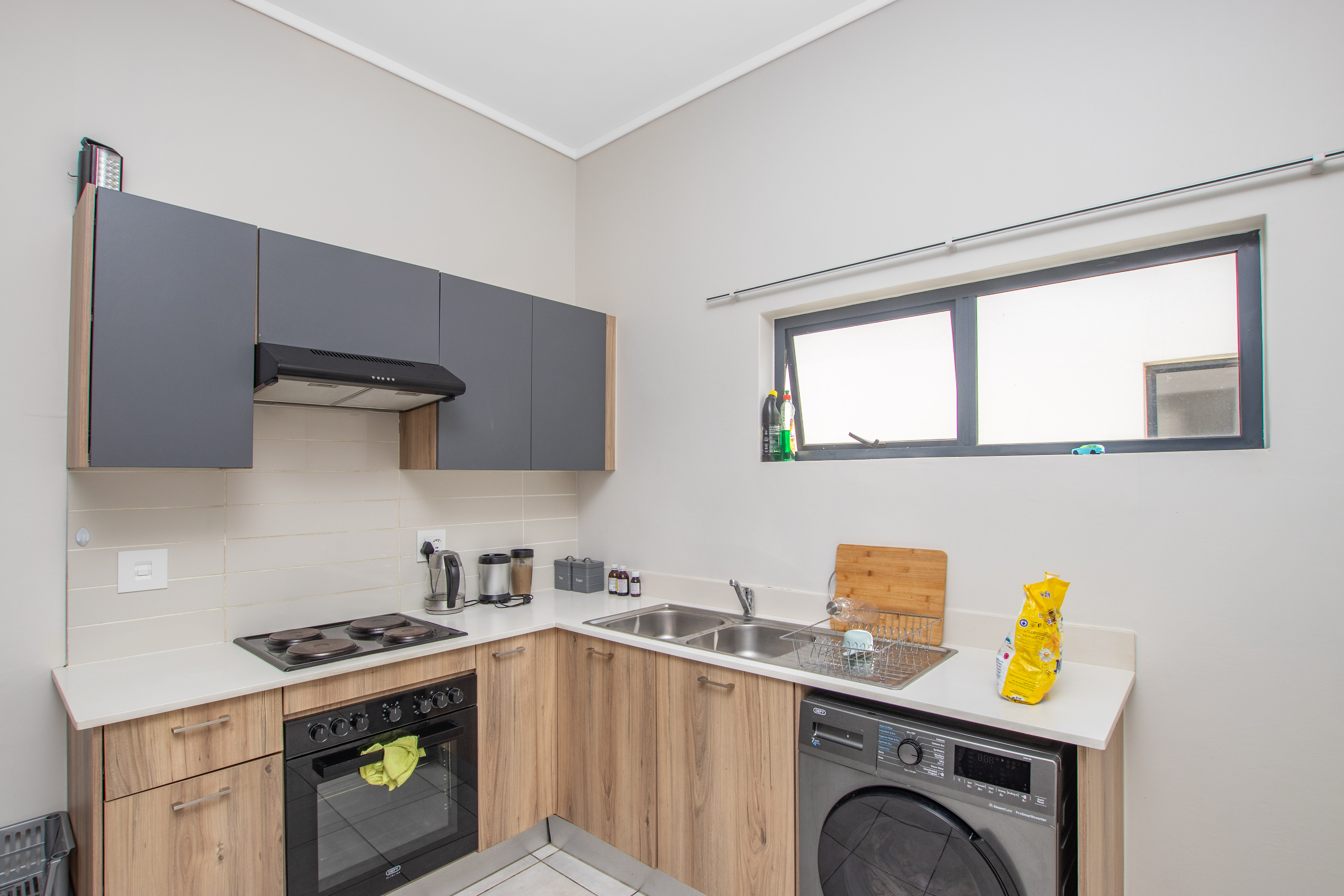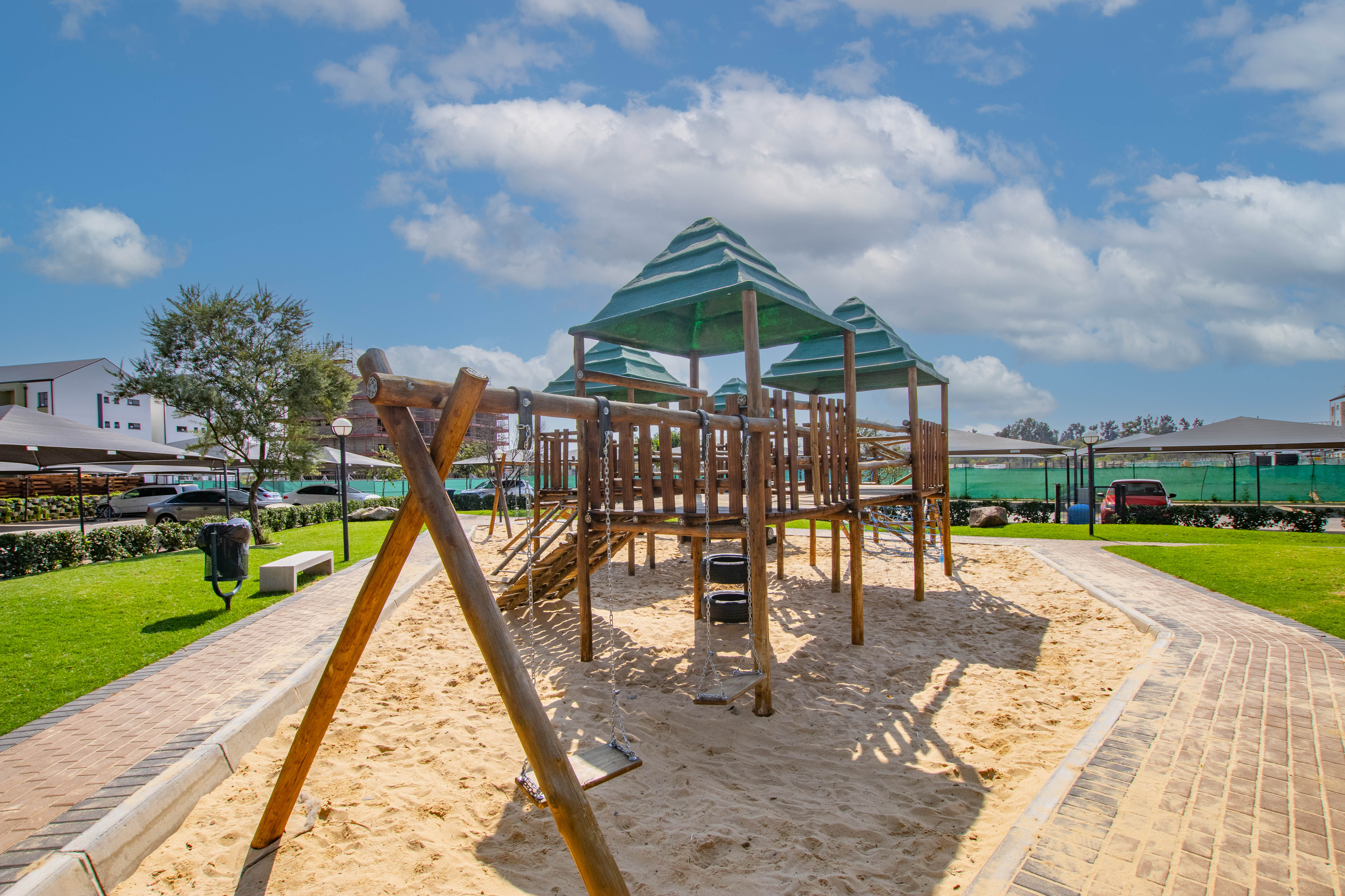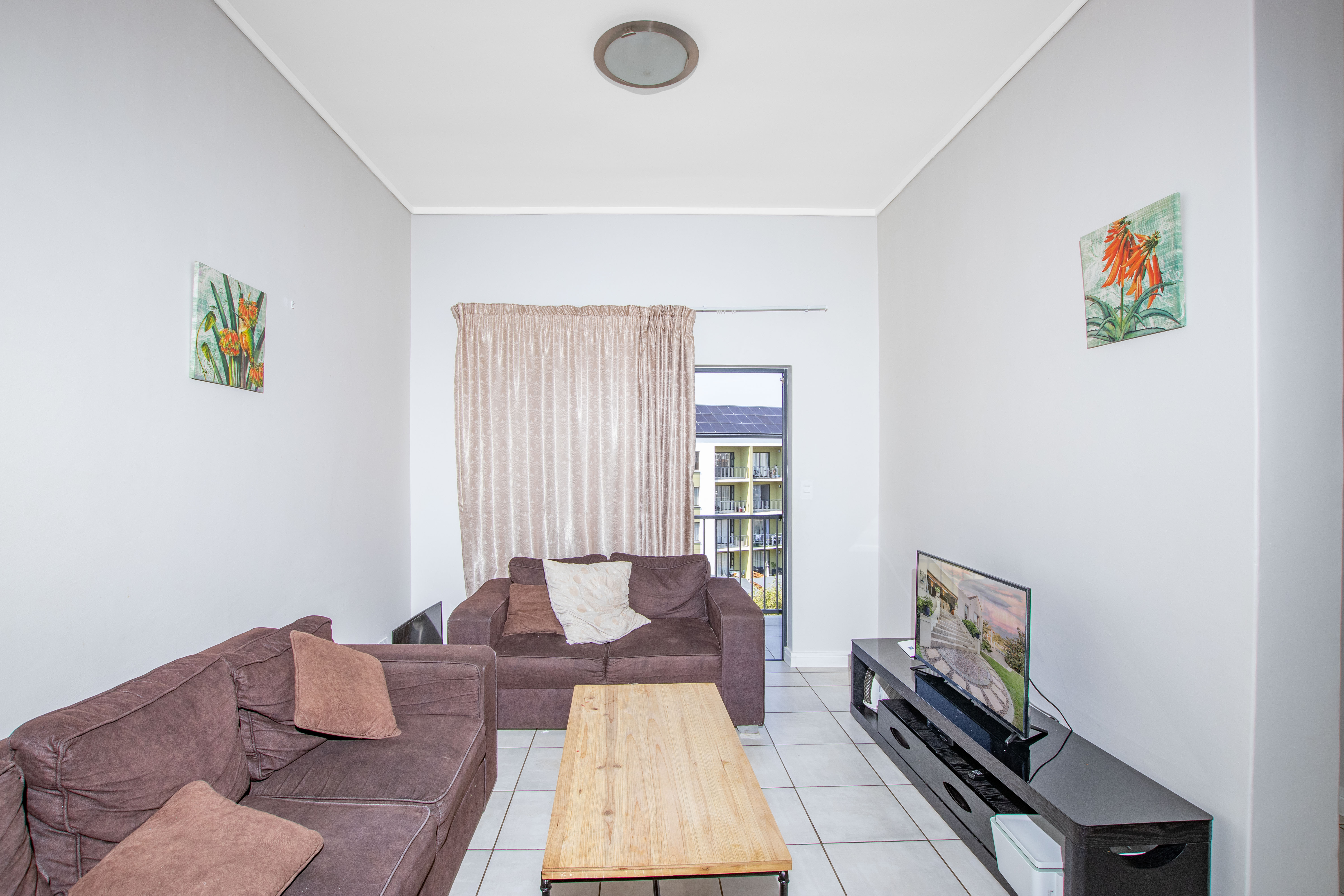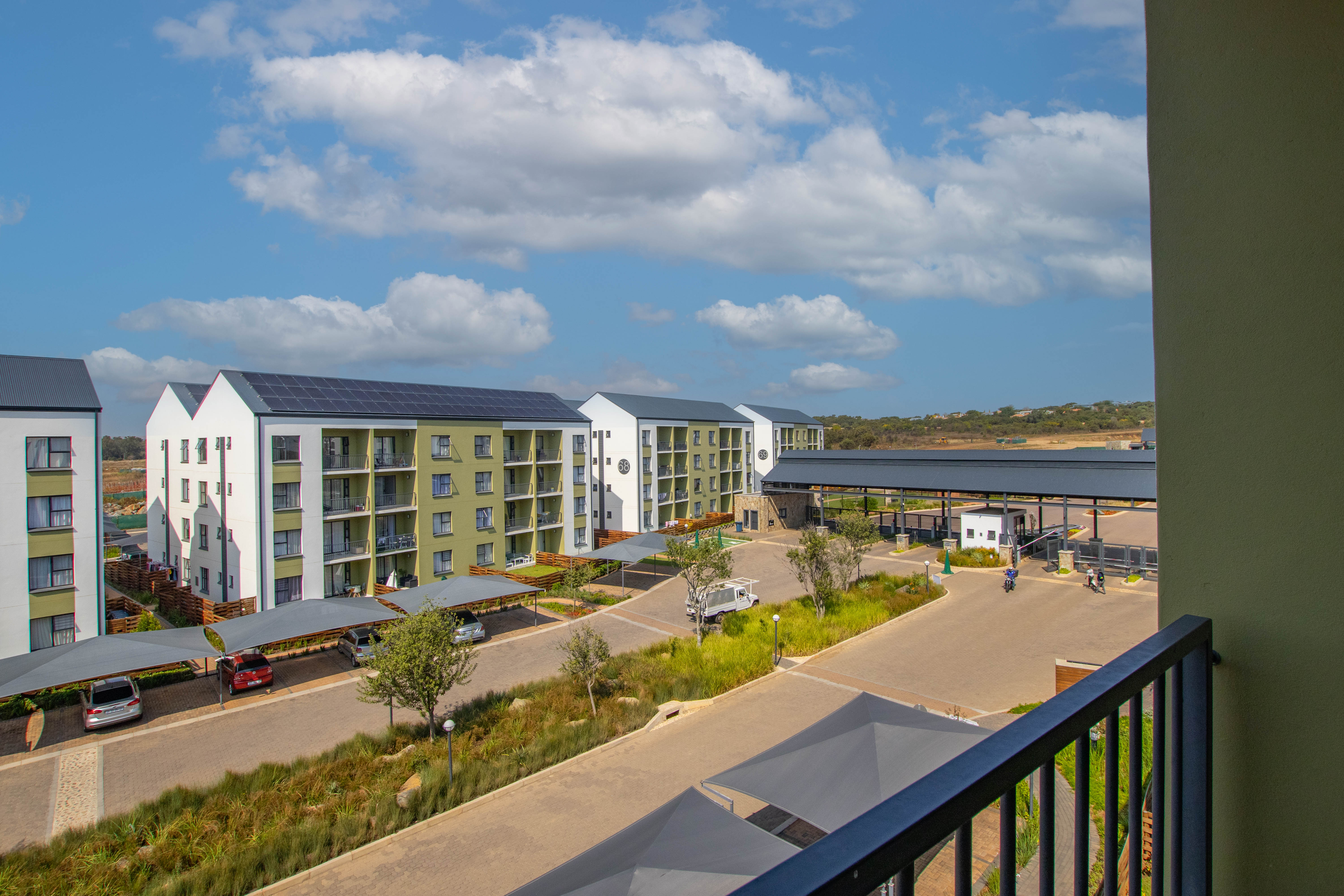 The apartment boasts a thoughtfully designed layout that maximizes space and functionality. The open-concept living area seamlessly connects the living room, dining area, and kitchen, creating an inviting and spacious atmosphere. The kitchen is equipped with high-end appliances, including a state-of-the-art refrigerator, oven, stove, and washing machine/dryer. Sleek countertops and modern cabinetry offer ample storage space, making it a pleasure to cook and entertain. Both bedrooms are designed with comfort and privacy in mind. The master bedroom features an en-suite bathroom for added convenience and luxury. Large windows in both bedrooms allow natural light to flood the rooms and offer picturesque views of the lush green surroundings. The two bathrooms are elegantly designed, with contemporary fixtures and finishes that exude style. The complex offers a wide range of communal spaces for residents to enjoy. Children can play safely on the jungle gyms, while fitness enthusiasts can make use of the fully equipped gym. There’s also a wellness spa where residents can relax and rejuvenate. The outdoor swimming pool, surrounded by lush greenery, provides a peaceful oasis for leisurely swims or social gatherings. For added convenience, the complex includes a laundromat, making laundry tasks easy and hassle-free. With its focus on sustainability, the complex utilizes solar energy to supplement its power supply, reducing the environmental impact and ensuring residents are not affected by load shedding. This green lifestyle is designed to enhance well-being and foster a sense of community. In summary, this modern 2-bedroom, 2-bathroom apartment offers a luxurious and eco-friendly living experience. With high-end appliances, a range of communal amenities, and a focus on sustainability and well-being, this apartment is the perfect place to call home.