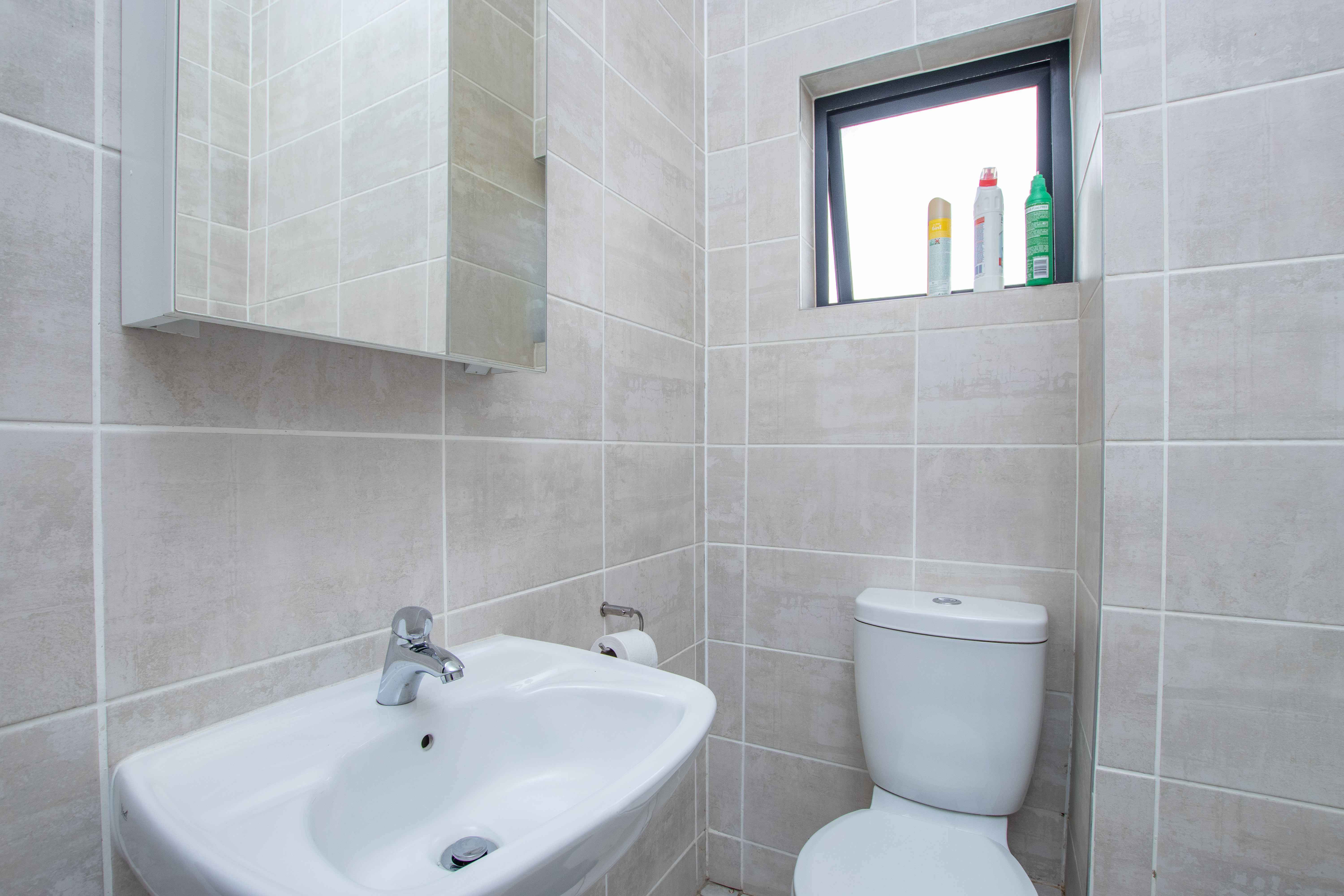 Both bedrooms are designed with comfort and privacy in mind. The master bedroom features an en-suite bathroom for added convenience and luxury. Large windows in both bedrooms allow natural light to flood the rooms and offer picturesque views of the lush green surroundings. The two bathrooms are elegantly designed, with contemporary fixtures and finishes that exude style.