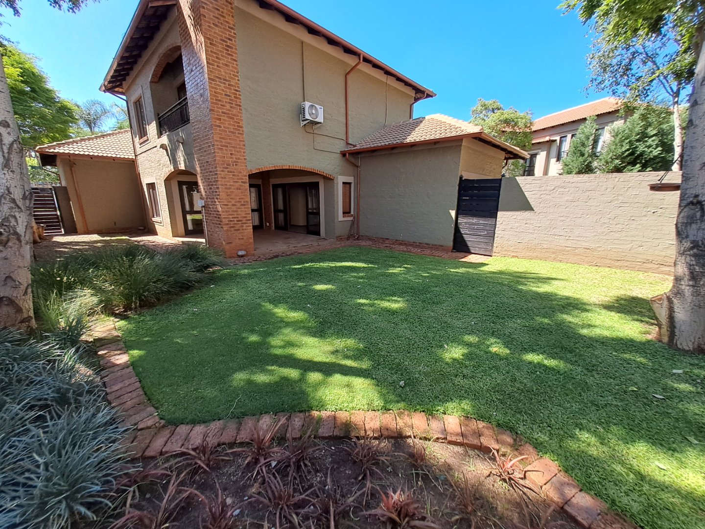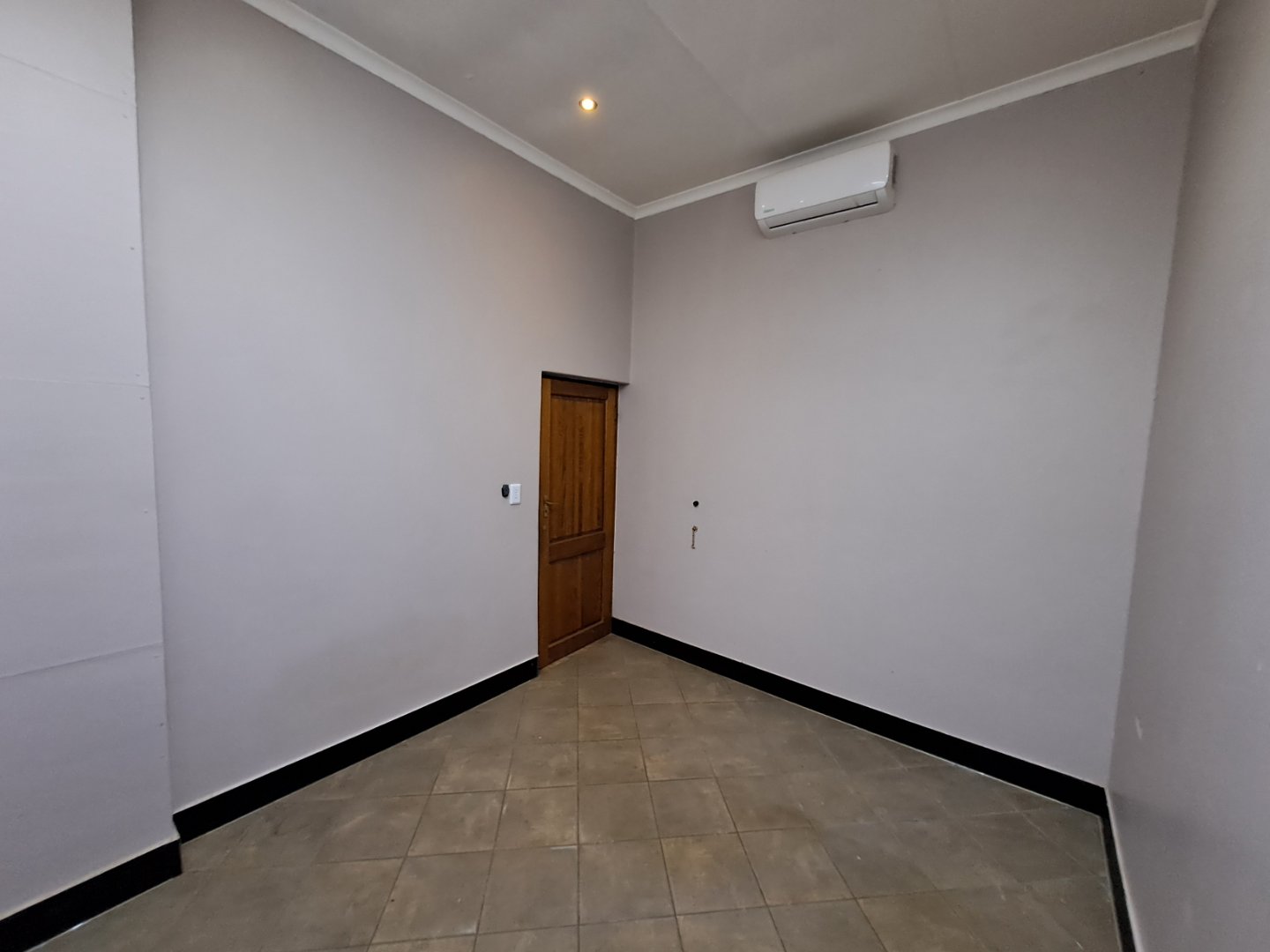 Upstairs, a cosy pyjama lounge provides a comfortable additional living space. Two generously sized bedrooms share a full bathroom, while the master suite offers a peaceful retreat with its own en-suite bathroom, ample cupboard space, a Juliet balcony, and access to the home’s fully installed air-conditioning system for year-round comfort.