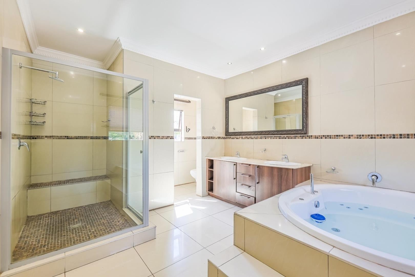 This grand 5-bedroom, 4.5-bathroom home redefines spacious, luxurious living. From the moment you step into the grand entryway, you're welcomed by a sense of elegance and scale. The main level features a guest bedroom with an en suite bathroom, a study for those who work from home, and a guest toilet for added convenience. Multiple living areas and lounges provide ample space for relaxation or entertaining, while the open-plan kitchen, designed with the entertainer in mind, flows effortlessly into the dining and living areas. The kitchen opens out to the outdoor patio, pool area, and a jacuzzi room, making this home perfect for hosting guests or enjoying serene moments of relaxation.