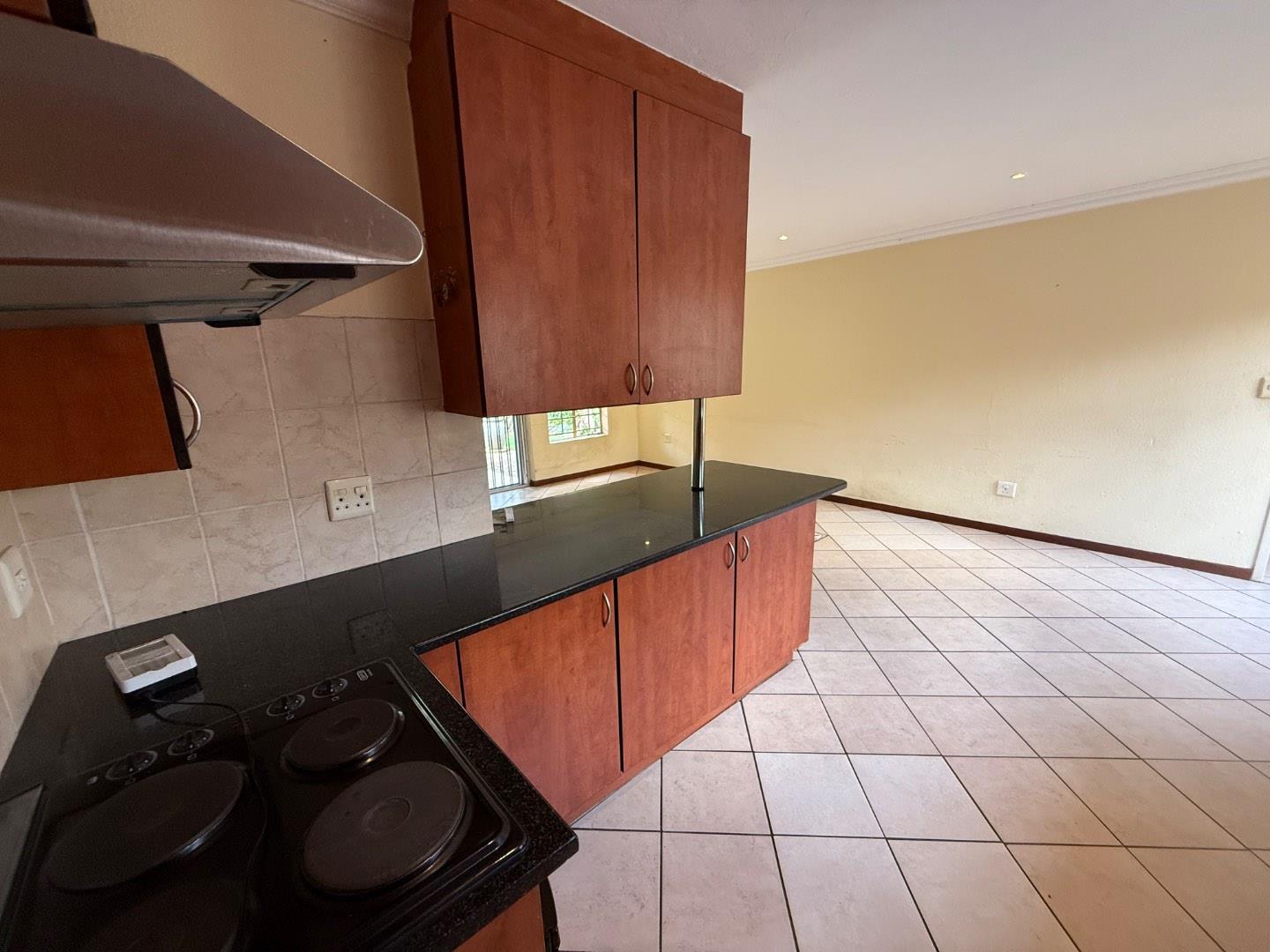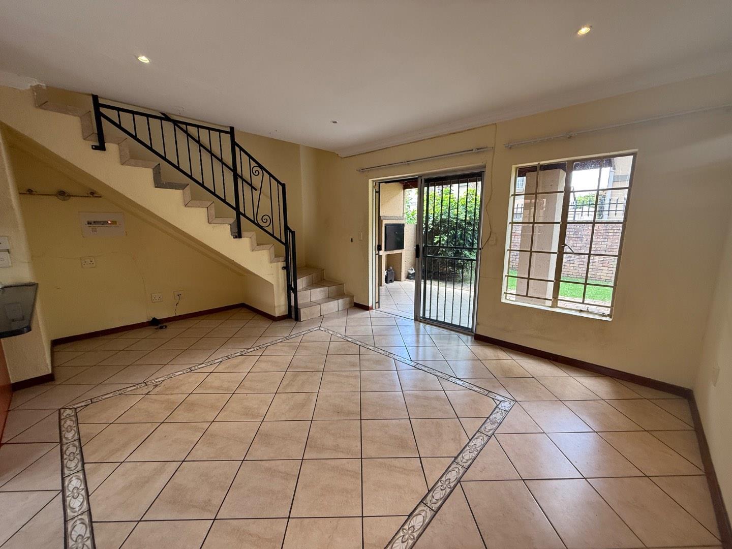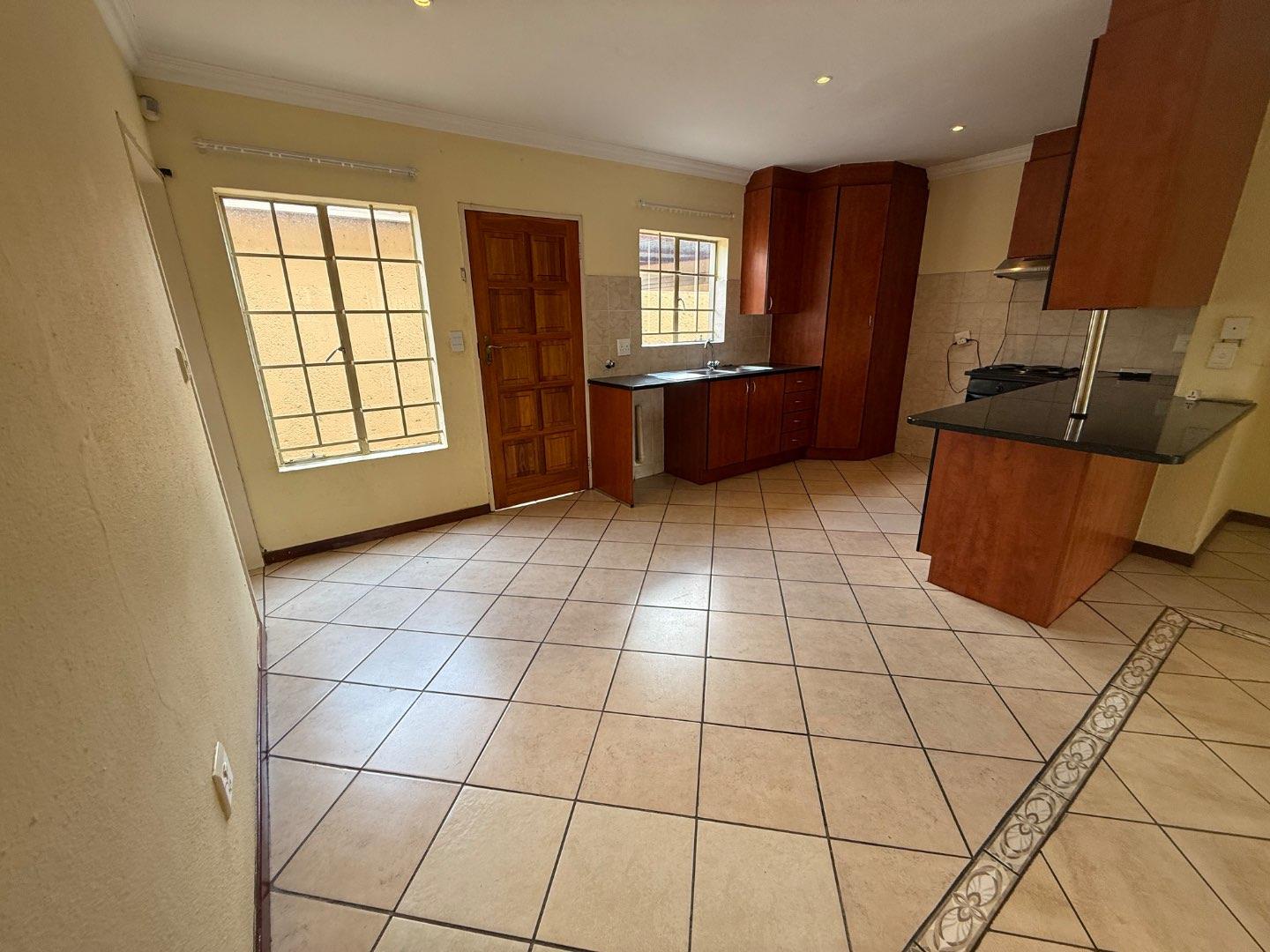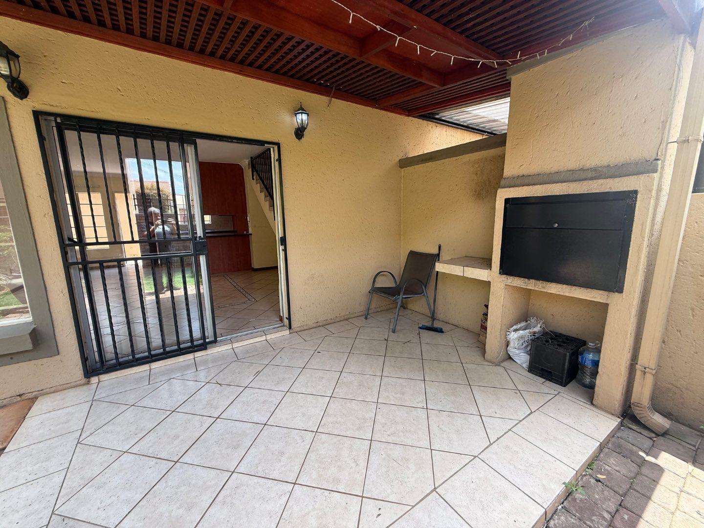 Upon entering, you are greeted by a welcoming dining area that flows effortlessly into the spacious living room. The living room opens directly onto an outdoor patio, complete with a built-in braai—perfect for entertaining, weekend braais, or simply enjoying the fresh air. The patio leads out to a neat, low-maintenance private garden. Only two small dogs will be allowed.