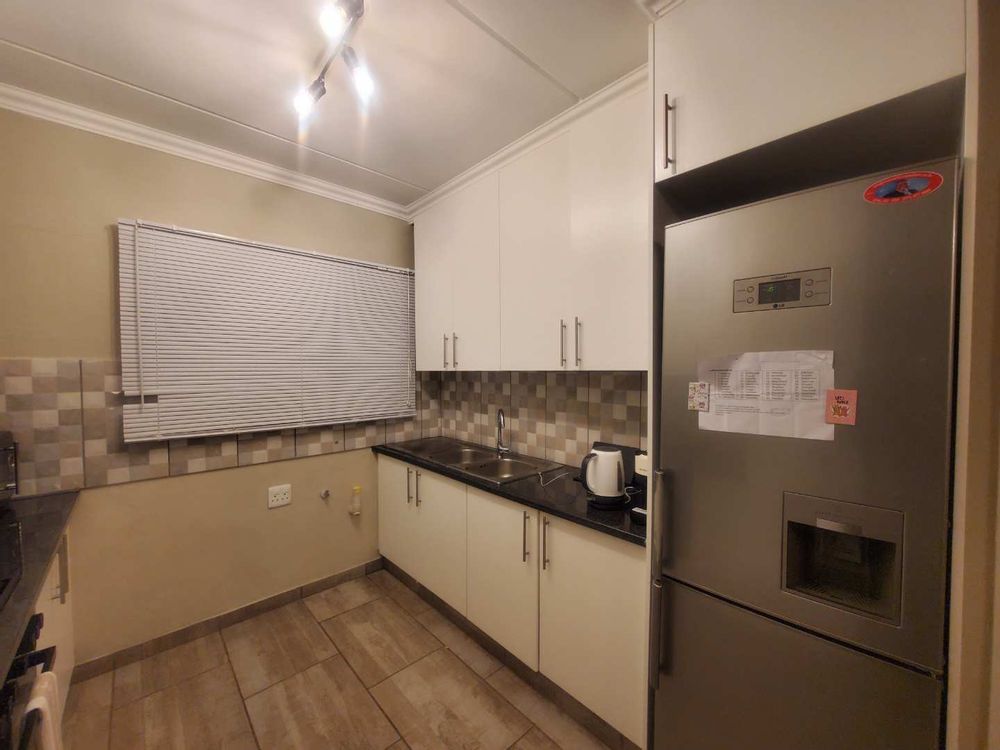 Modern kitchen with ample cupboard space and stylish fittings