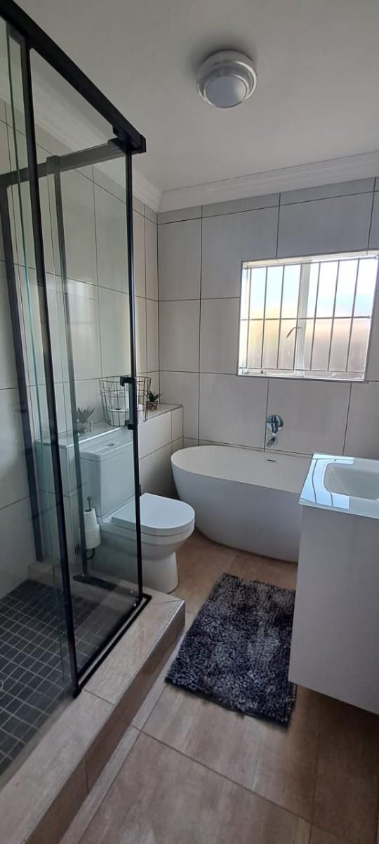 Move-In Ready: Modern fitted kitchen and a contemporary bathroom featuring both a tub and shower.