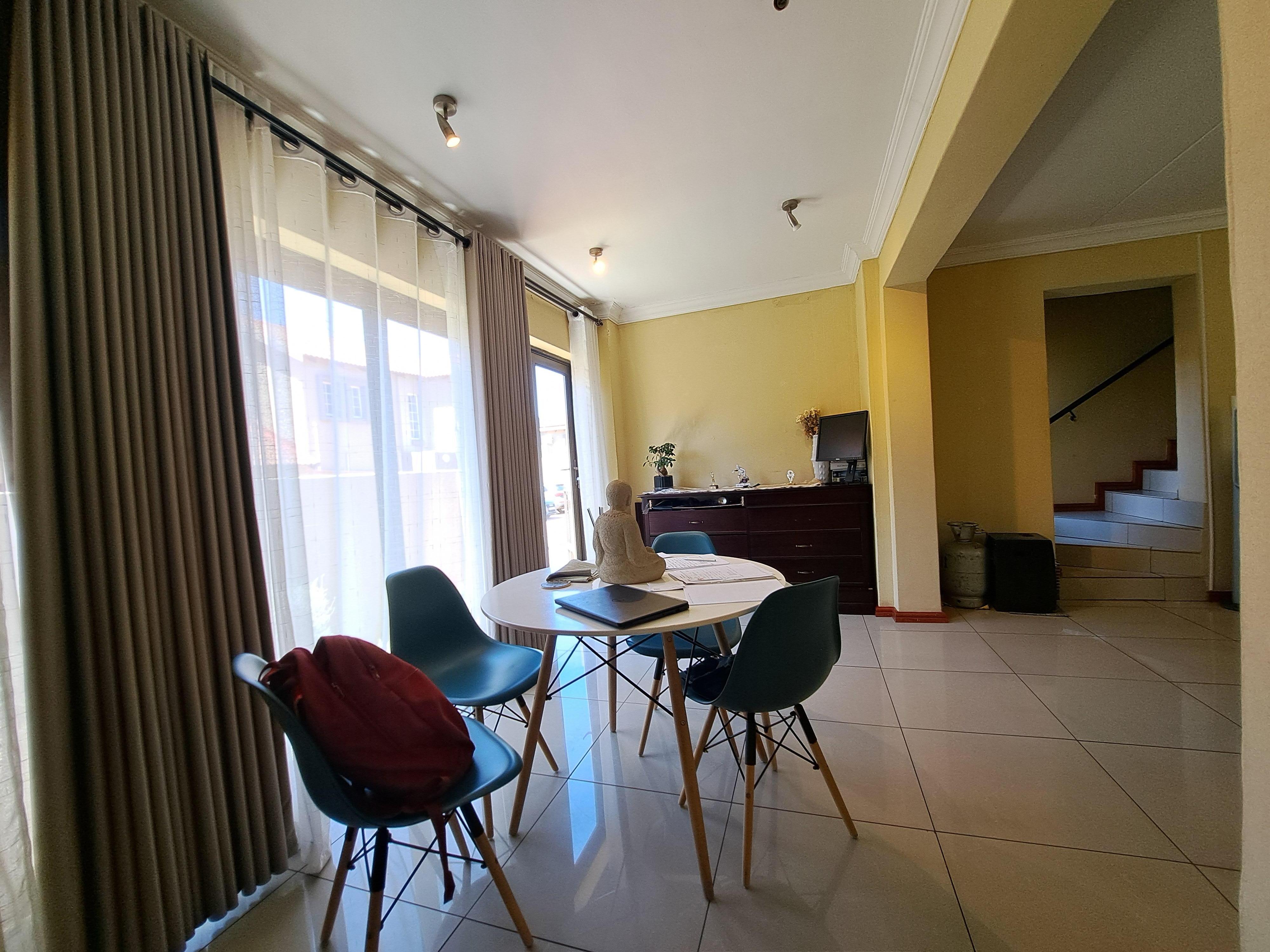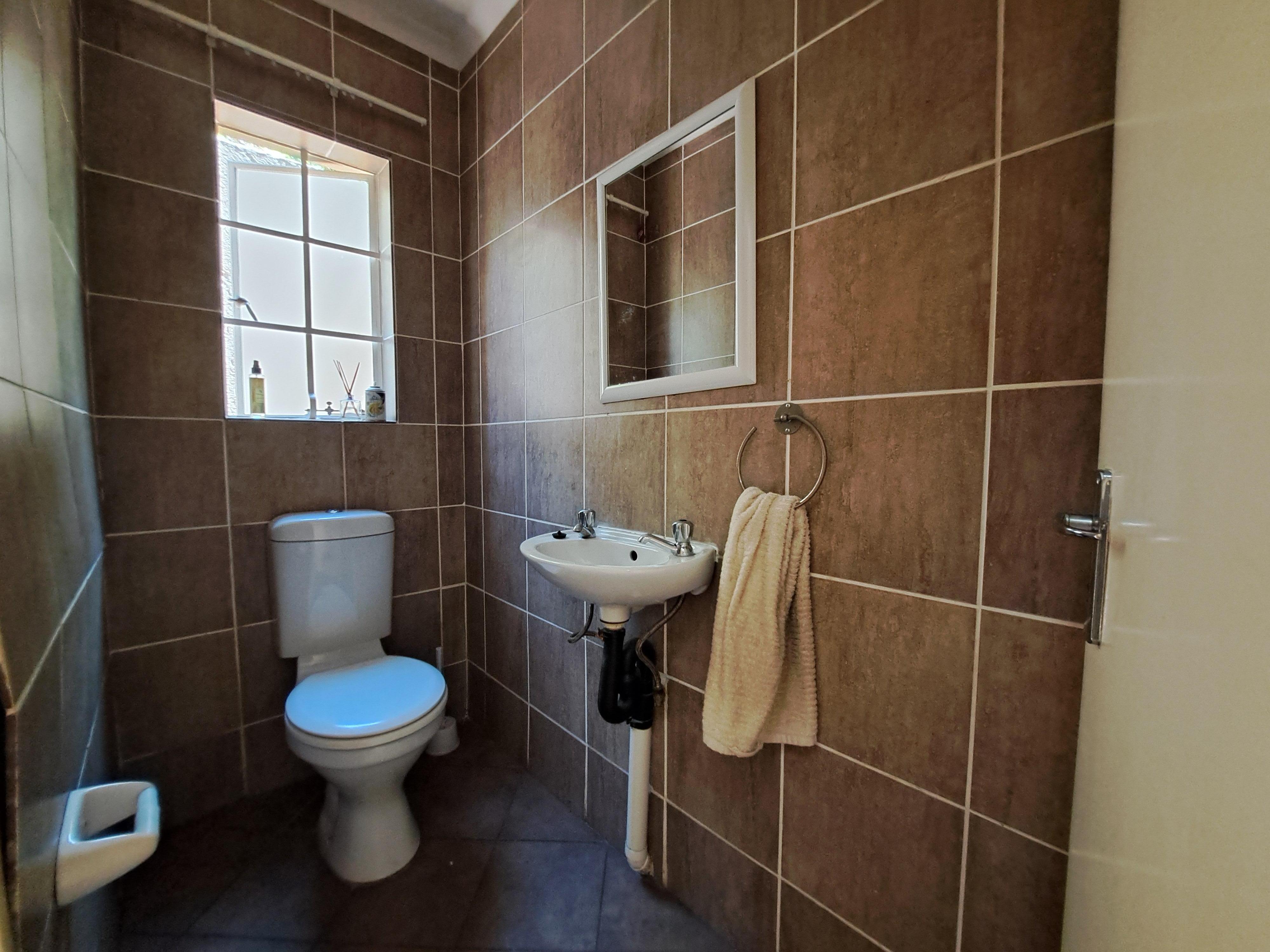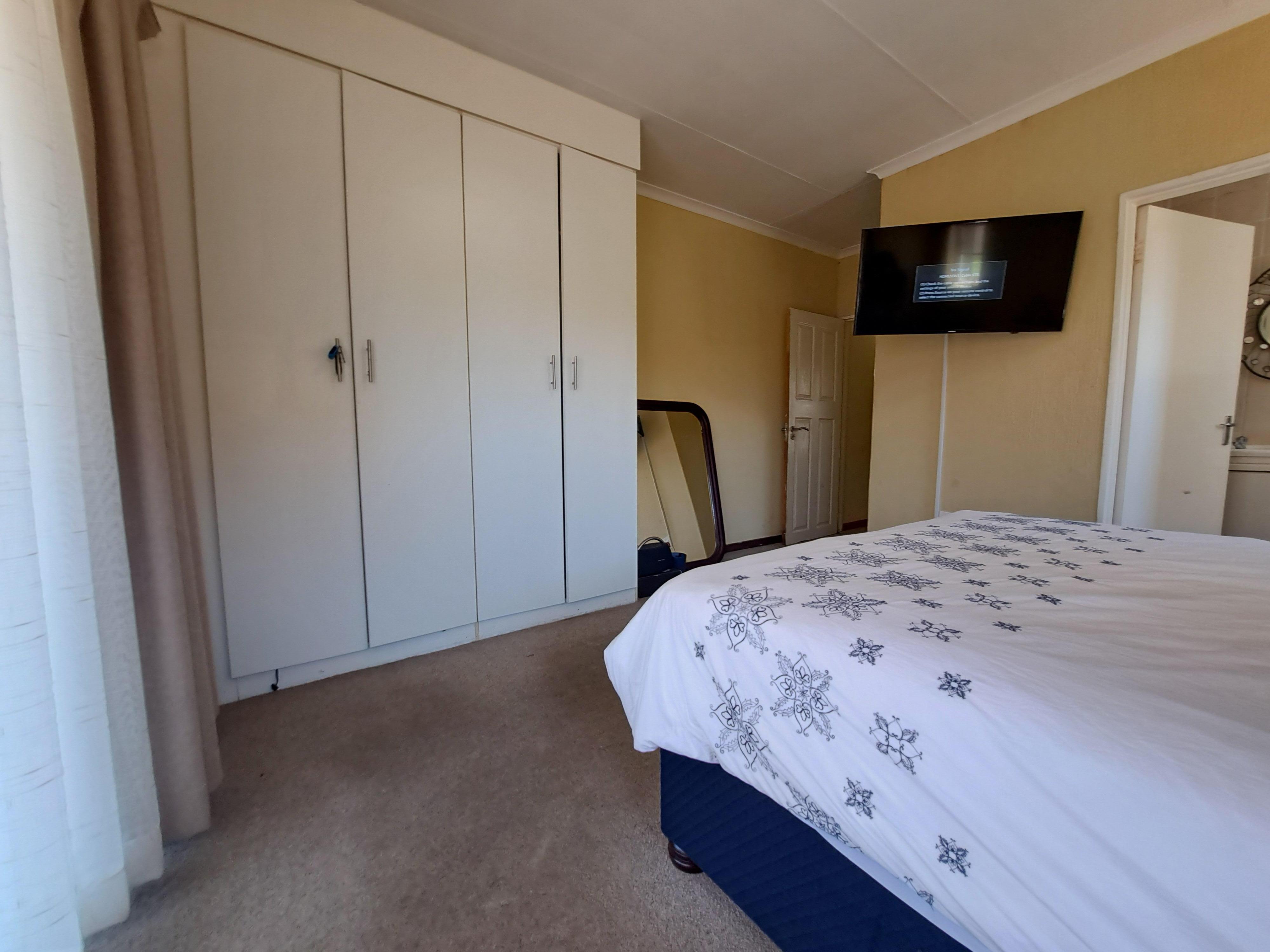 The backyard is perfectly sized for entertaining and includes a built-in braai for relaxed gatherings. A double garage enhances everyday convenience, offering built-in cupboards and countertops for extra storage.