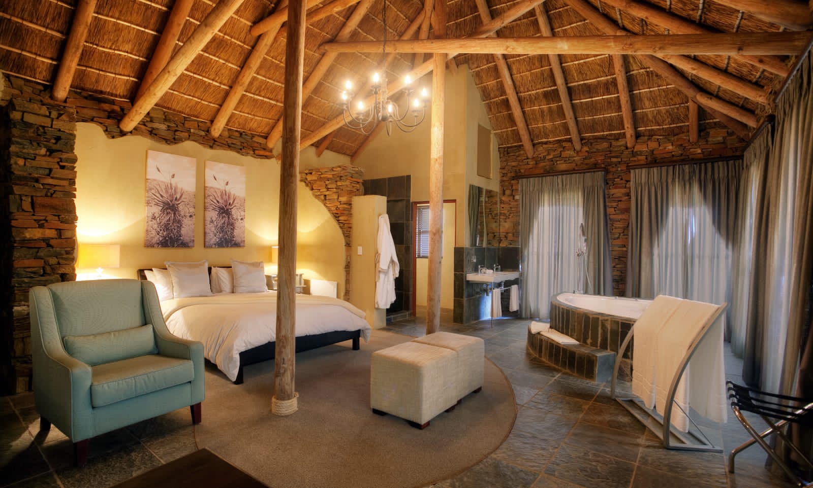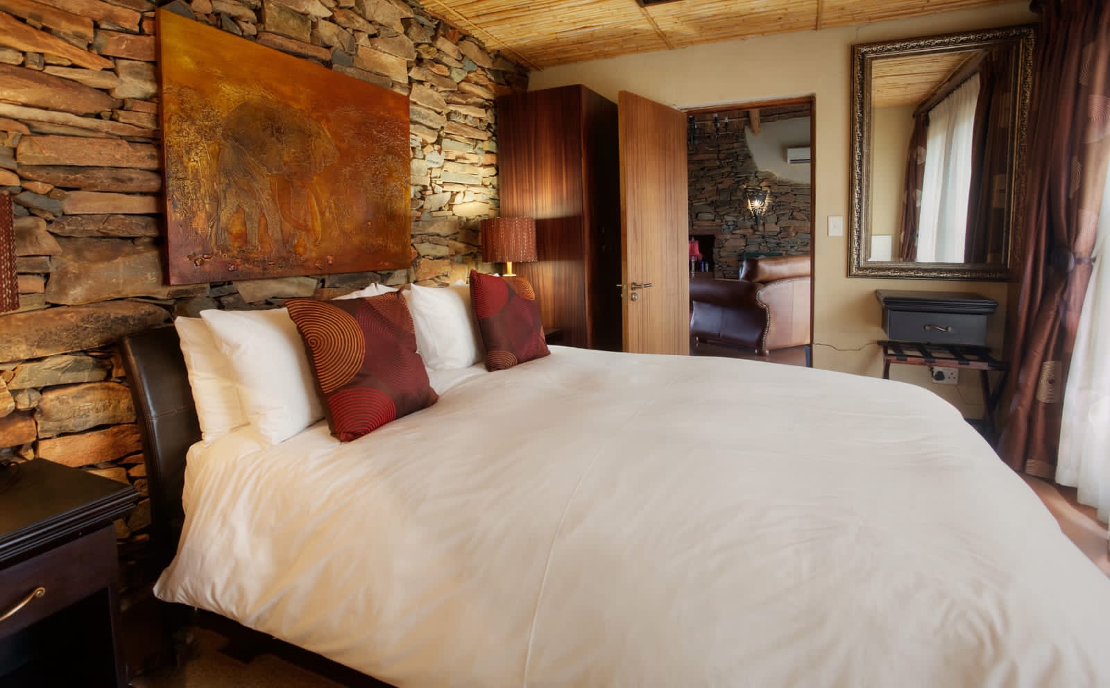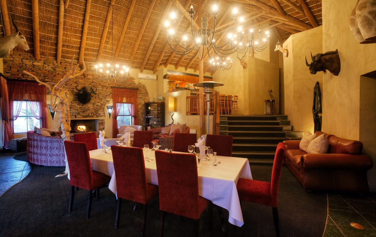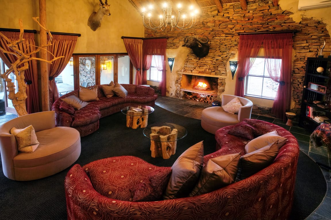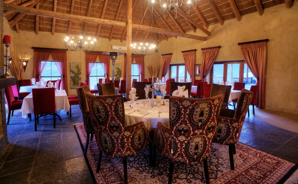 The lodge consists of 1600 hectares of land with 2000sqm under roof which includes 8 luxury chalets sleeping a total of 30 people of which one is a spa chalet and a 2 Bedroomed farmhouse. The huge luxury dining room can easily seat 50 people. Butchery and cold storage facilities. Plenty water tanks, bore holes, 2 dams and a spring to provide enough water. The reserve is fenced with 2.4m certified game fencing.