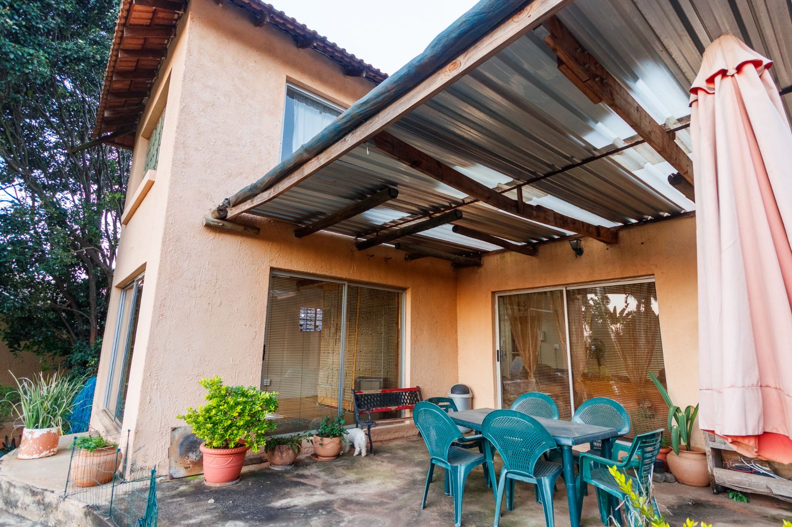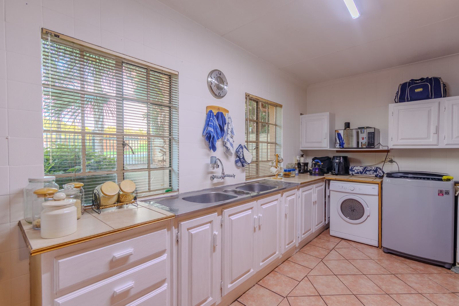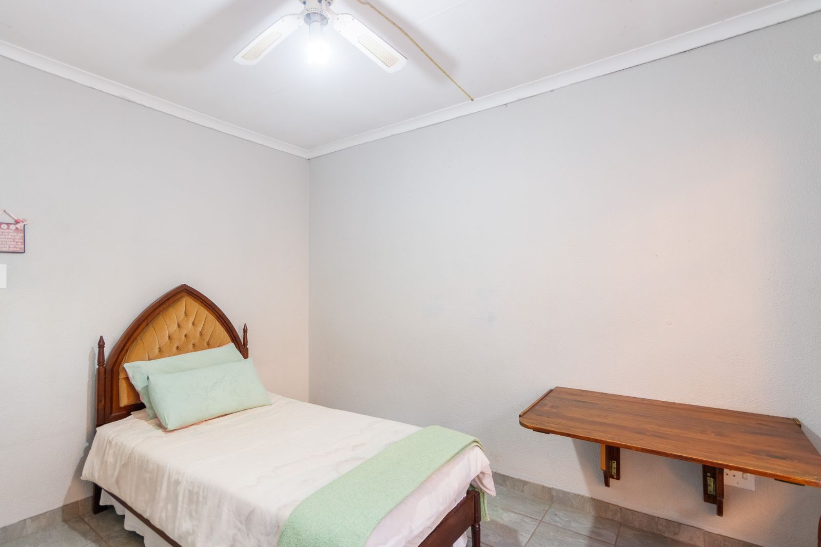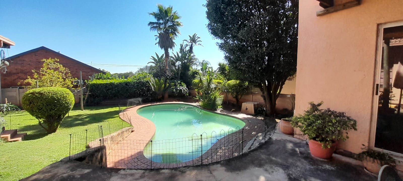 A storeroom and servants’ quarters provide practical space and accommodation. The double garage has been transformed into a music room, with approved plans for a garden cottage. It can easily be converted back into a garage if desired. Two covered parking bays, each with shade netting, and two separate entrance gates offer easy access and privacy.