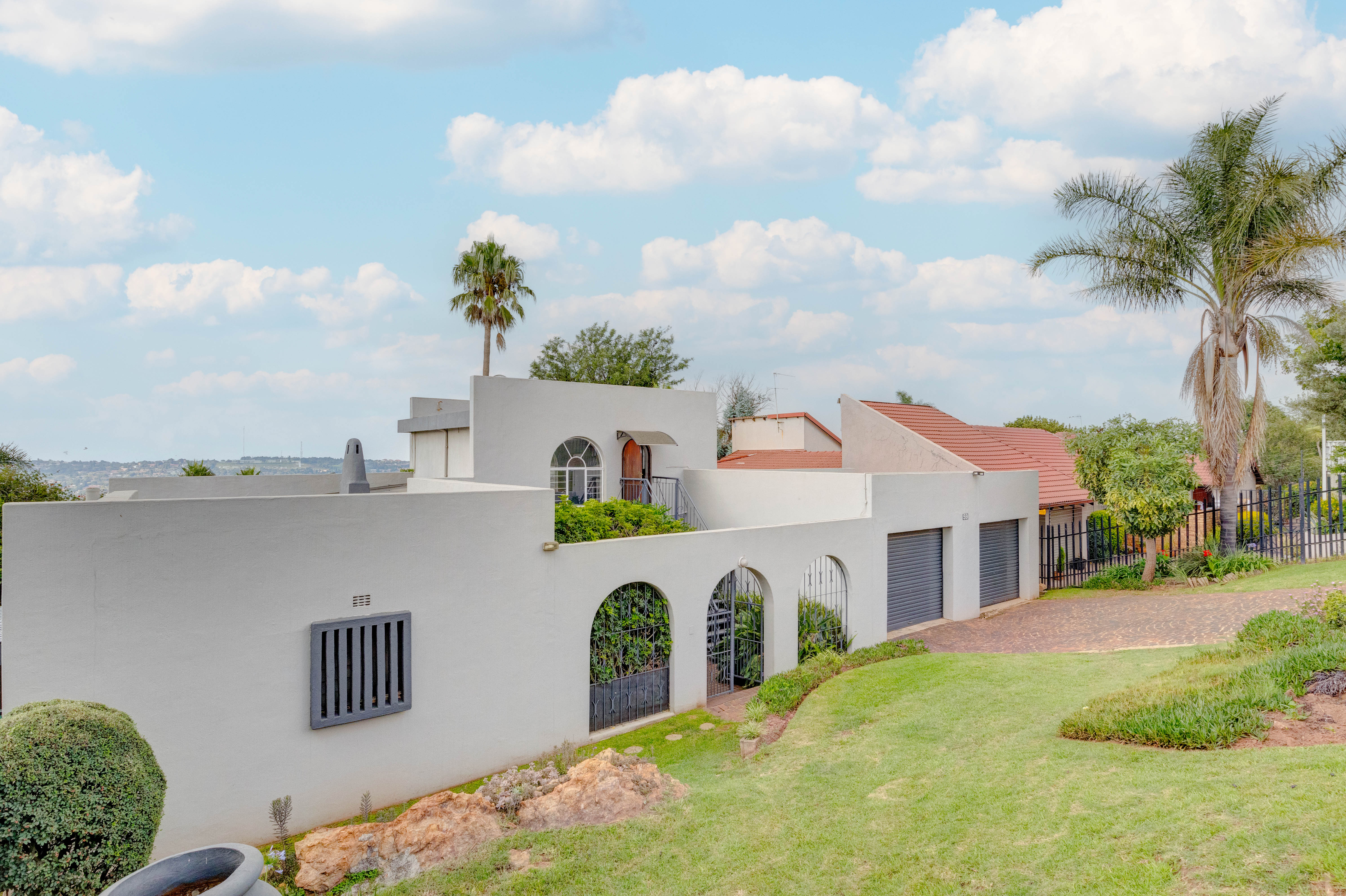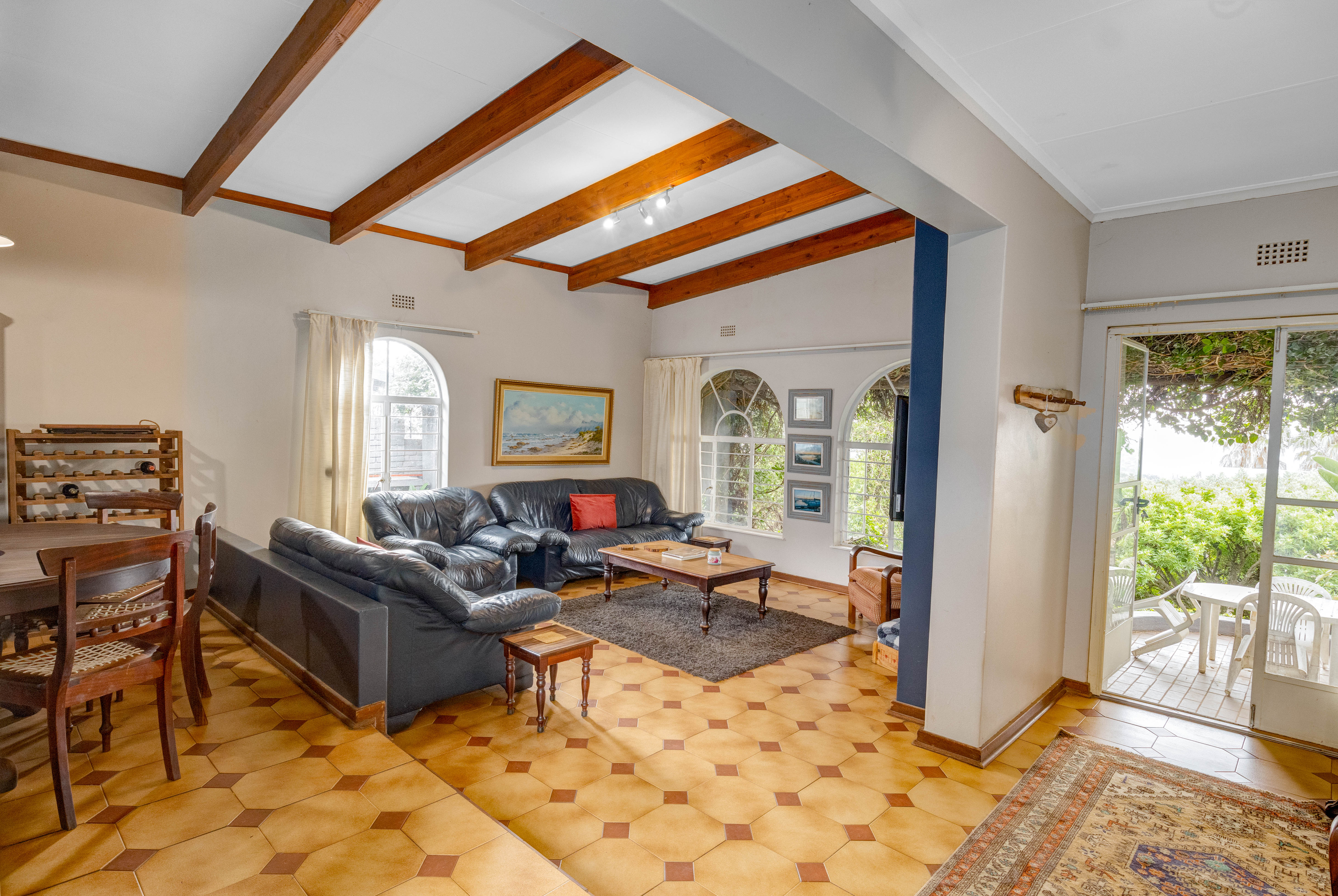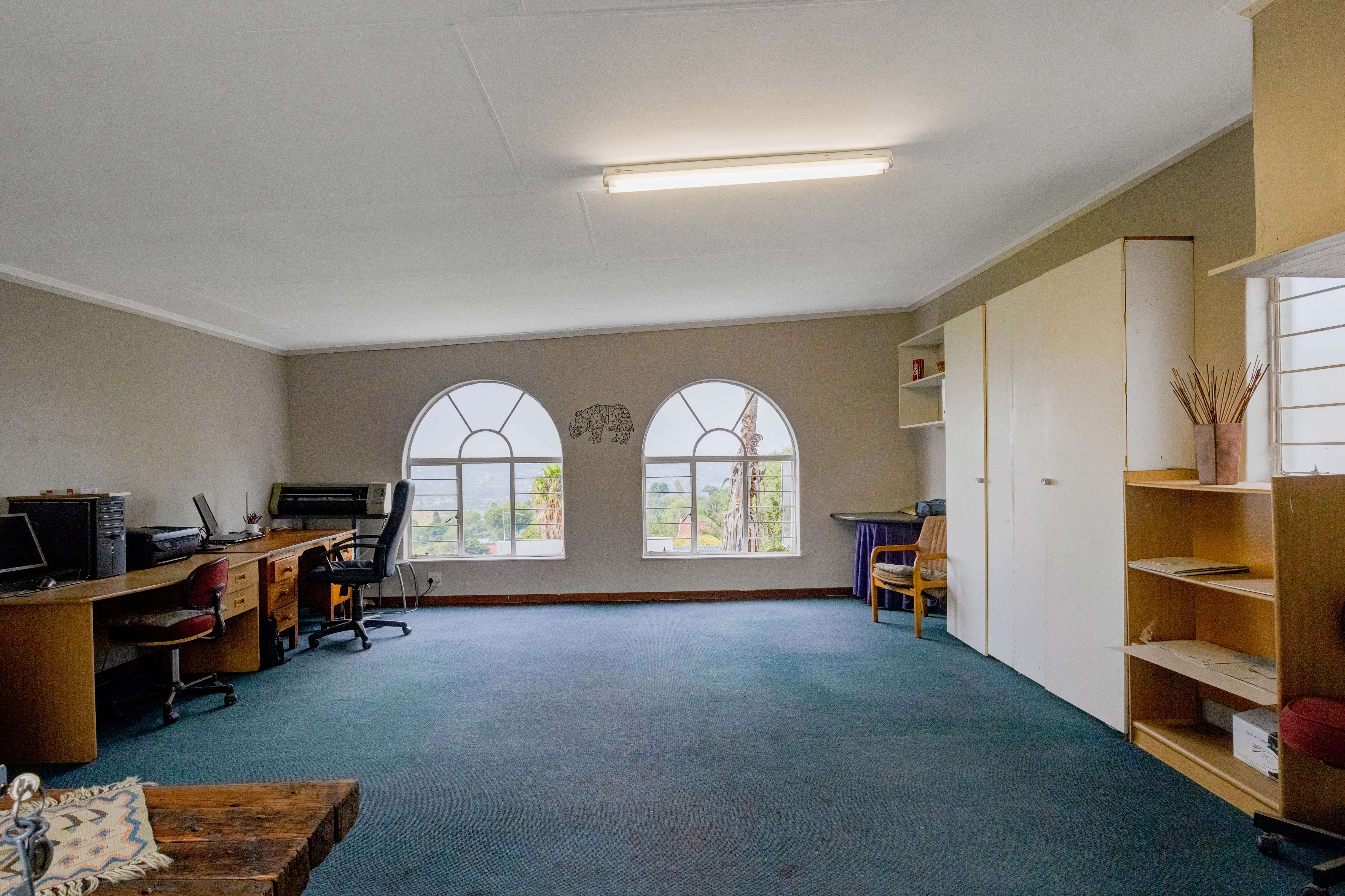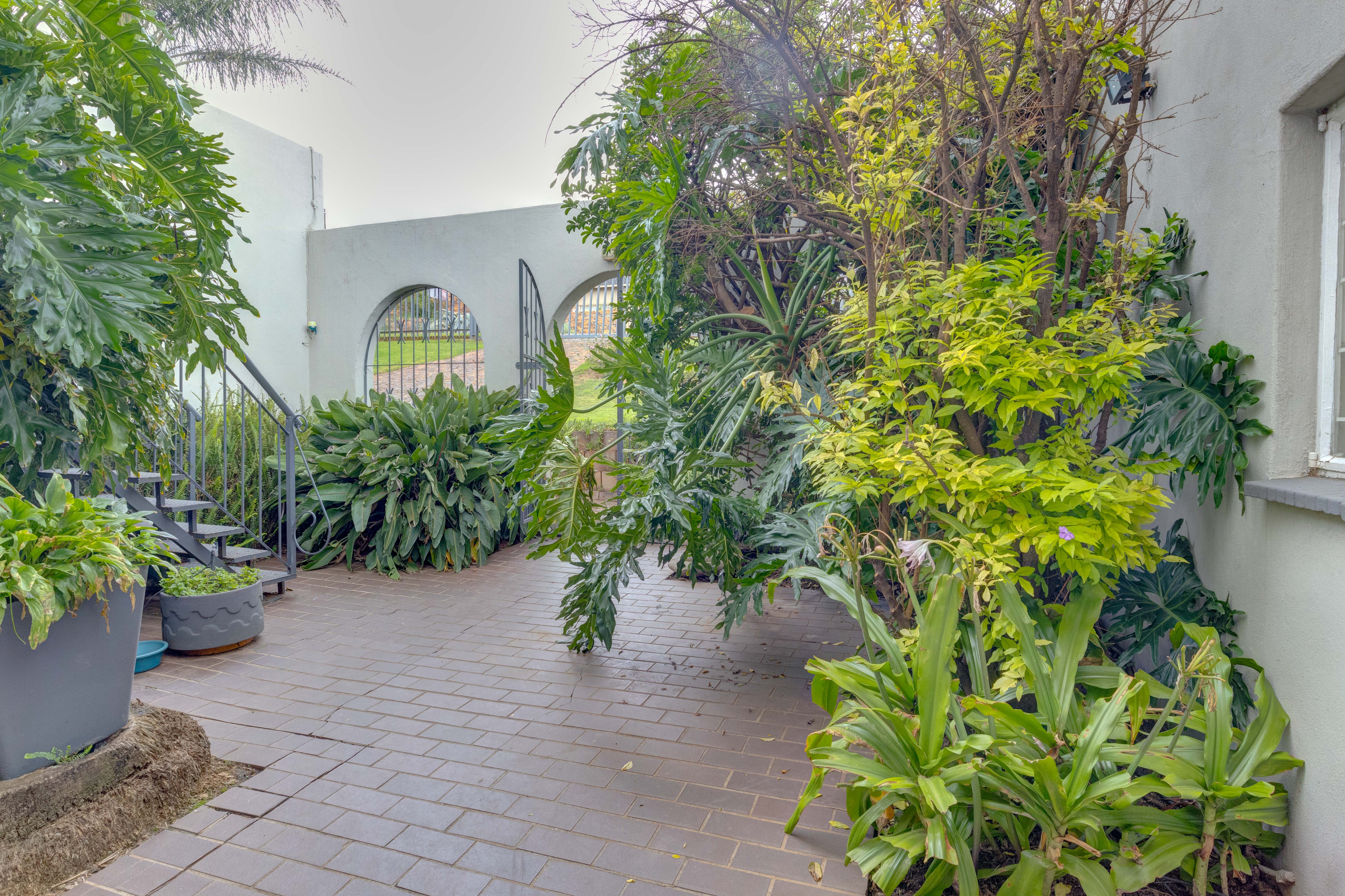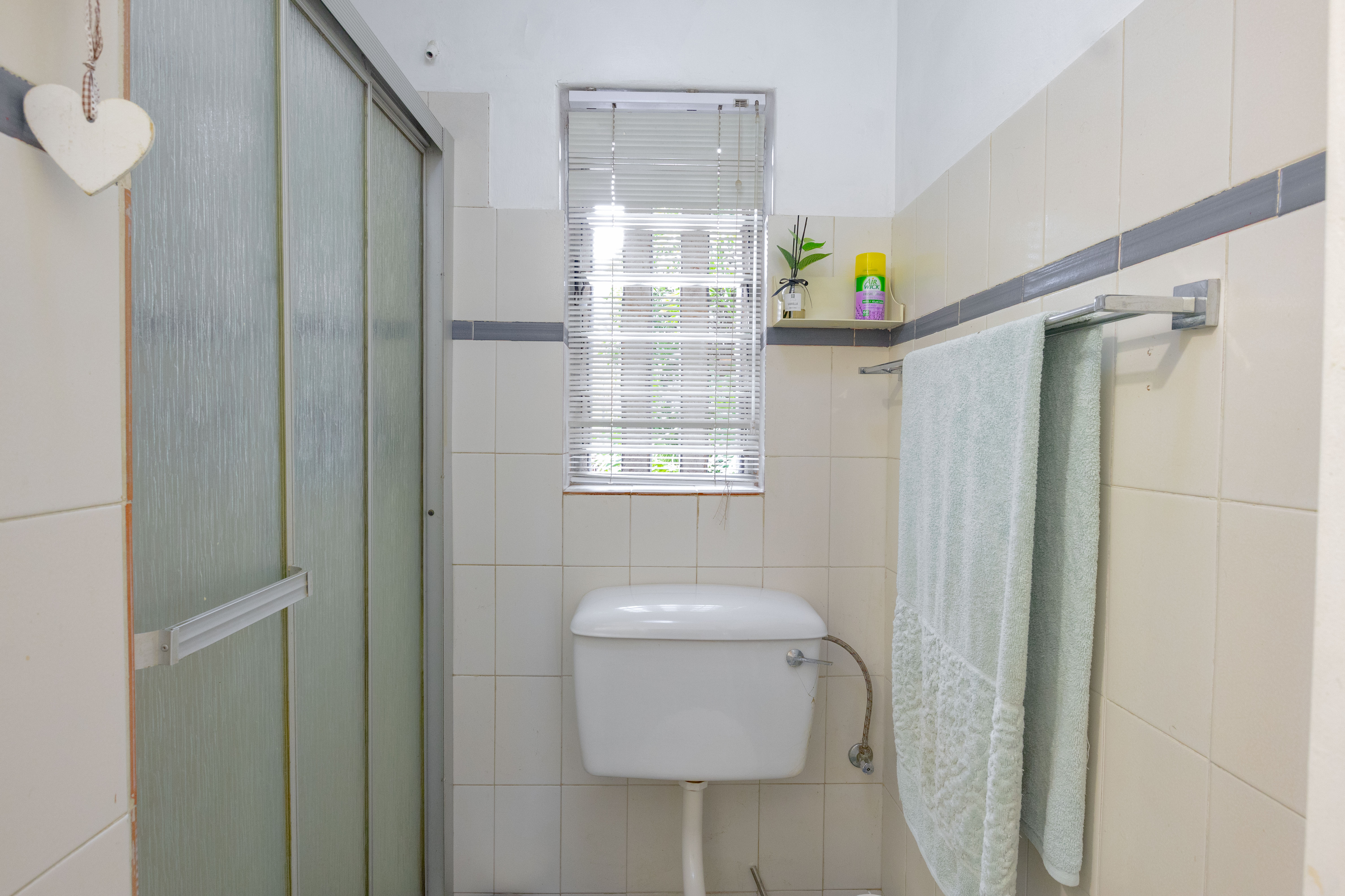 The main house features three spacious bedrooms. The main bedroom includes a sunroom that leads to the garden and connects to a generous study area. There are two bathrooms, a separate lounge and dining room, and a large kitchen with granite countertops and plenty of cupboard space. Additional highlights include a double garage, staff accommodation with bathroom, and a patio overlooking a beautifully tropical garden.