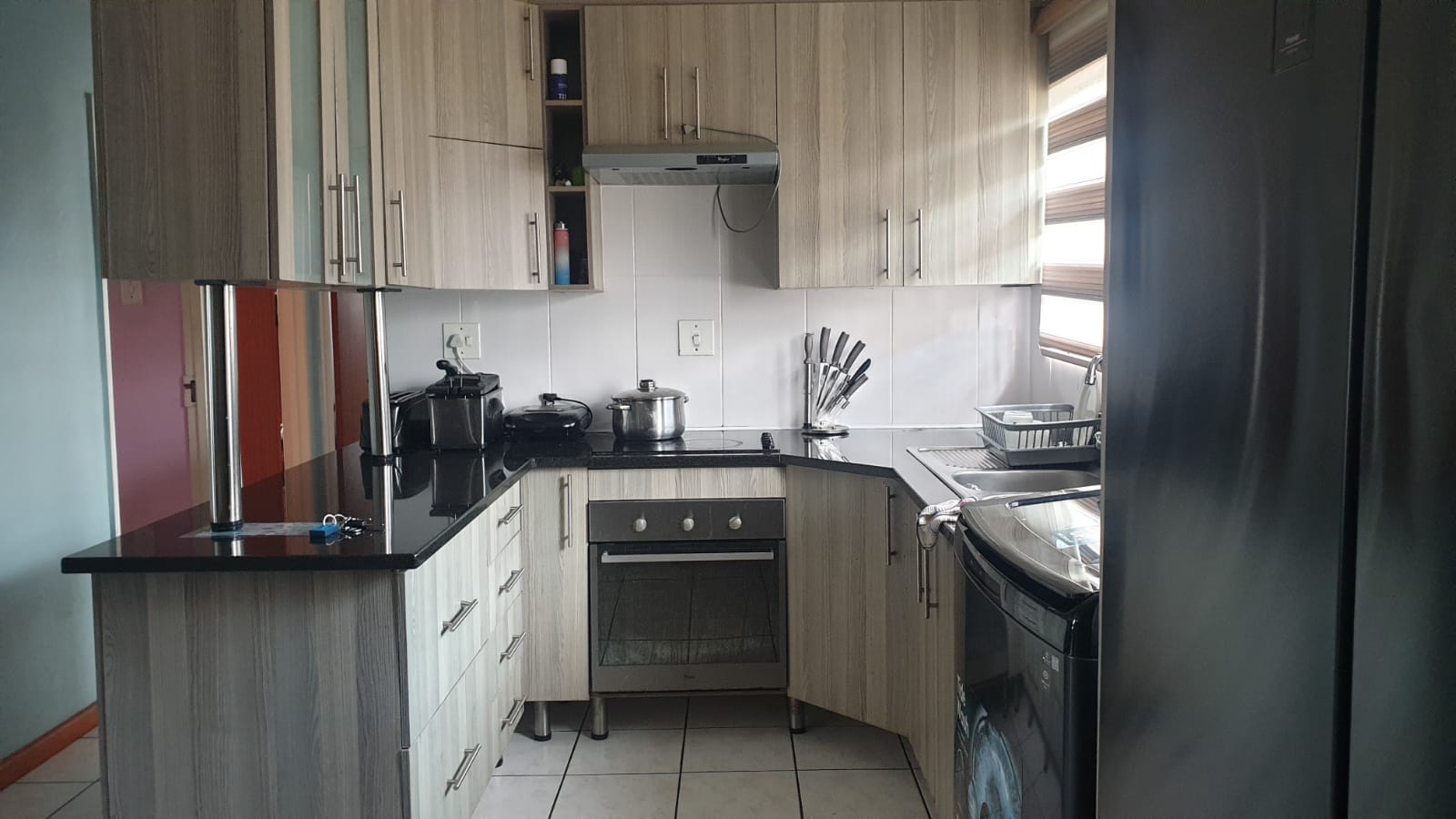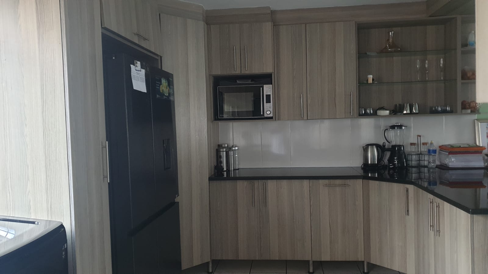 This family - friendly 3- bedroom home, located in Wilsonia, offers a spacious open-kitchen and lounge area. The kitchen feautures built-in cupboards, a stove with an oven and hob, and tiled floors.