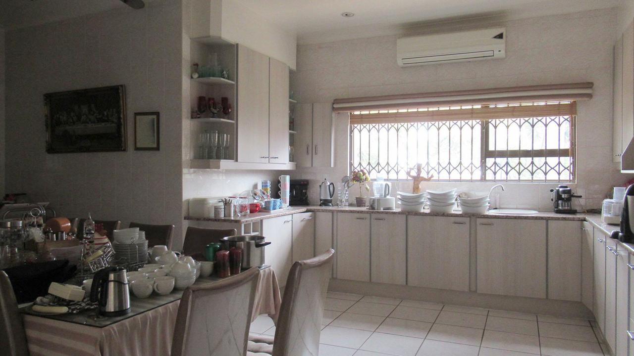 The ground floor boasts three generously sized bedrooms, each equipped with built-in cupboards and finished with neat tiling. There are 2.5 bathrooms, including a luxurious ensuite in the master bedroom. The large kitchen is fully fitted with modern appliances, making it a chef's dream. It seamlessly flows into an open living area, creating an inviting space for family gatherings and entertaining guests.