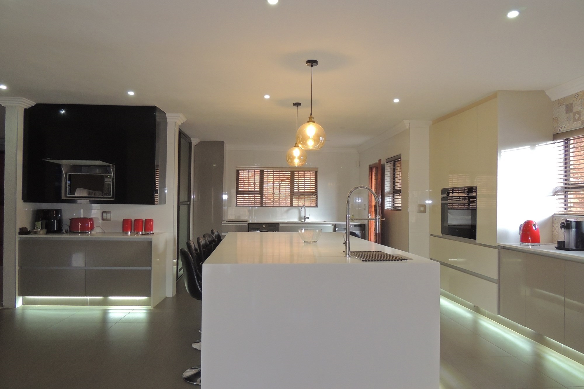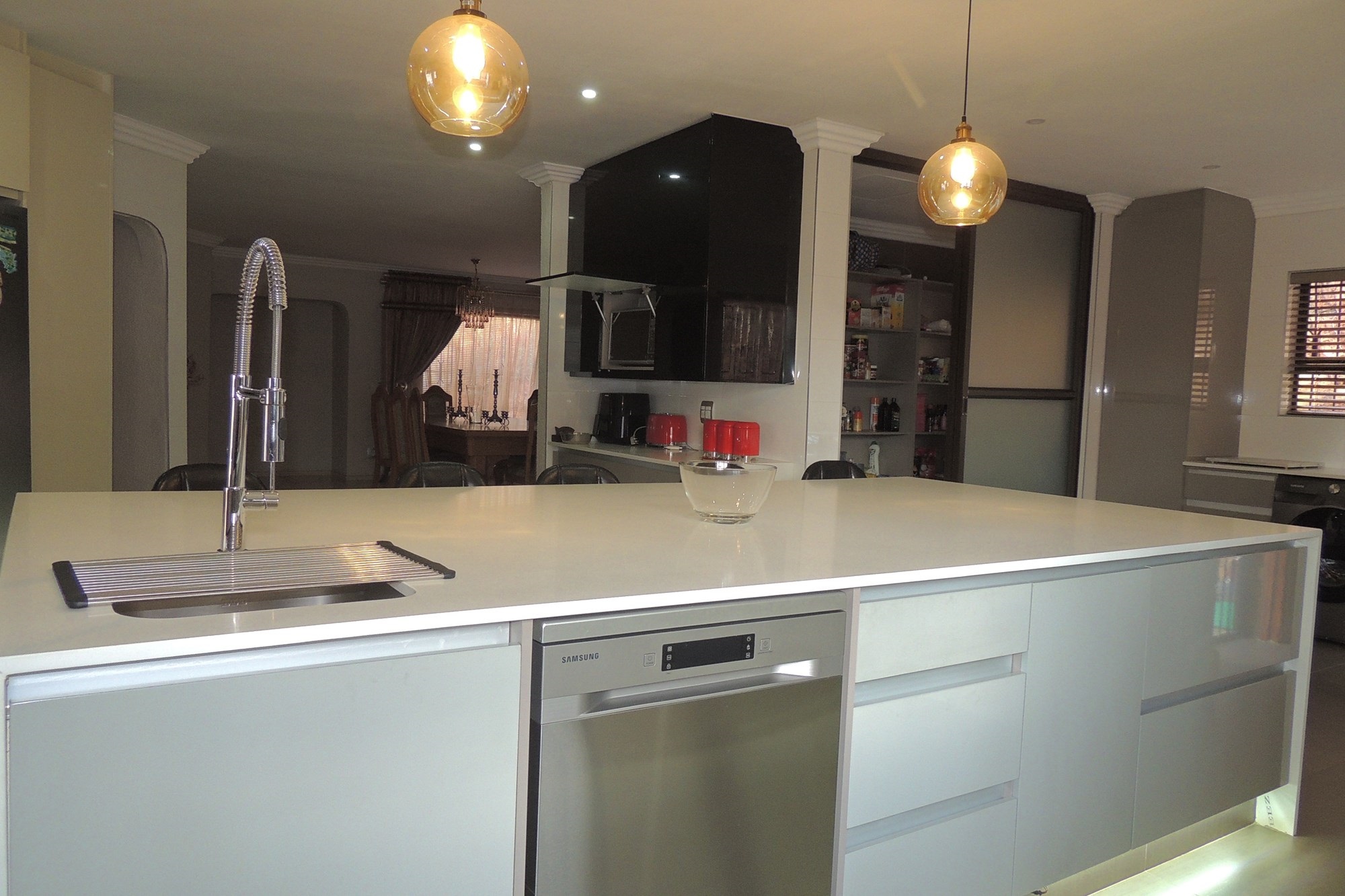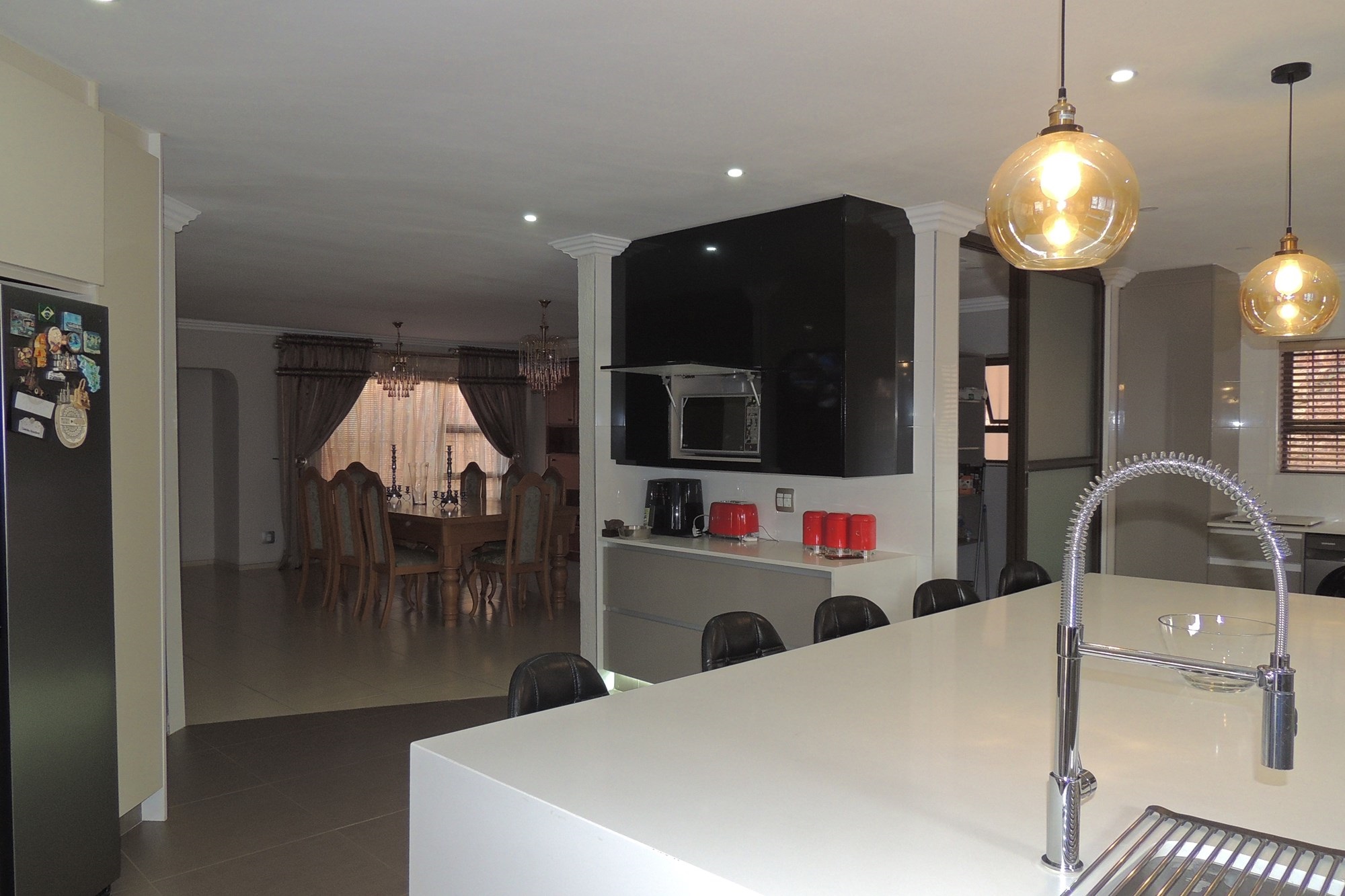 Upstairs Features:3 generously sized bedrooms with built-in cupboards, all opening onto a spacious balcony through large sliding doors – perfect for morning coffee or evening sunsets.The master suite is a showstopper, featuring a walk-in closet with mirrored doors and an ultra-modern ensuite bathroom boasting a freestanding bath, double shower, twin basins, and elegant tiled finishes.A sleek, open-plan designer kitchen fitted with blinds, a gas stove, and a walk-in pantry – the heart of the home for any passionate cook.Expansive living spaces including a formal lounge with sliding doors to the balcony, a large dining room, and a warm, inviting family room.A stylish guest toilet, linen cabinet, and a beautifully tiled modern family bathroom complete the upper level.