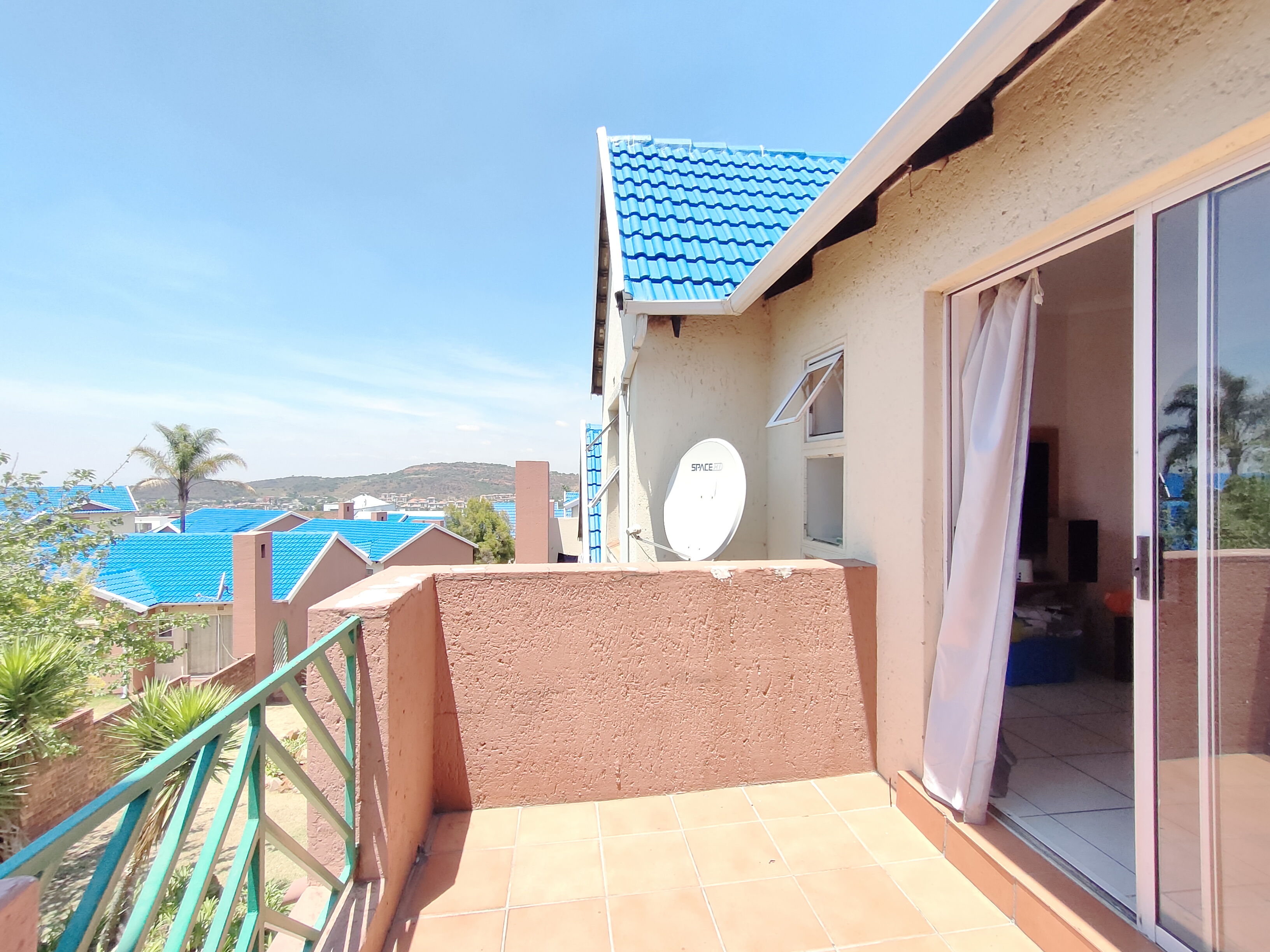 Step up into this well-placed top floor townhouse which welcomes you into the fully fitted kitchen and open plan lounge area flowing nicely onto the balcony (built-in braai) which has a beautiful view of Winchester Hills. The bathroom has a 2-in-1 bath-tub and both bedrooms (BIC) has carpet flooring. Another advantage is that the carport is right in front of the unit with ample visitors parking, furthermore... it is not far from the sparkling pool and lapa area which is situated on the peak of the complex. This property is well placed upstairs, in its sun-facing position which allows for natural sunlight to shine in throughout the day and this sets the tone for a warm & inviting place to call home...