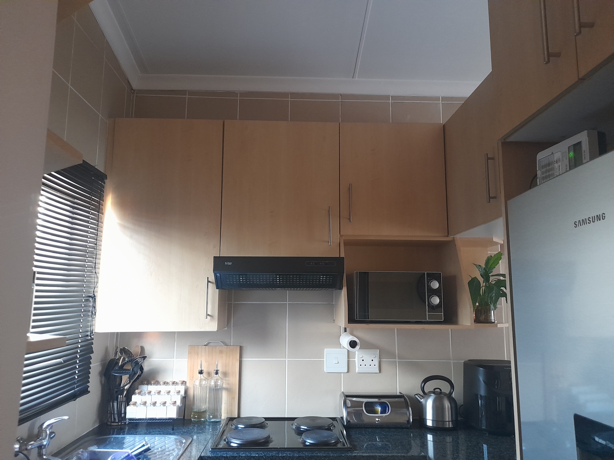 Modern top floor Open plan Unit with views over Winchester Hills. North Facing Large lounge with good size balcony. Kitchen offers ample cupboards with granite tops and breakfast bar. . Large built in linen cupboard. 2 Double size bedrooms with built in cupboards, main makeup station. 1 Full bathroom. Tiles throughout the unit. Ideal for young professional looking for style and low-maintenance living. Set on the hills of Winchester Hills, close to transport route and N12 Highway. Close to shopping centres and other amenities. Auto gate to Secure Basement parking with 24 hour CCTV cameras with control operator. 1 Basement Parking bay allocated to the unit and a open parking bay within the complex. You are allowed to have a solar system installed.