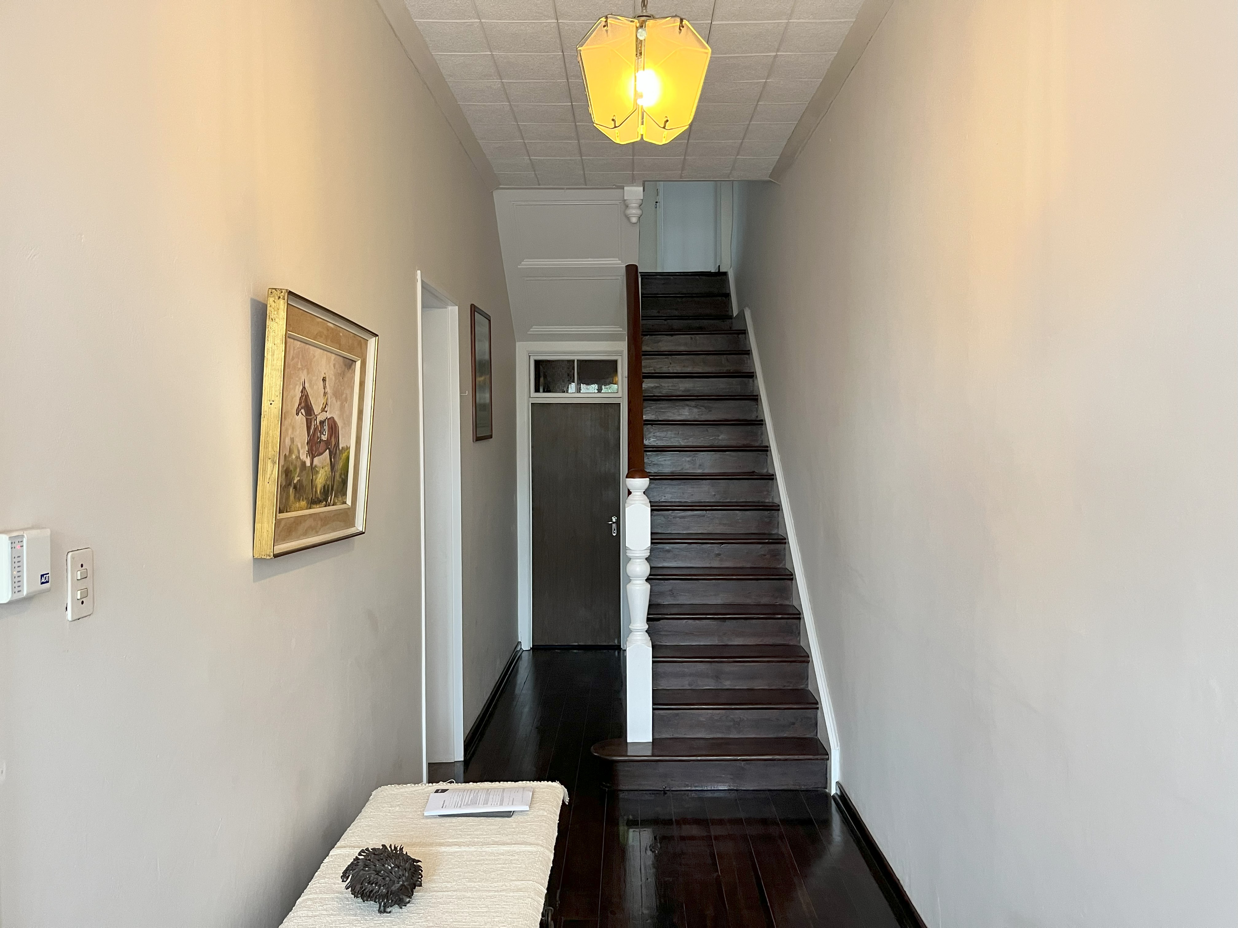 This charming Victorian-era double-storey semi-detached home blends period character with modern comfort. The ground floor features a room to the left of the entrance as one enters, which can serve as the reception area, currently used as an office, fitted with air-conditioning. A removable partition allows it to connect seamlessly to the adjoining lounge or boardroom with ceiling fan.Well maintained, Stained Orein Pine floors throughout. Storage areas under the stairs and an adjacent room.