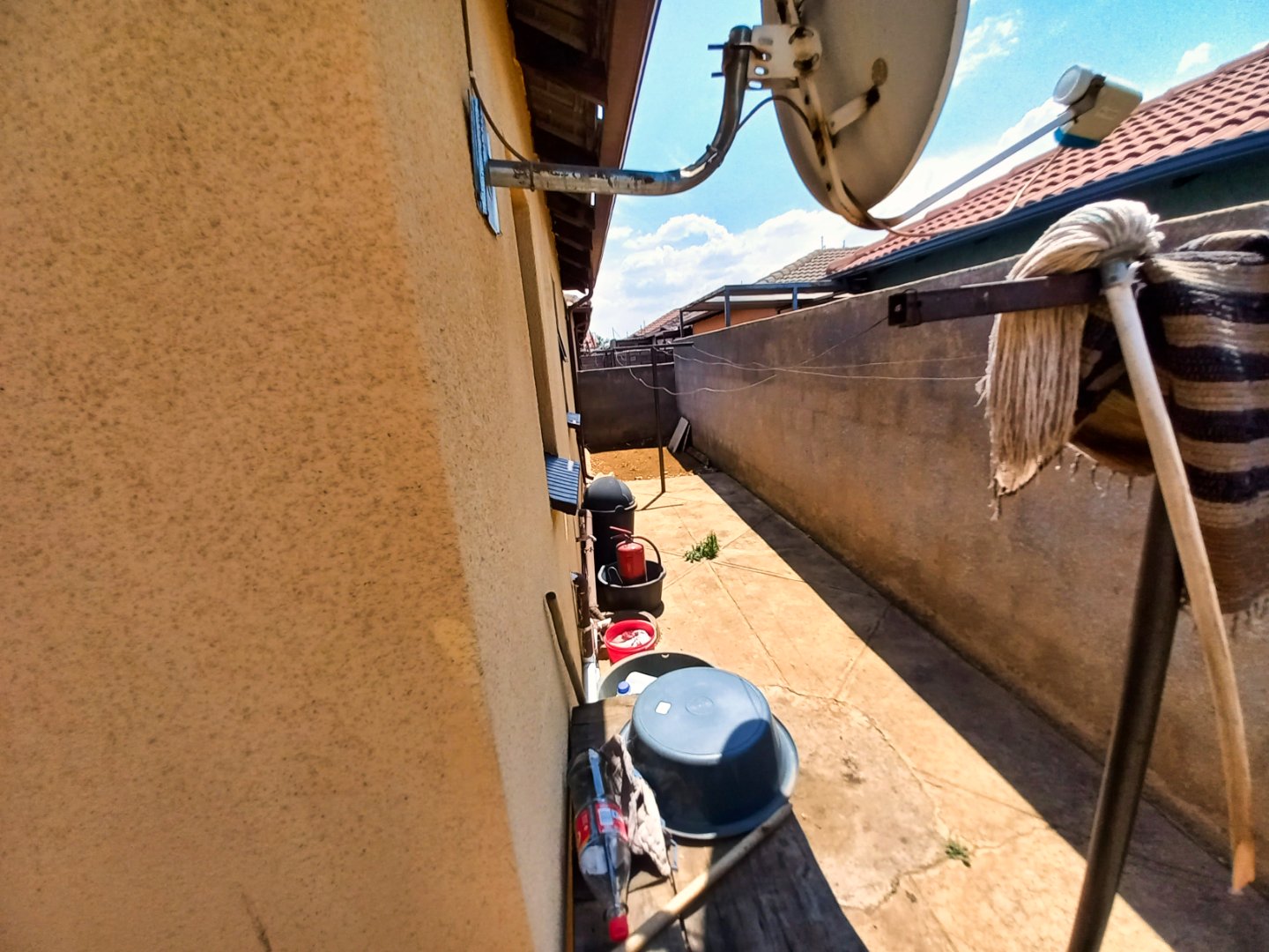 Security and durability are prioritized throughout. The entire house boasts tiled flooring, making cleaning a breeze, and features aluminum windows which are both modern and low-maintenance. All windows and the back door are fitted with burglar bars and safety gates for enhanced protection.
