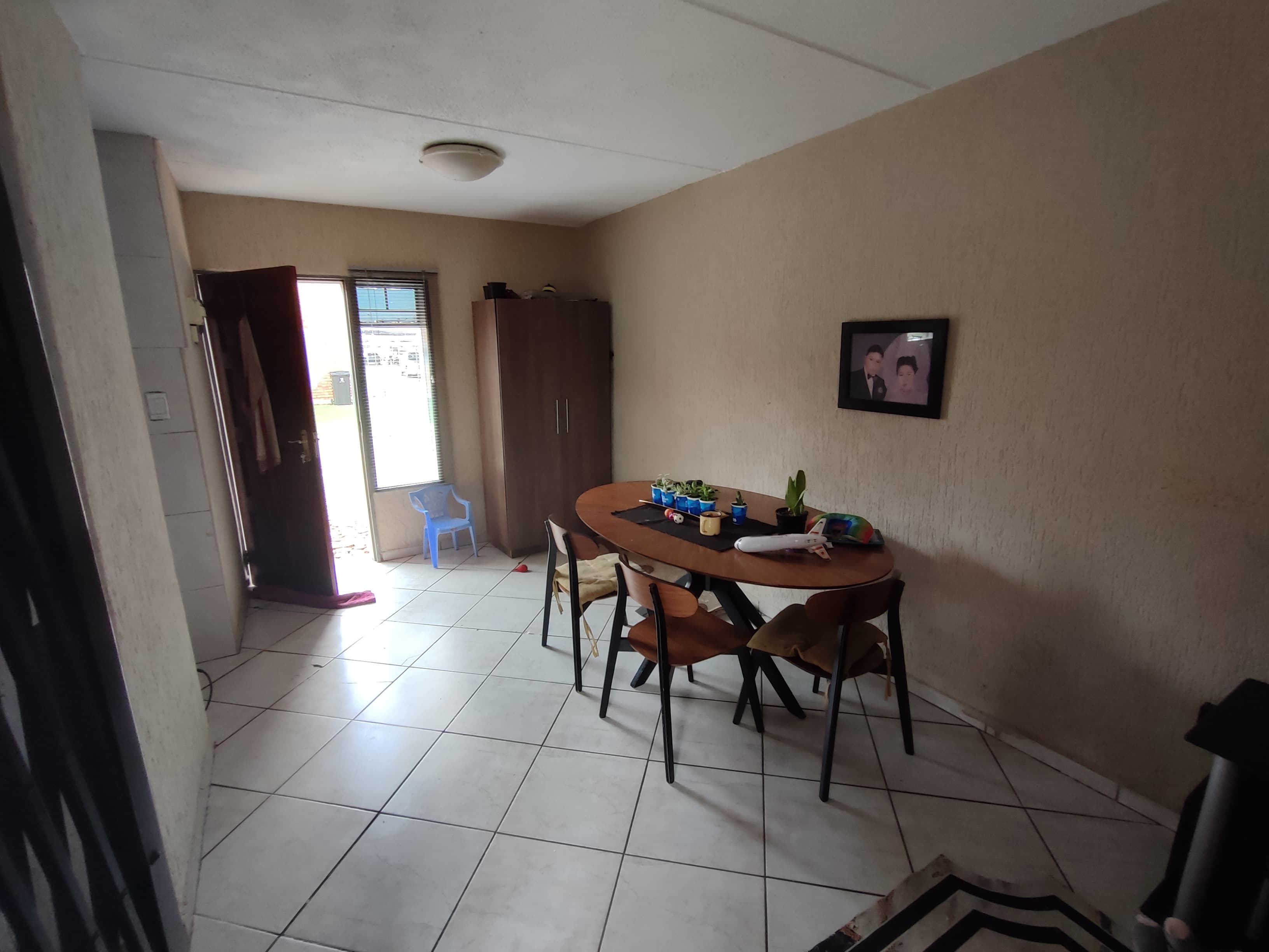 The upper level of the home serves as a peaceful retreat, featuring two spacious bedrooms that are both fitted with ample wardrobe space. For your vehicles, the property includes a dedicated carport large enough to accommodate two cars. Security is a top priority in this estate, providing residents with absolute peace of mind through 24-hour controlled access and additional burglar bars installed throughout the unit.