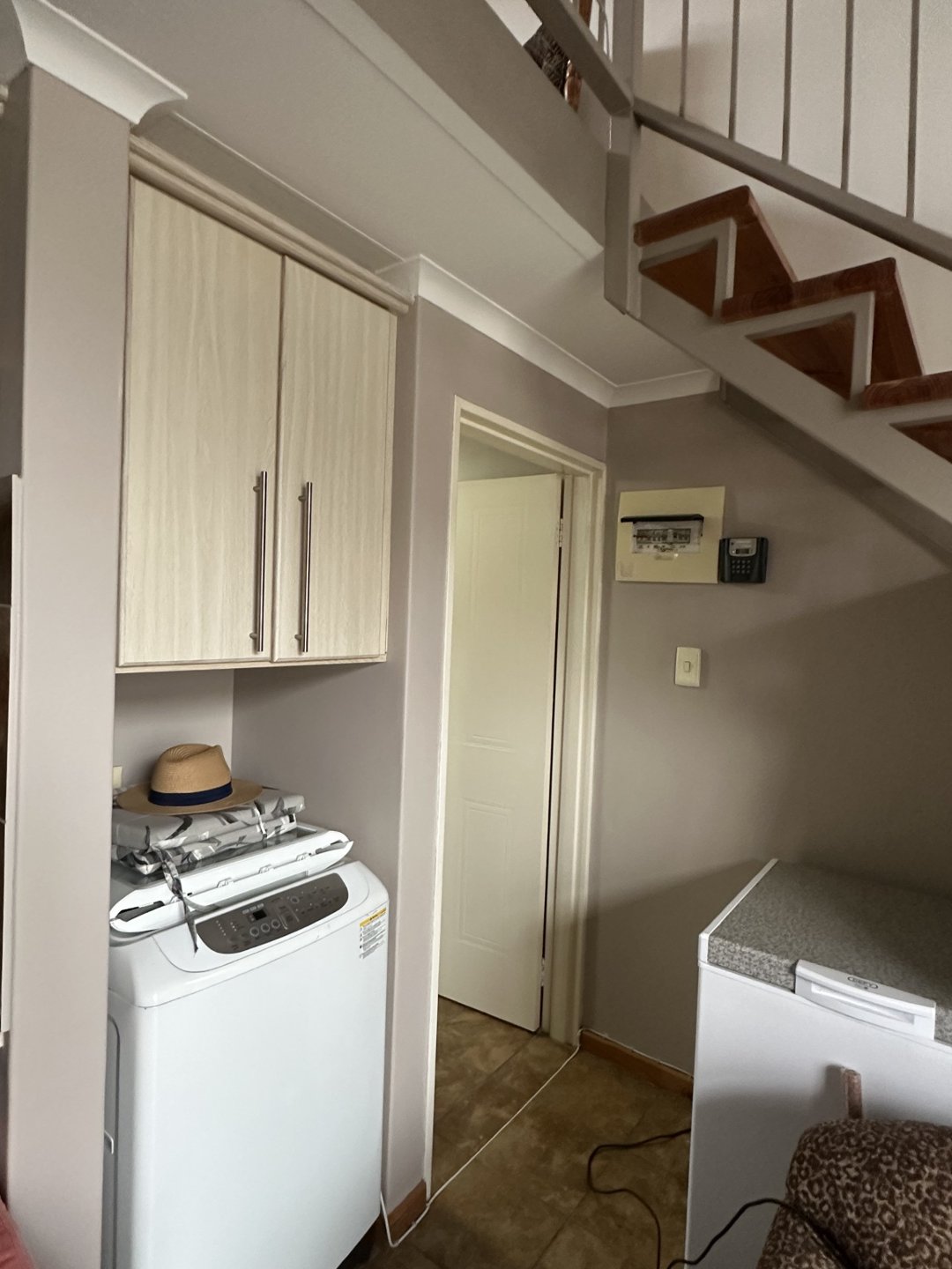 - An open plan kitchen with u/c oven, hob, fan and breakfast nook. Onto the living area, flowing to an enclosed courtyard with a lovely braai area to relax and enjoy.