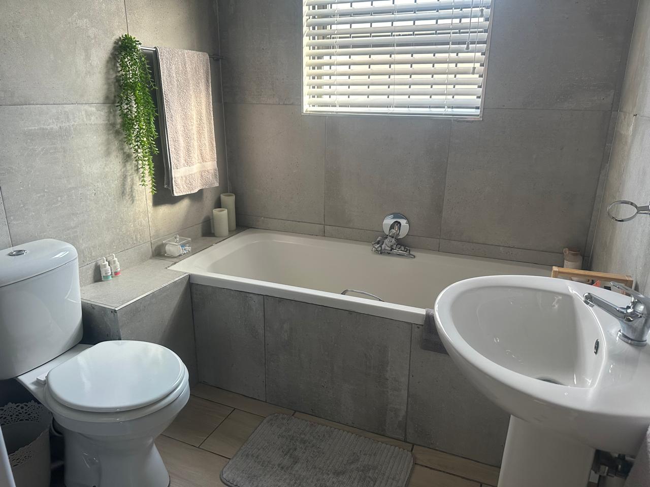 Very secure with alarm system, burglar bars, aluminum window frames and remote access to fully enclosed yard.
